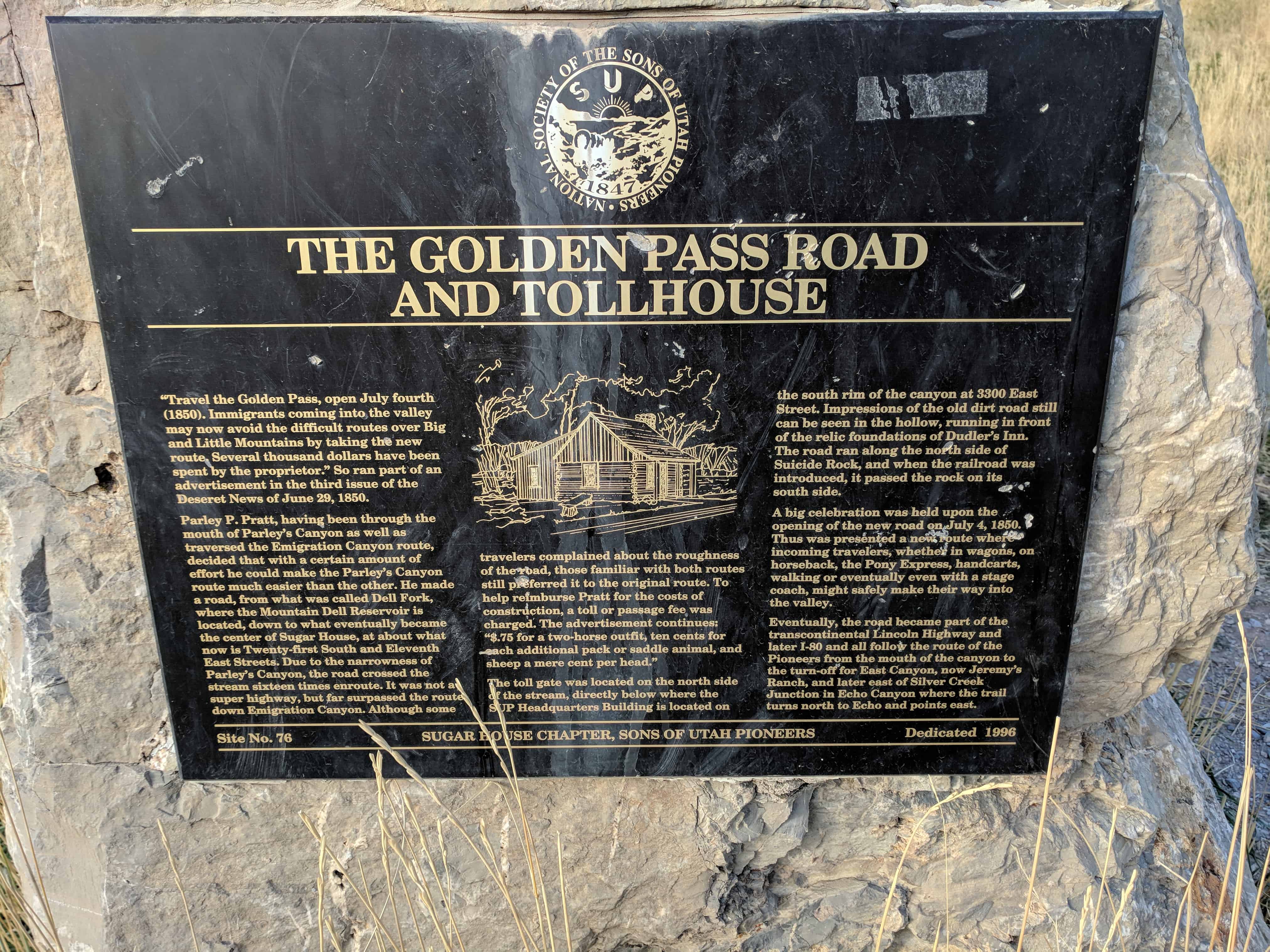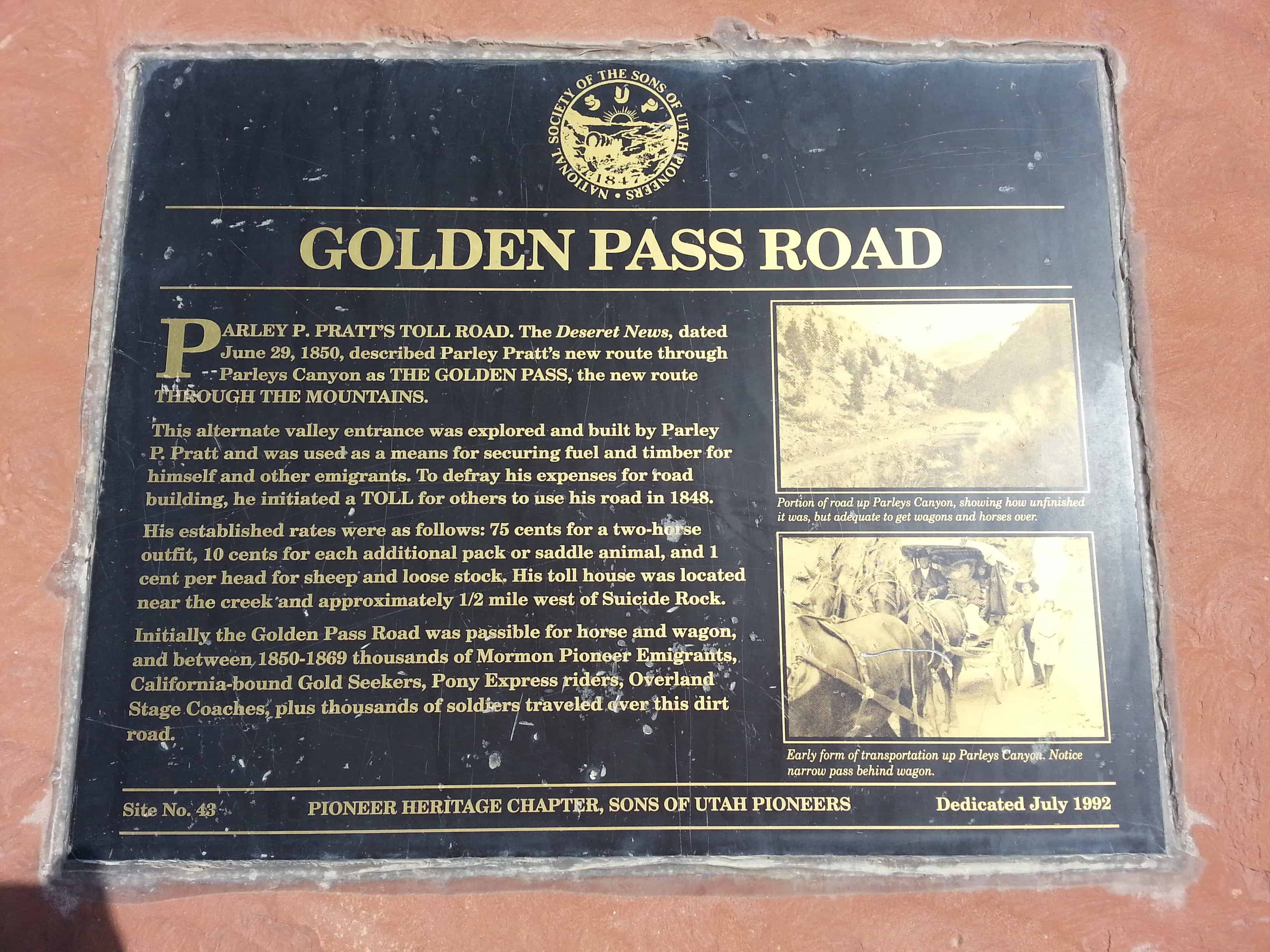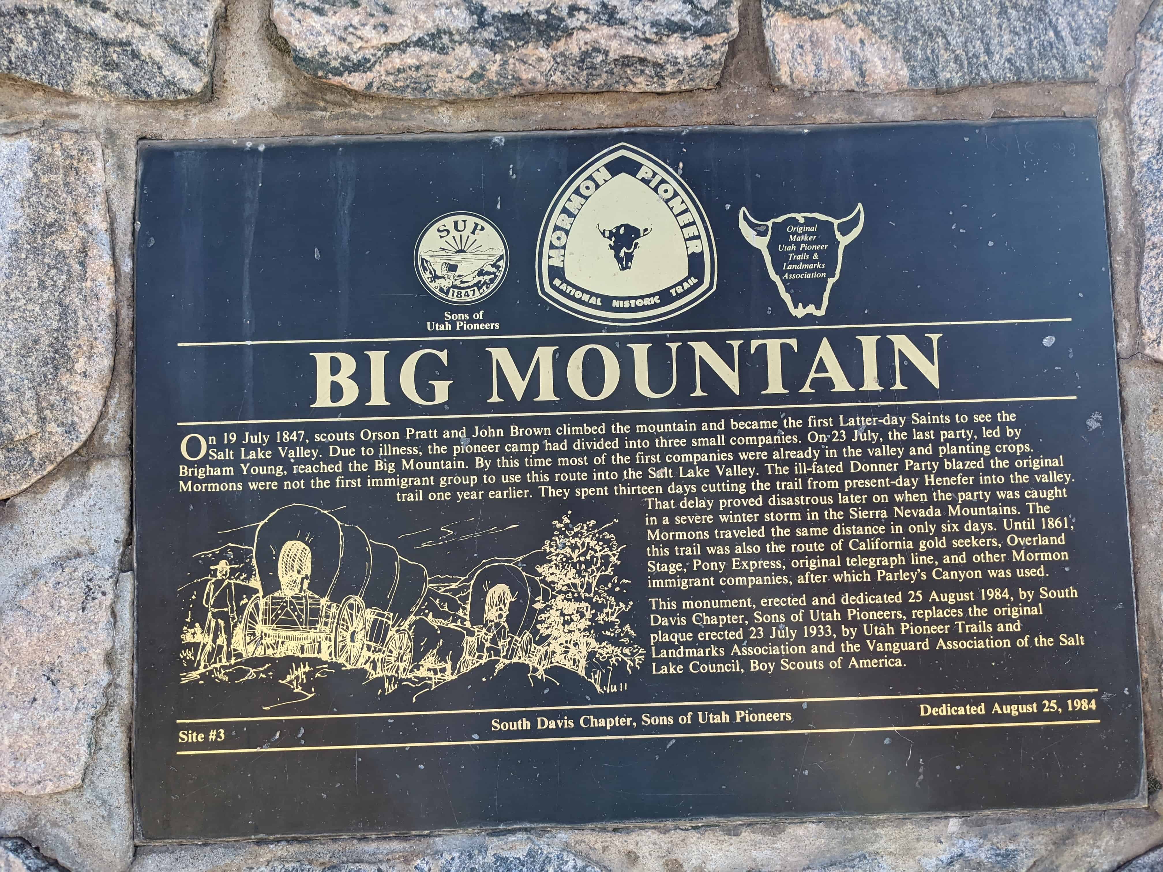 For decades, The Sons of Utah Pioneers have established historical monuments and markers throughout the western United States. These markers commemorate trails, events, buildings and persons of historical significance during the pioneer settling of the West. Additional markers were established by the Utah Pioneer Trails and Landmarks Association (no longer in existence), and these are now overseen by the Sons of Utah Pioneers.