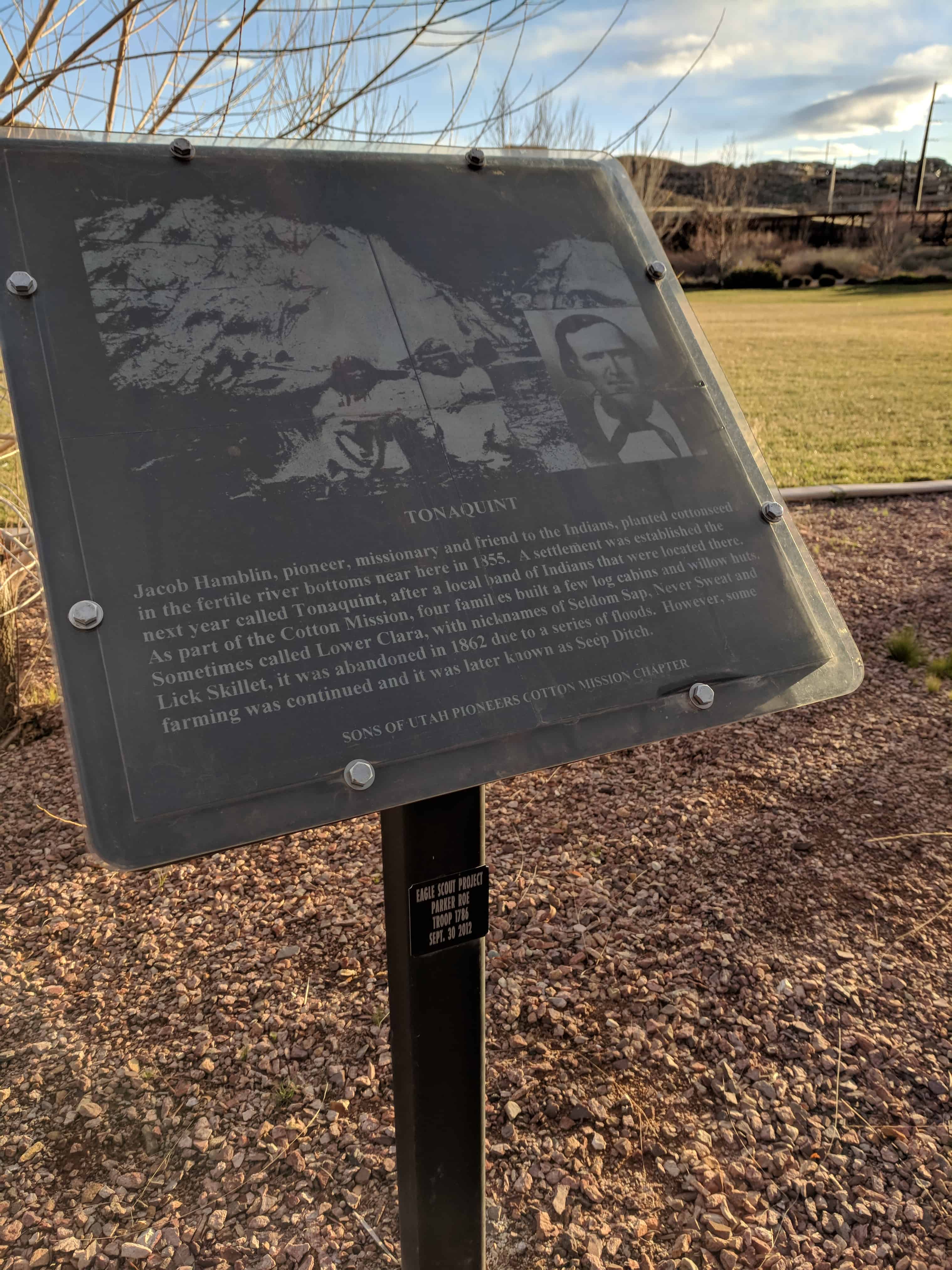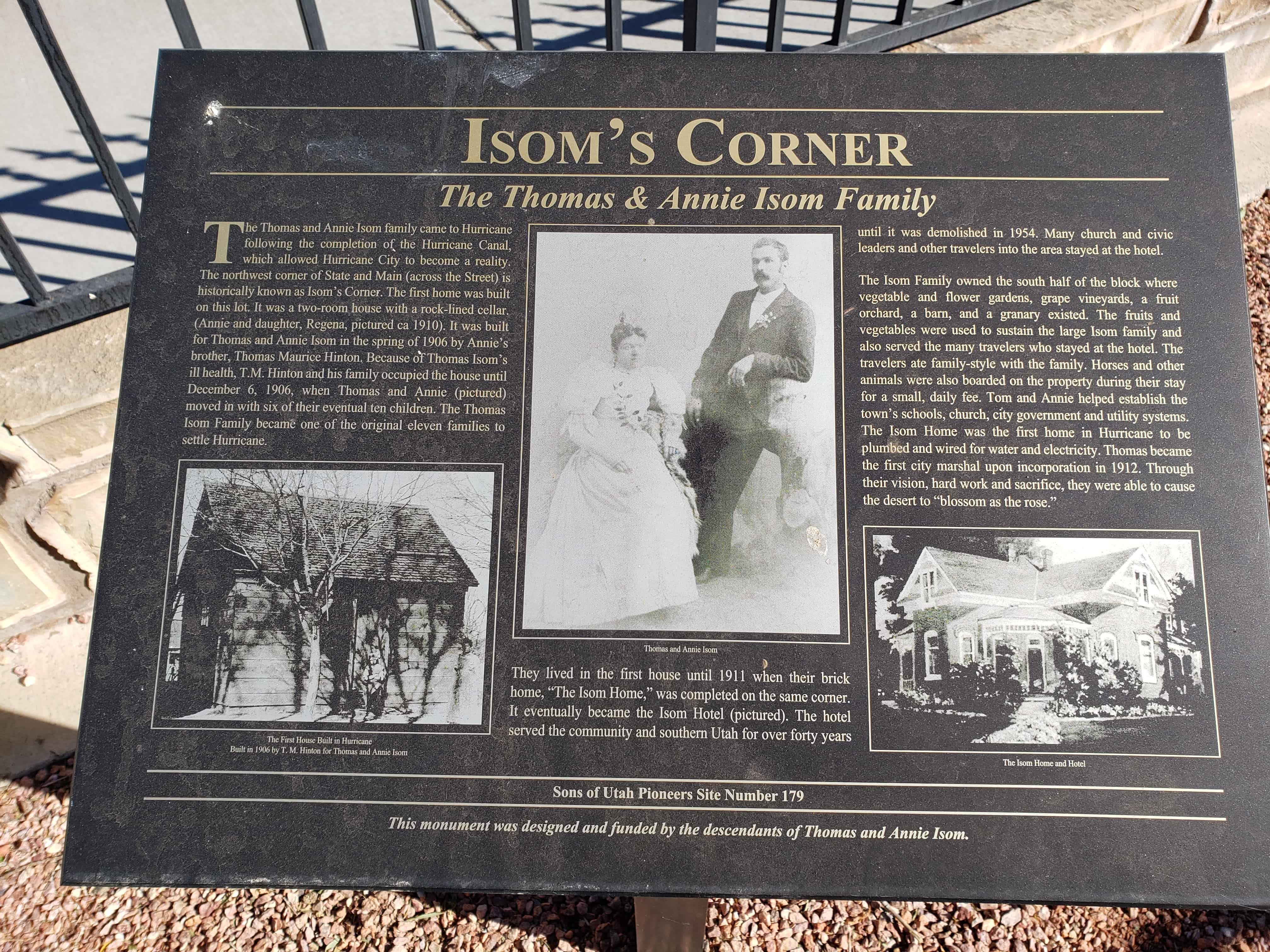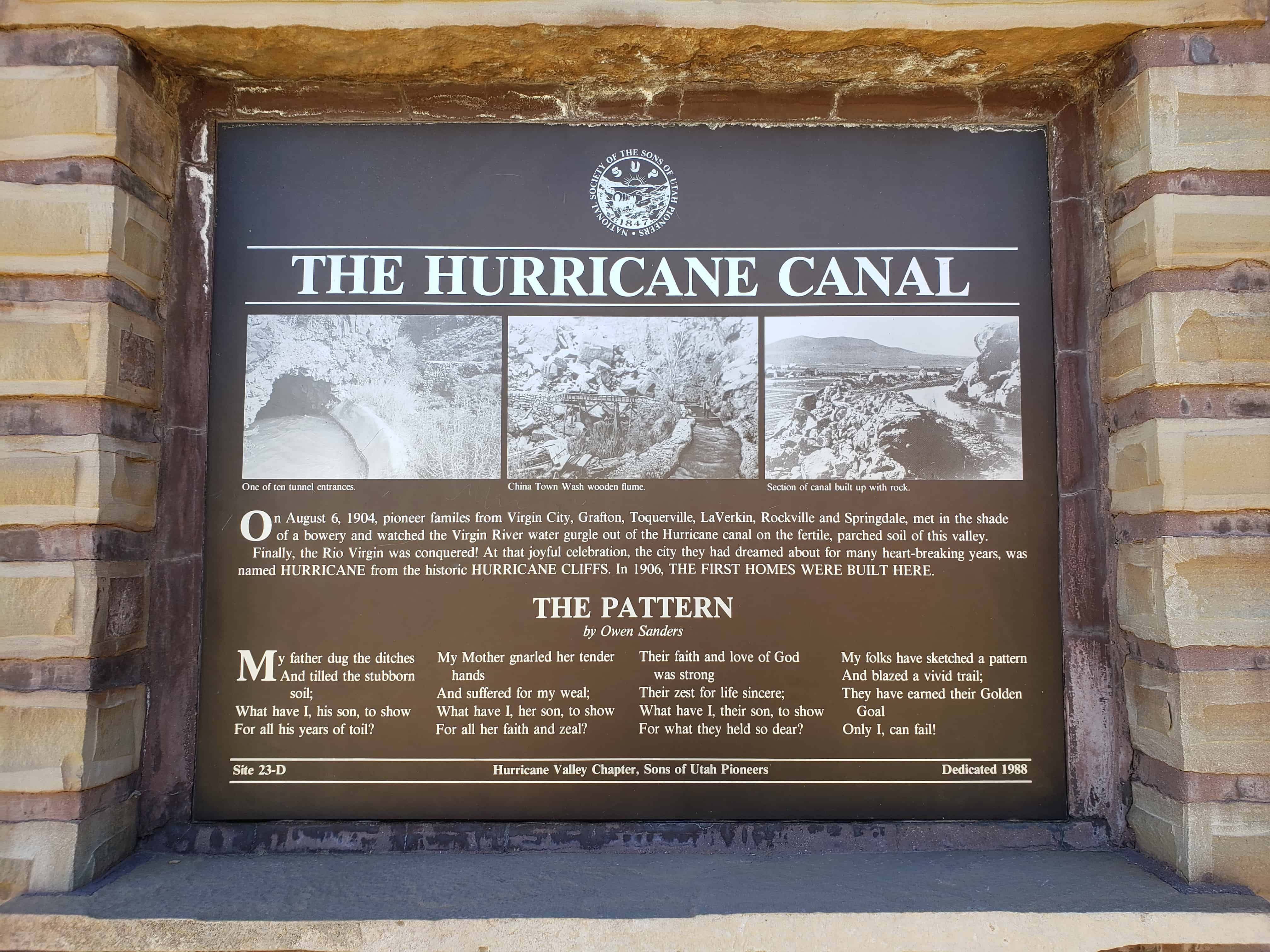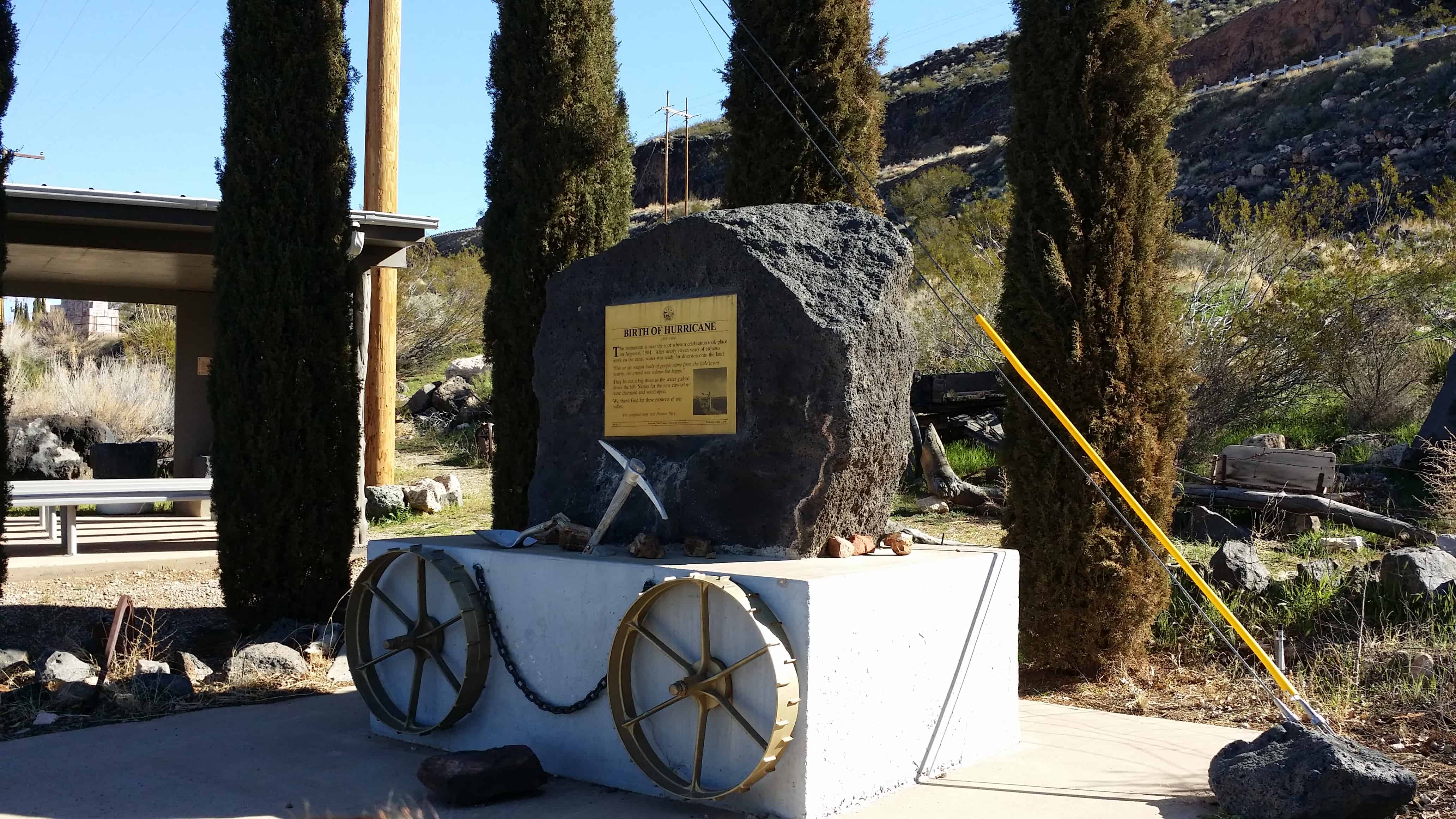 | 23-A | Noble Pioneers of Hurricane | Hurricane, Washington, Utah | Distant Close up | N 37.17624 W 113.28852 |