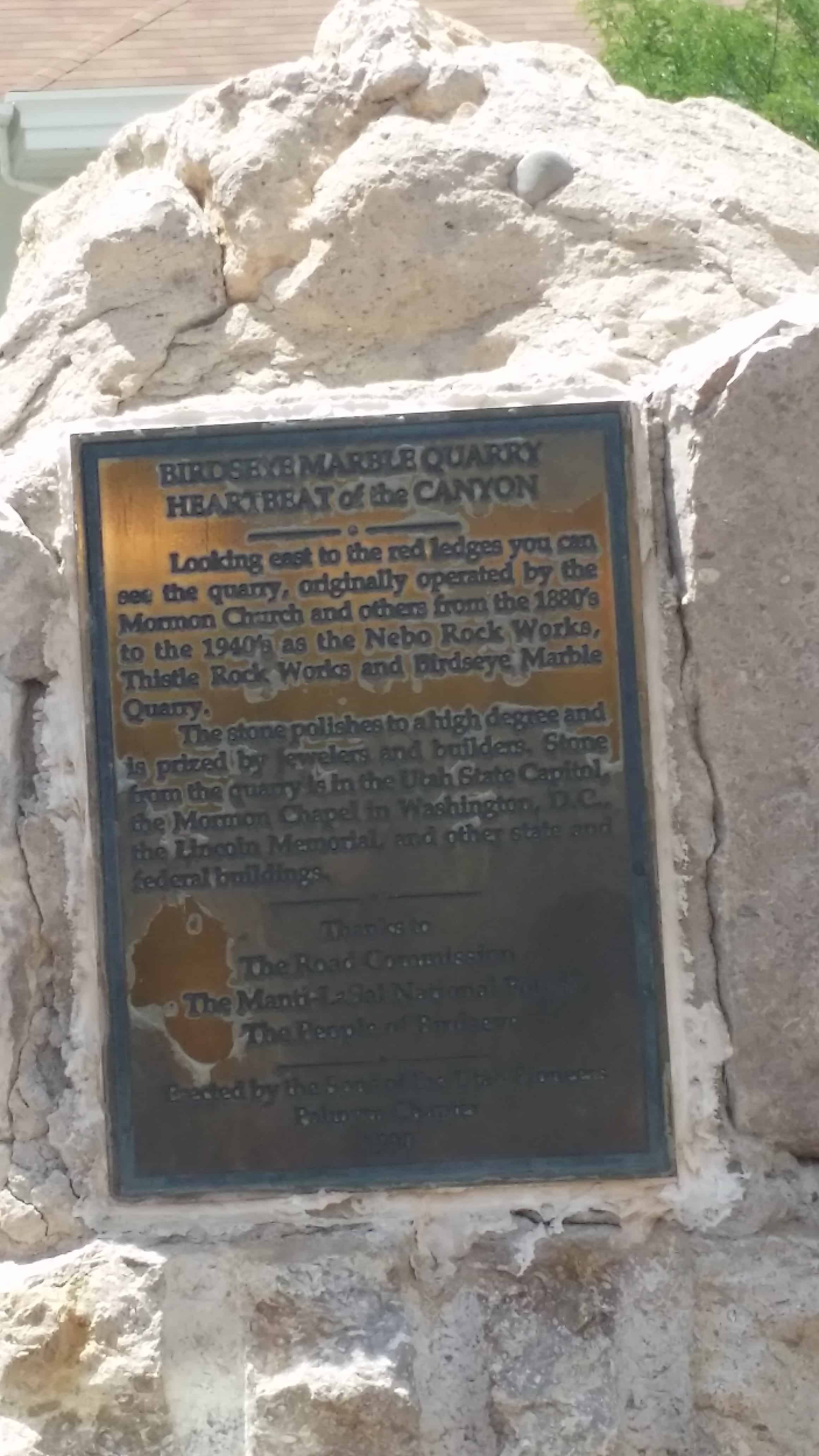| P-1 | Birdseye Marble Quarry | Birdseye, Utah, Utah | Distant Close up | N 39.92451 W 111.54450 |