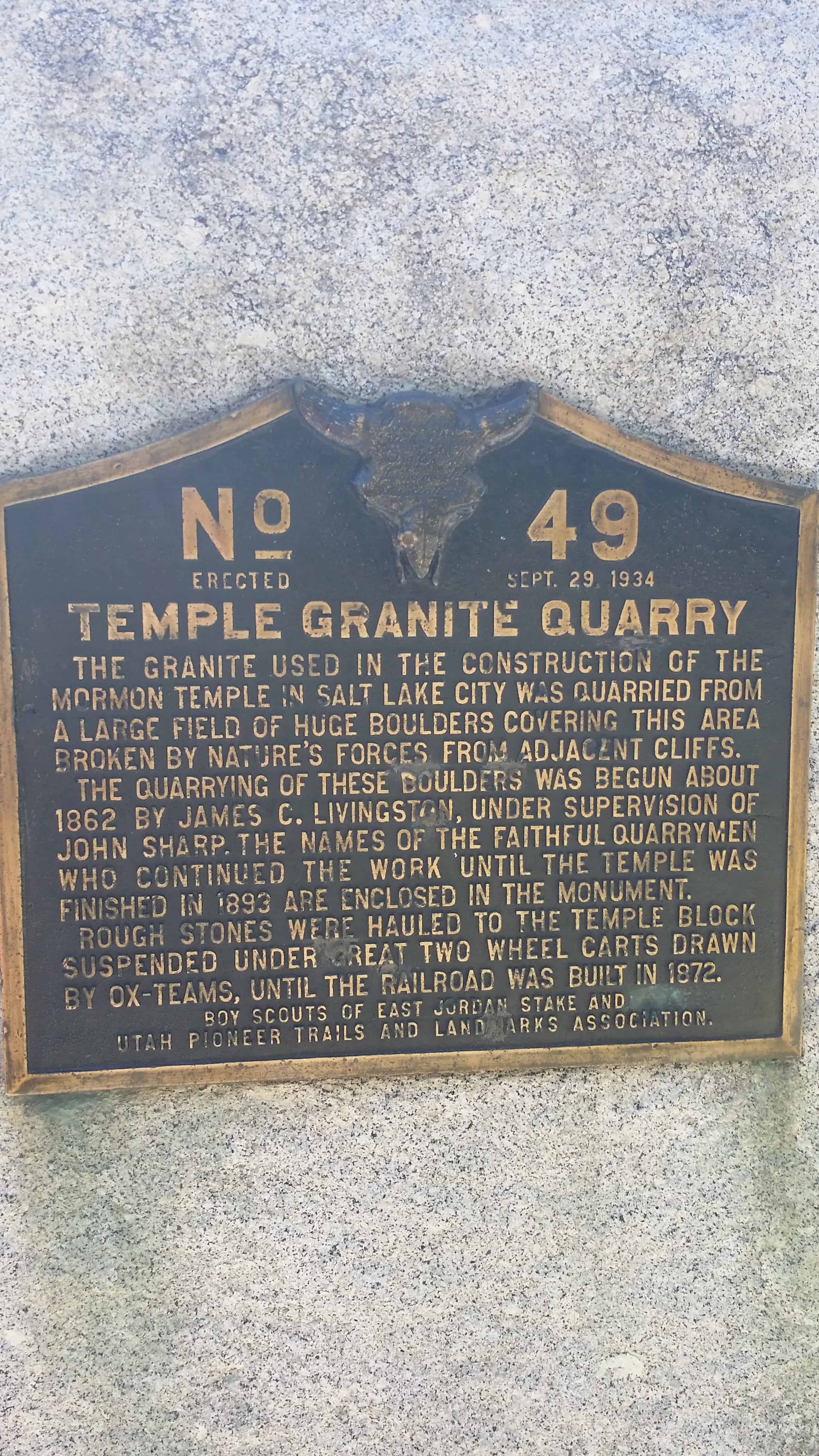 | N & P | 10 ton Granite Block Honoring the Builders of the Salt Lake Temple | Farmington, Davis, Utah | Lagoon | |