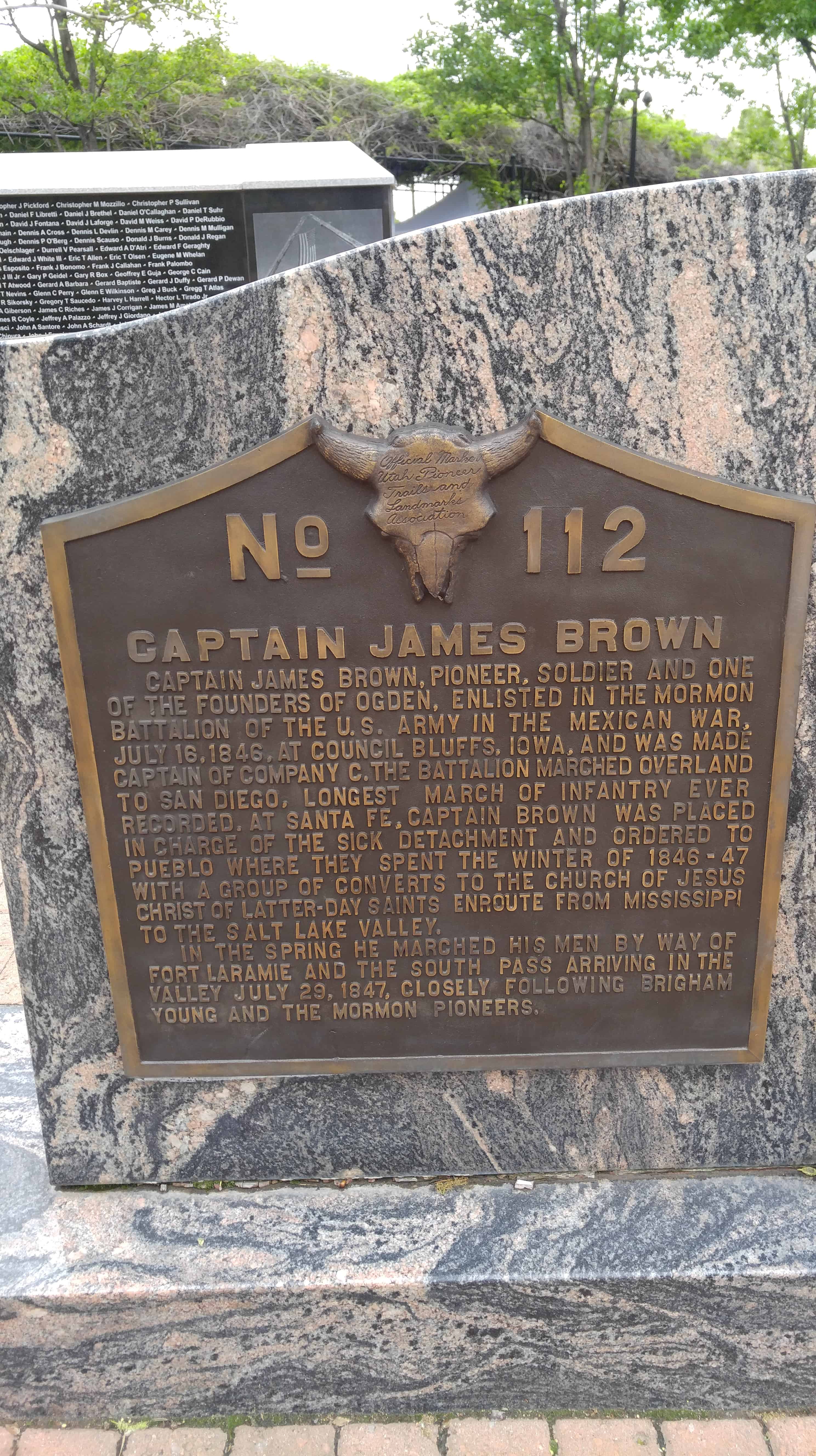 | UPTLA #112 | Captain James Brown | Ogden, Weber, Utah | Distant Close up | N 41.22028 W 111.97125 |