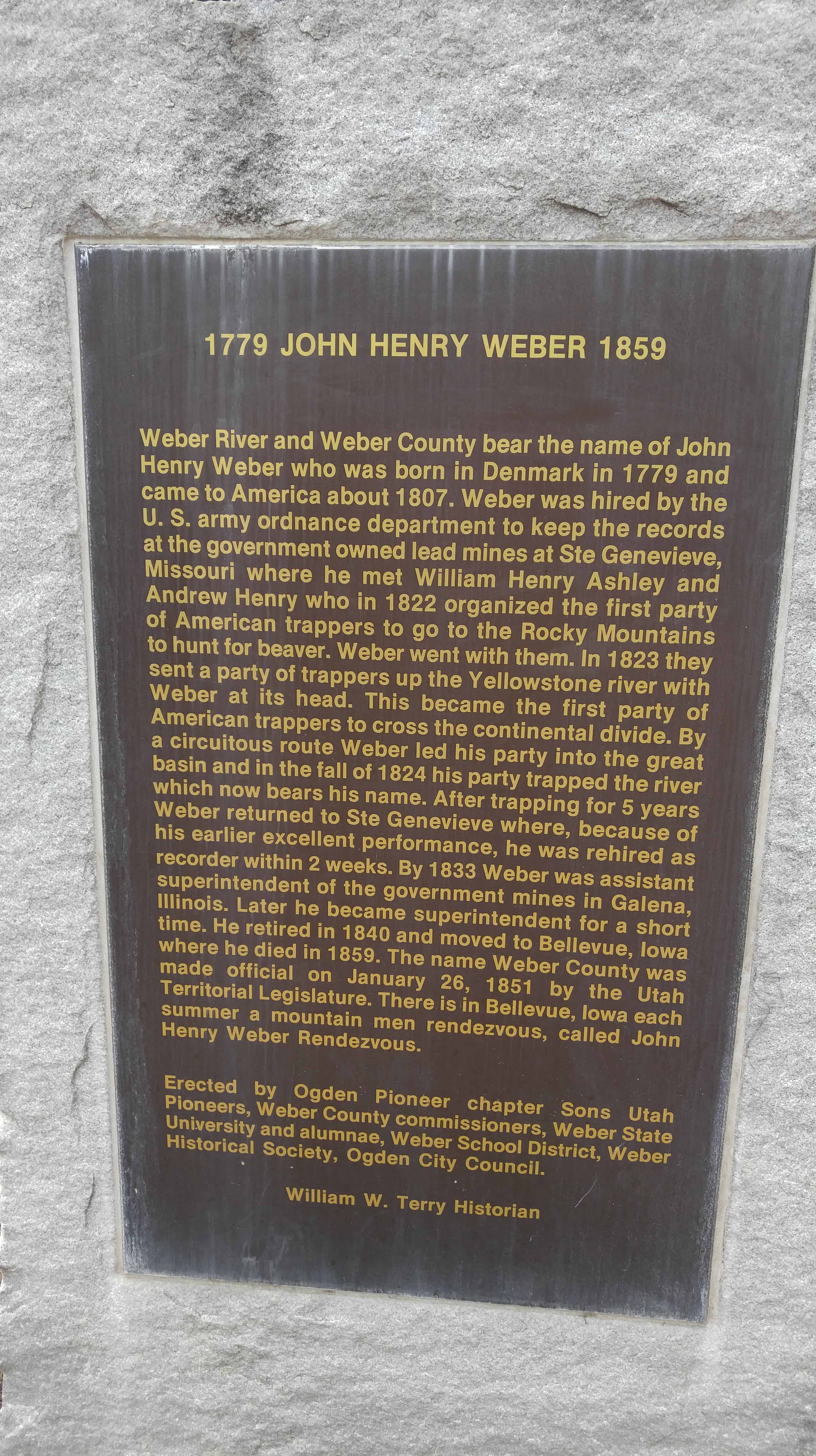 | 42 | John Henry Weber | Ogden, Weber, Utah | Distant Close up | N 41.22028 W 111.97125 |