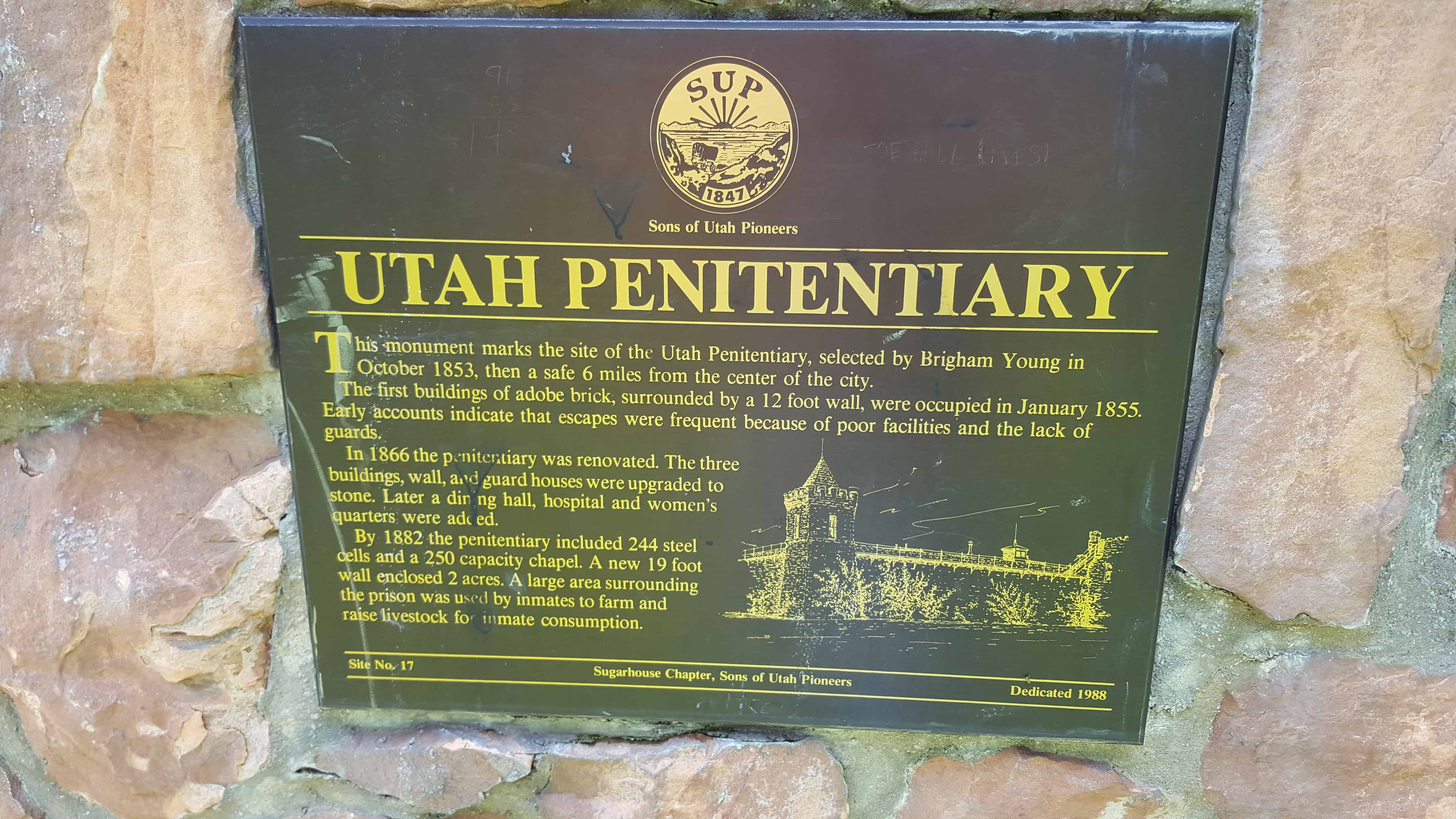 | 17 | Utah Penitentiary | Salt Lake City, Salt Lake, Utah | Distant Close up | N 40.72505 W 111.84813 |