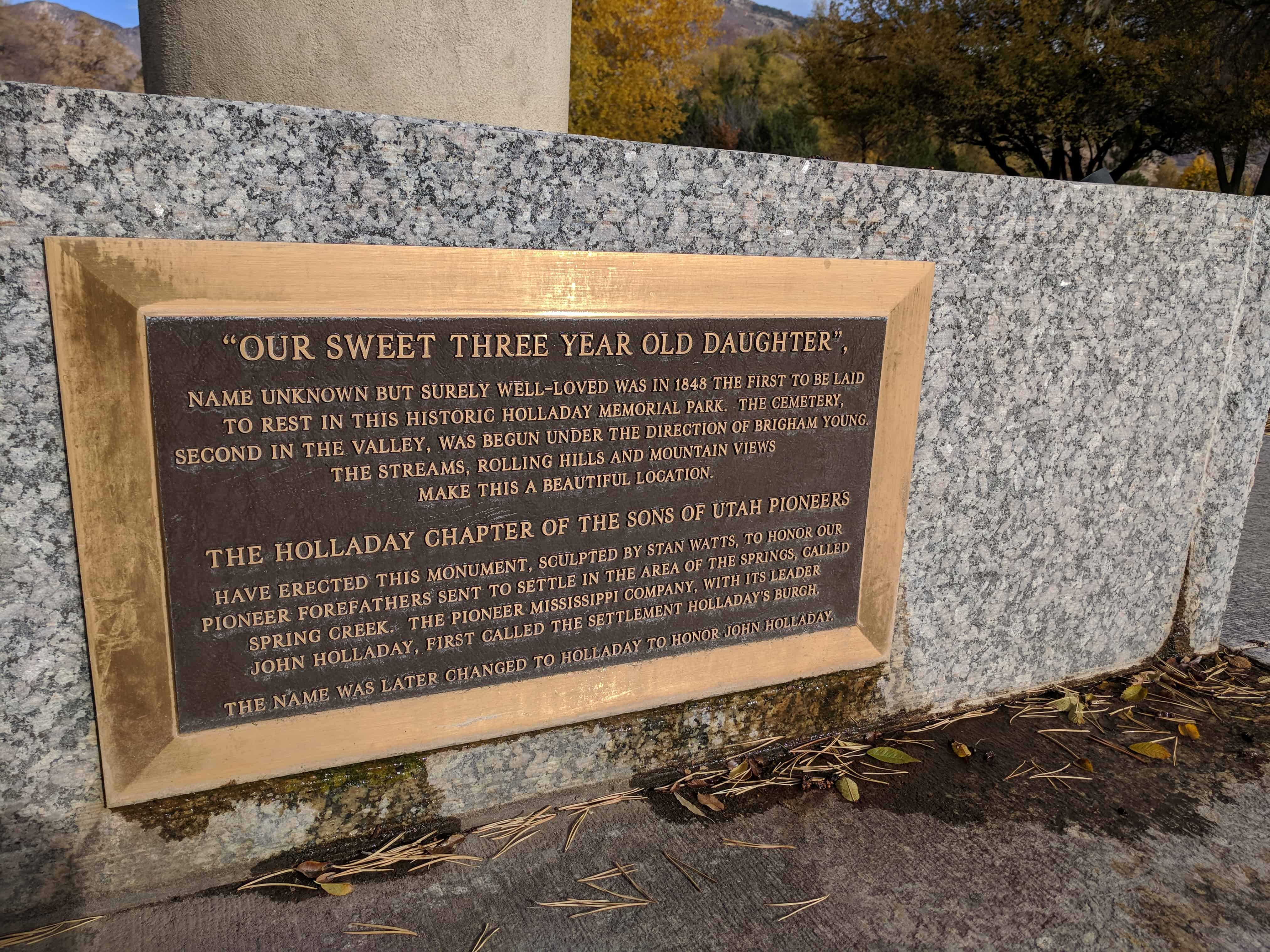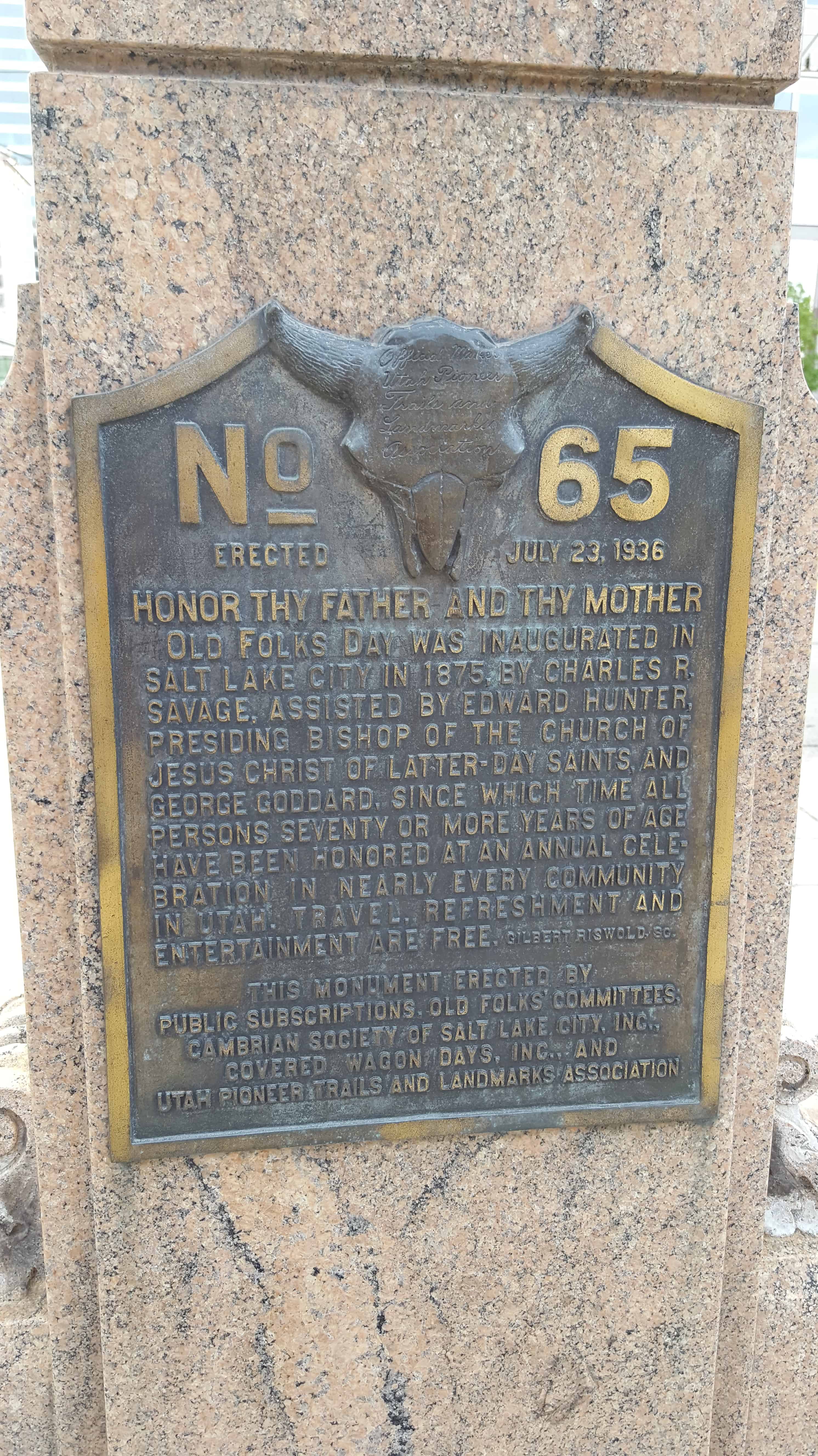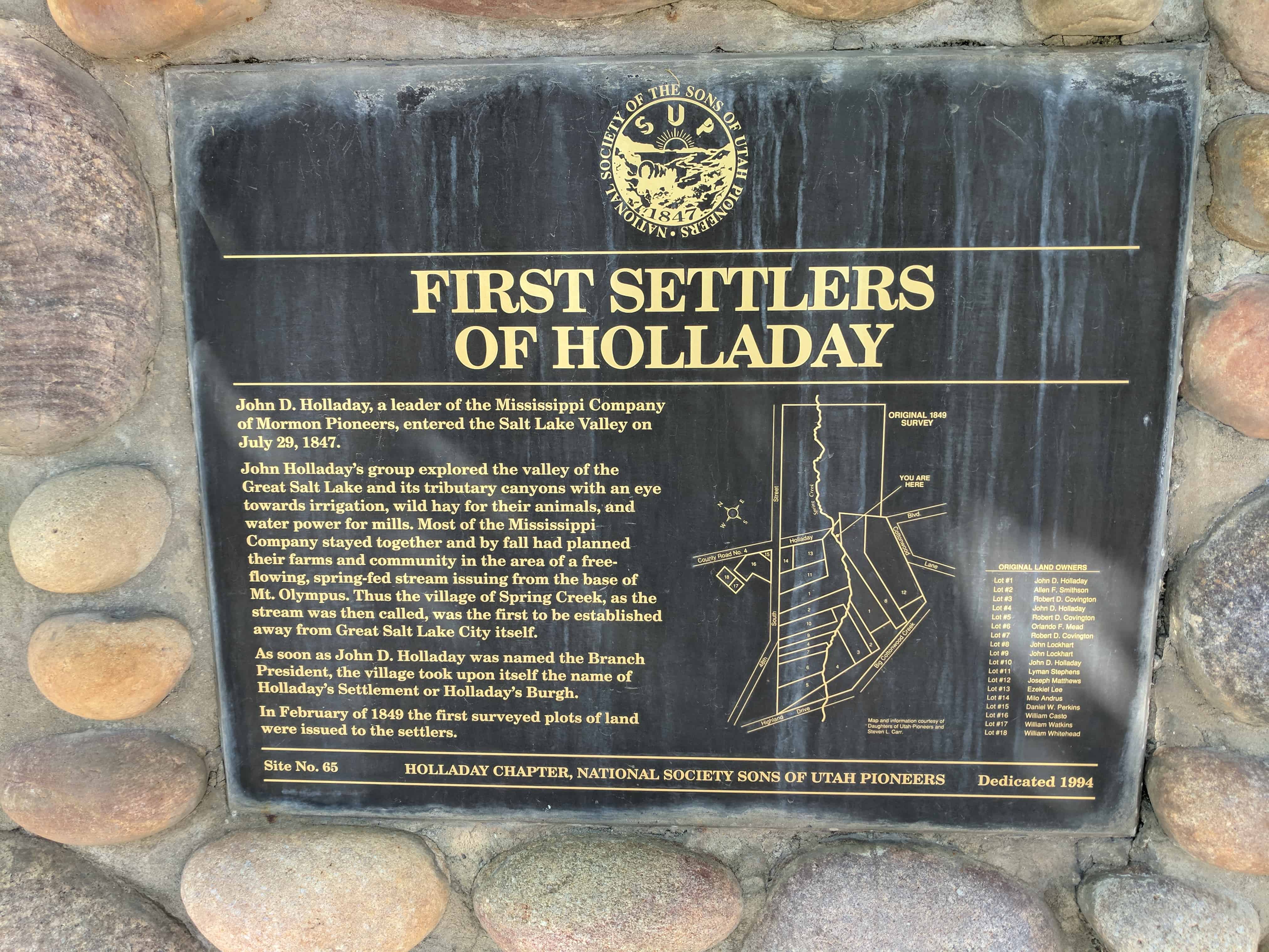 | 65 | First Settlers of Holladay | Holladay, Salt Lake, Utah | Distant Close up | N 40.66563 W 111.82157 |