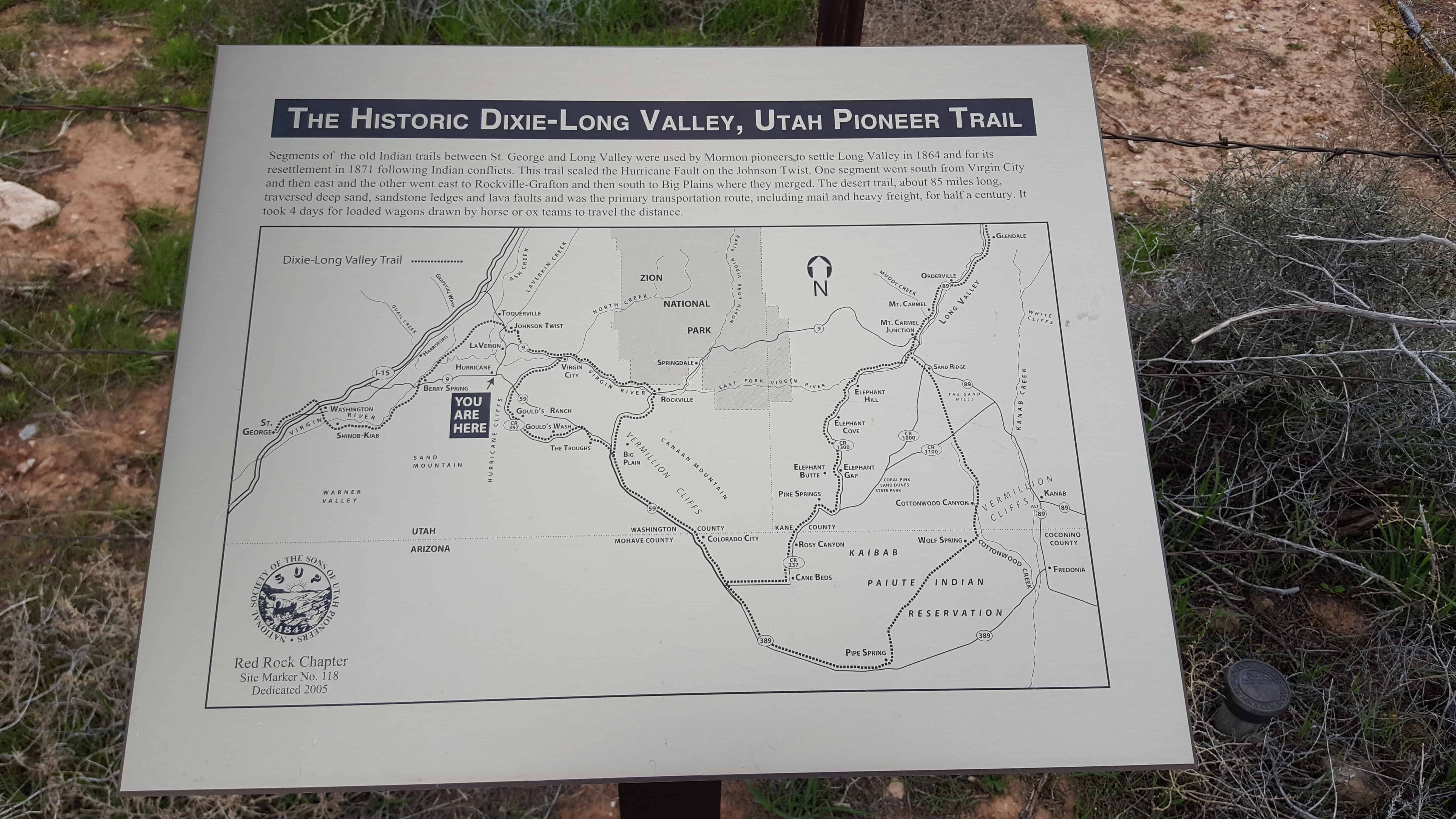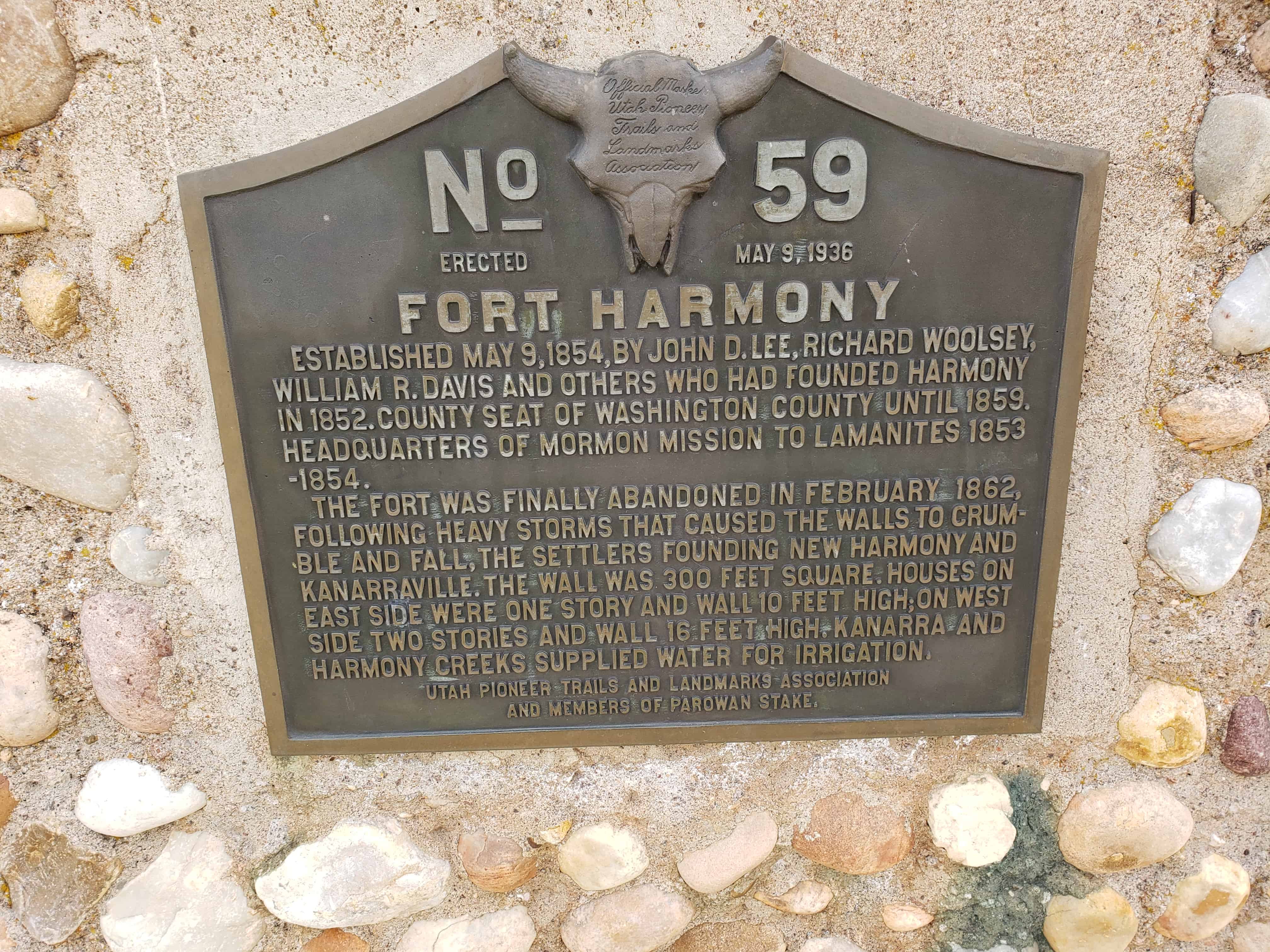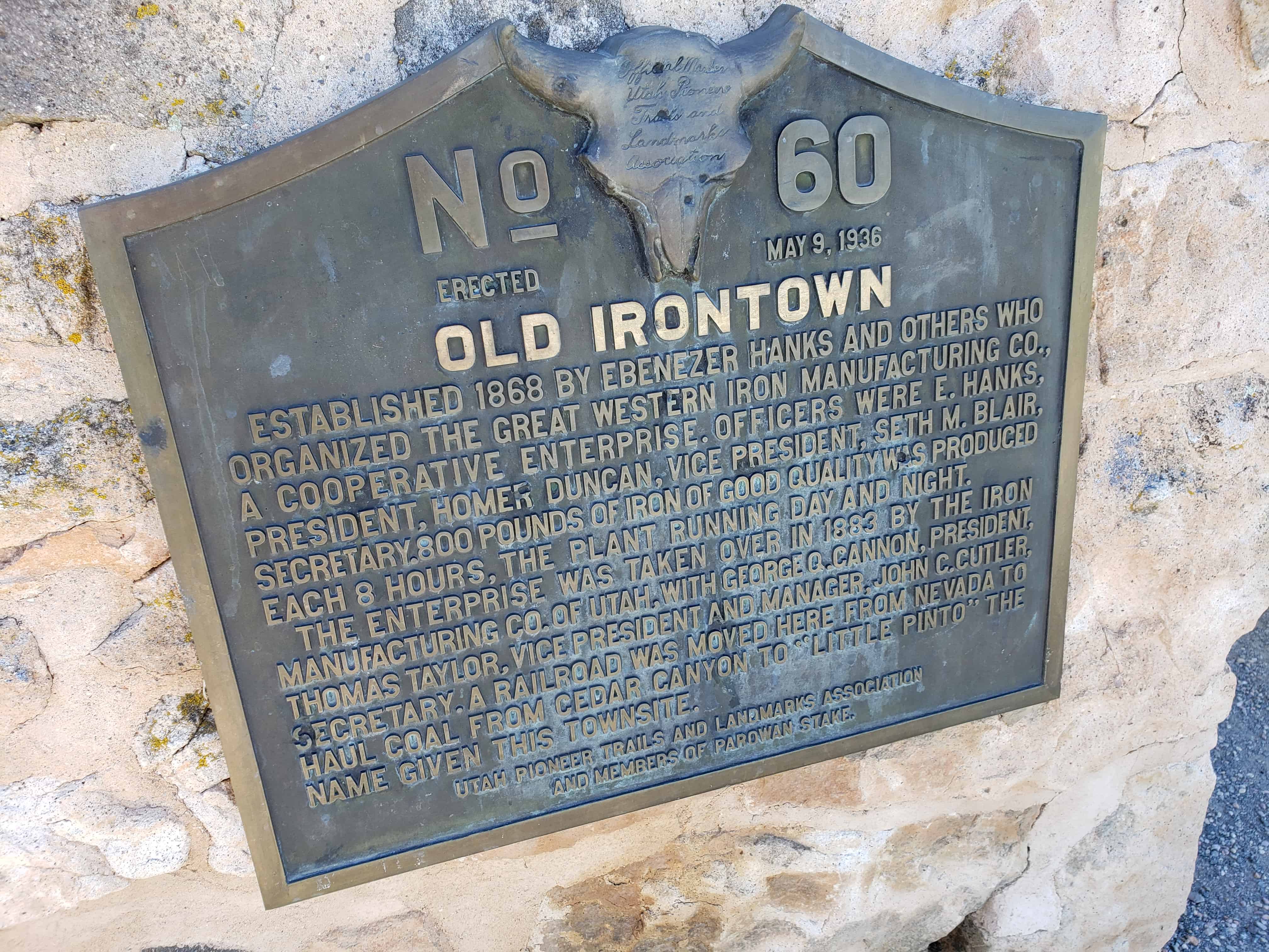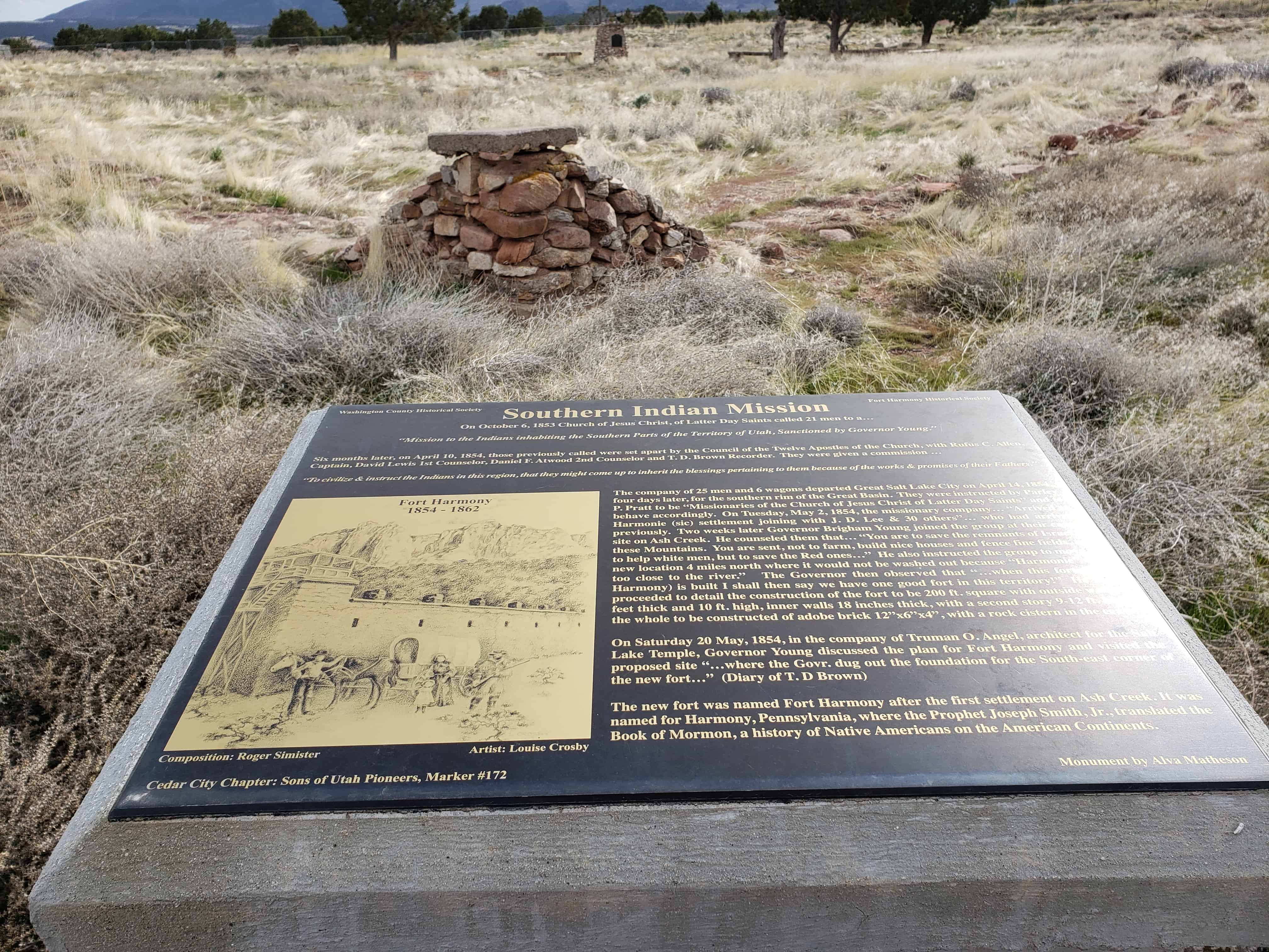 | 60 | Cedar Fort Marker, (formerly listed as Iron Mines) | Cedar City, Iron, Utah | Distant Close up | N 37.68830 W 113.07972 |