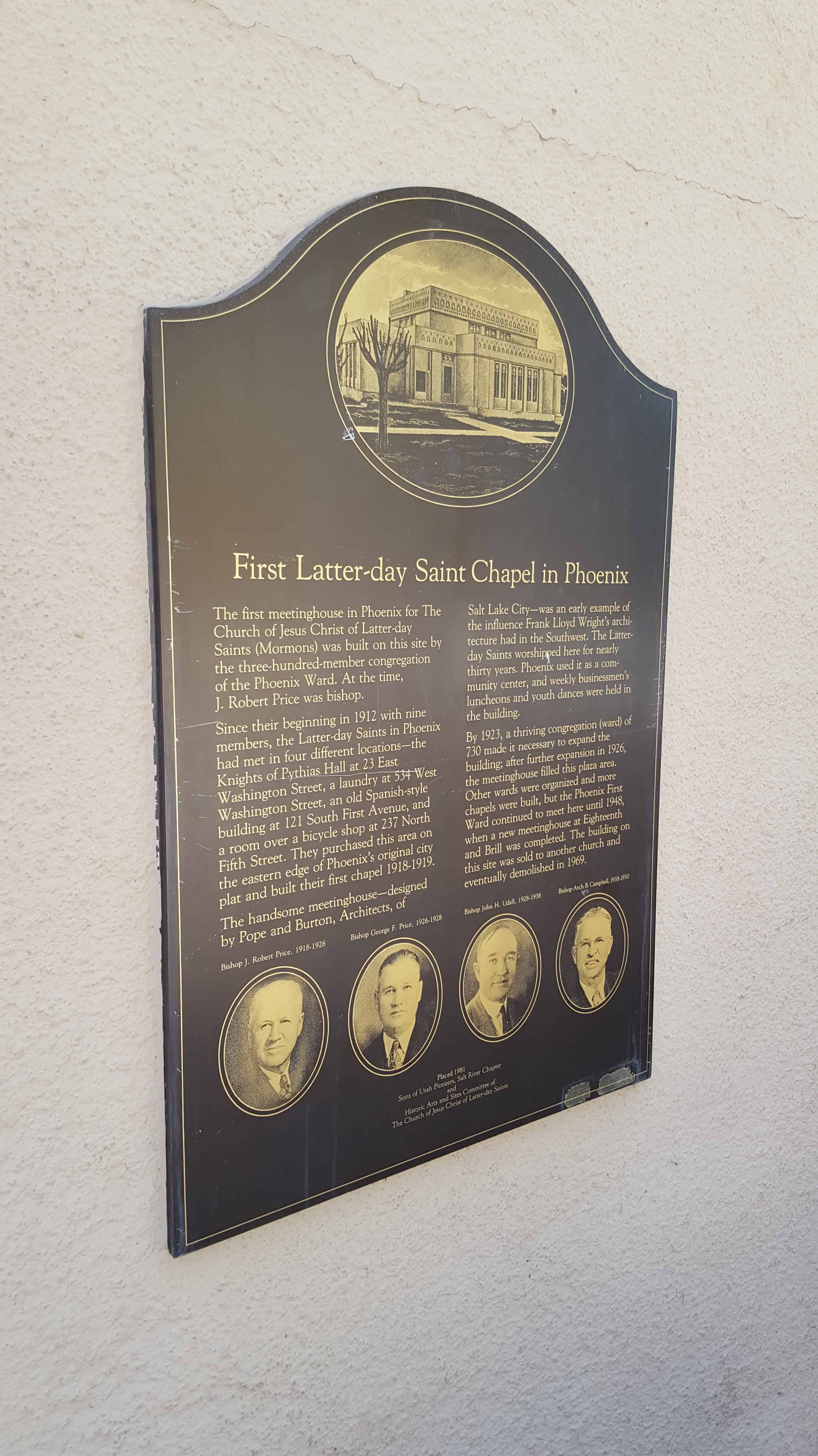 | D-1 | First Latter-day Saint Chapel in Phoenix | Phoenix, Maricopa, Arizona | Distant Close up | N 33.45013 W 112.06554 |