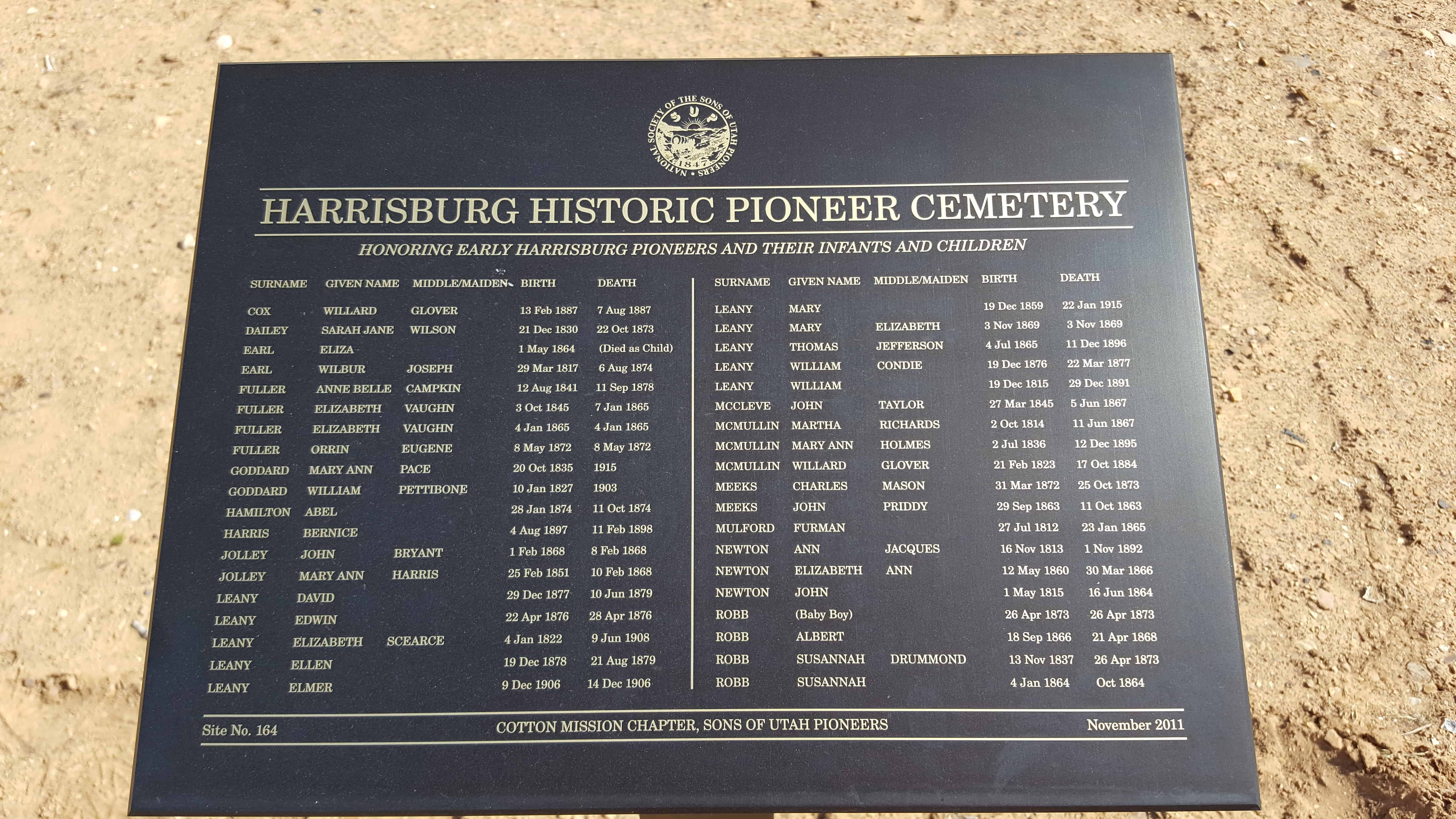 | Q-1 | Pioneer Cemetery | Taylorsville, Salt Lake, Utah | 4575 S. Jordan River Parkway | |