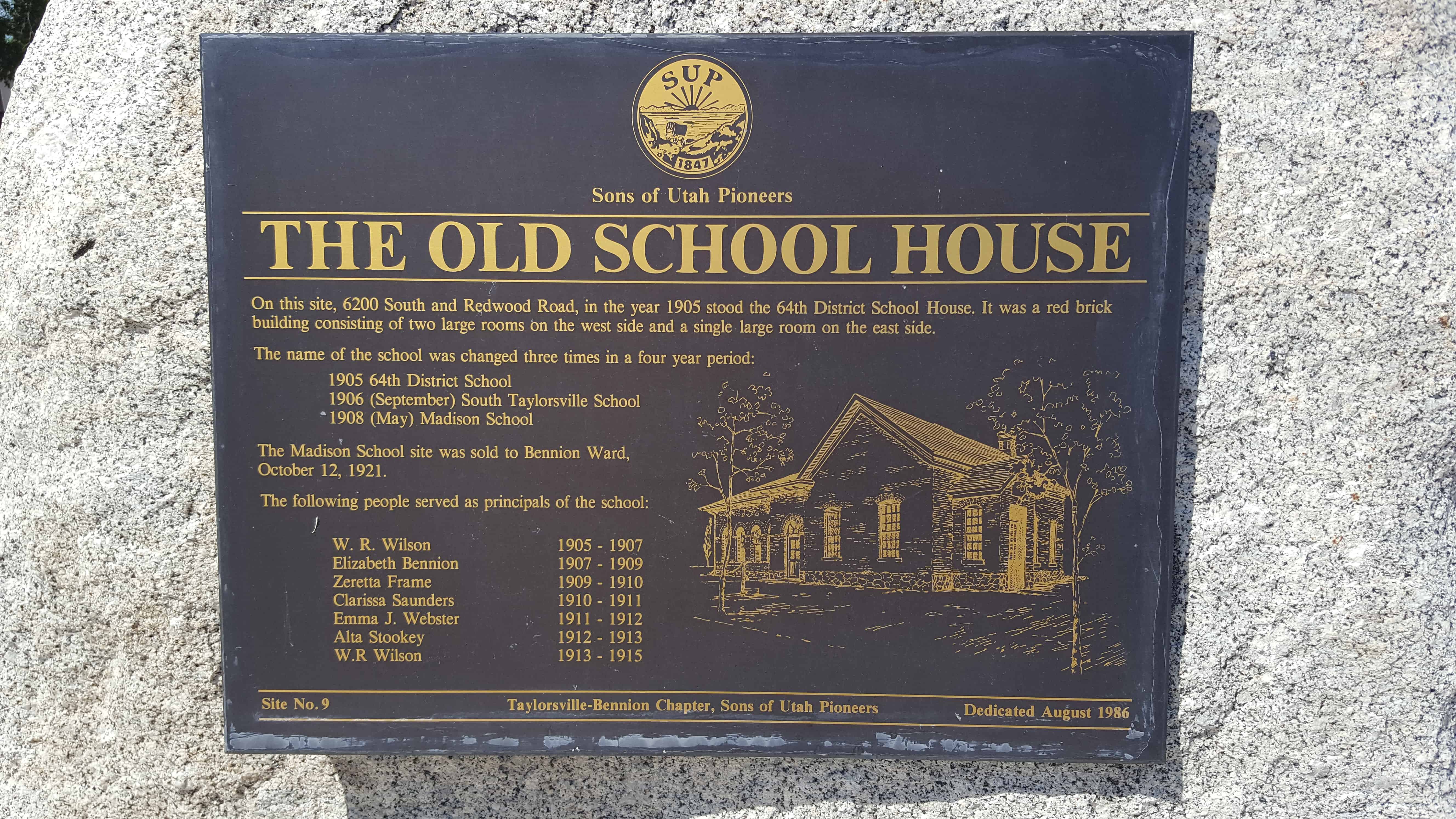 | 50 & 9 | The Old School House | Taylorsville, Salt Lake, Utah | Distant Close up | N 40.63887 W 111.94008 |