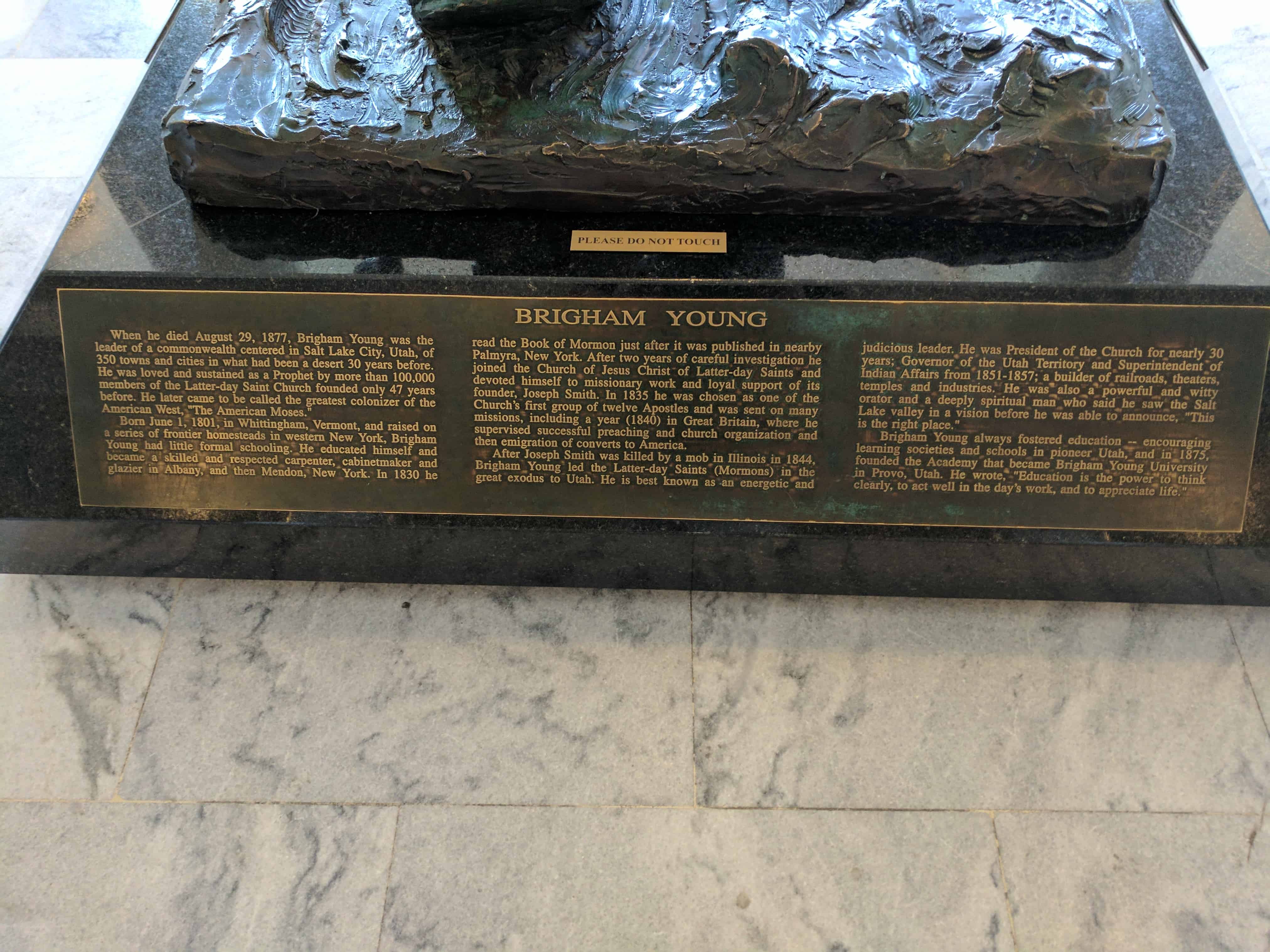 | I | Brigham Young Bust | Salt Lake City, Salt Lake, Utah | Utah State Capitol | |