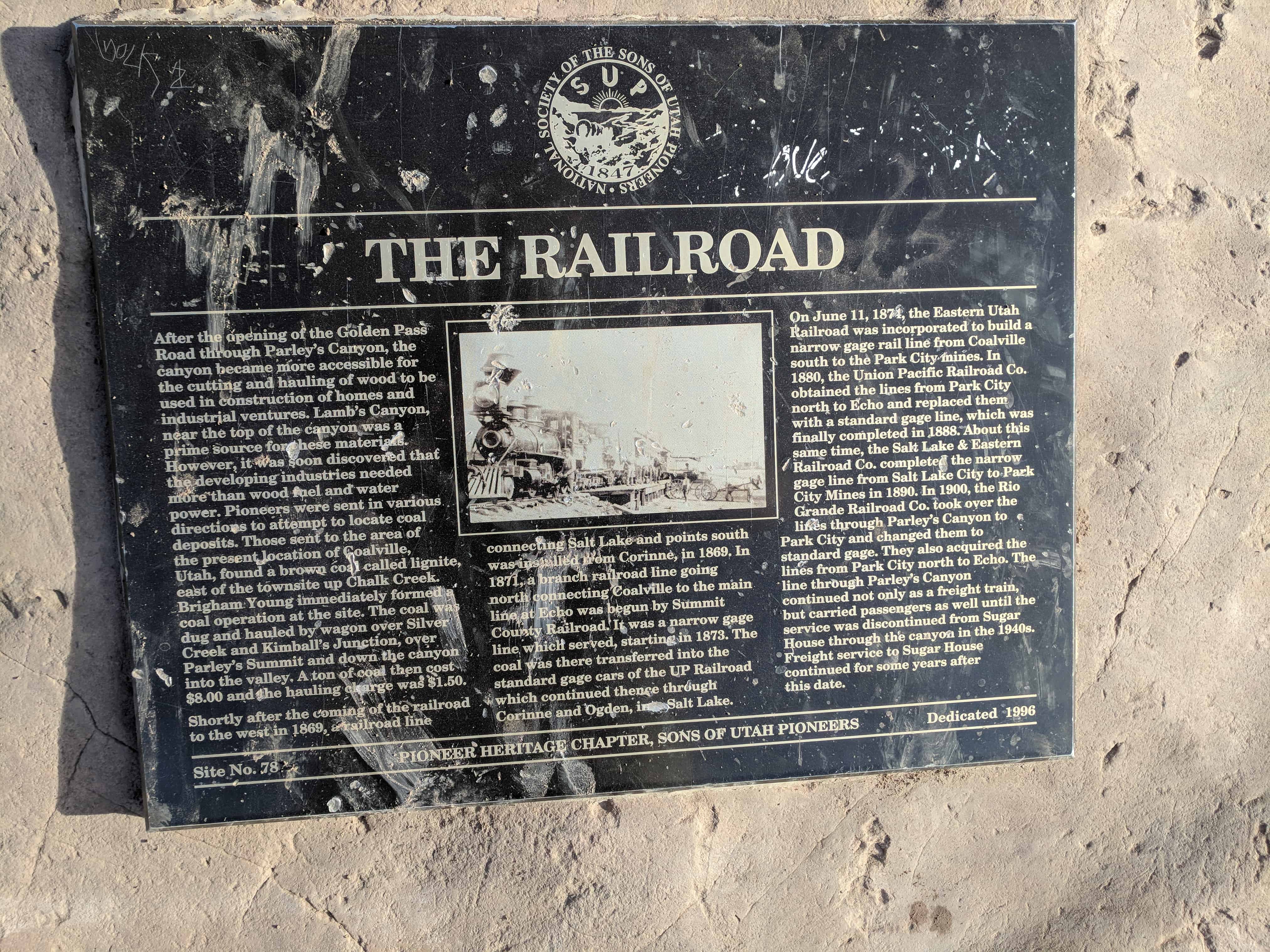 | 35 | Salt Lake and Utah Railroad | Salt Lake City, Salt Lake, Utah | Distant Close up | N 40.60694 W 111.94296 |