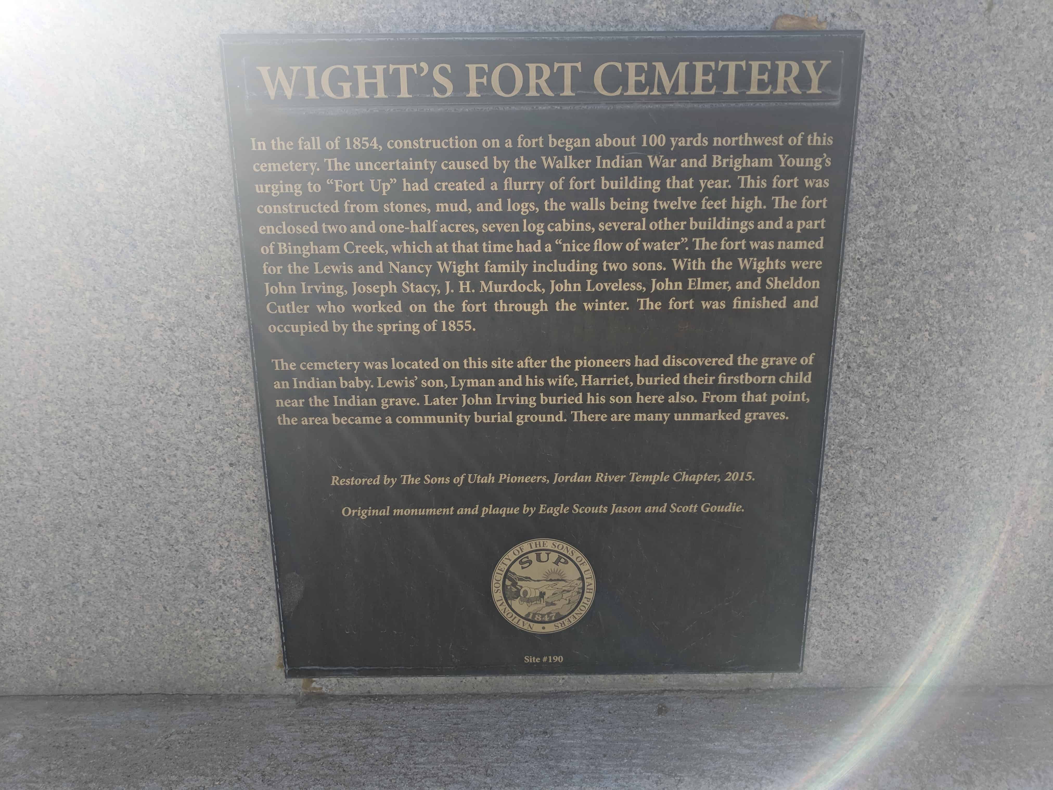 | J-1 | Union Pioneer Cemetery | Sandy, Salt Lake, Utah | Photo | N 40.60959 W 111.84880 |