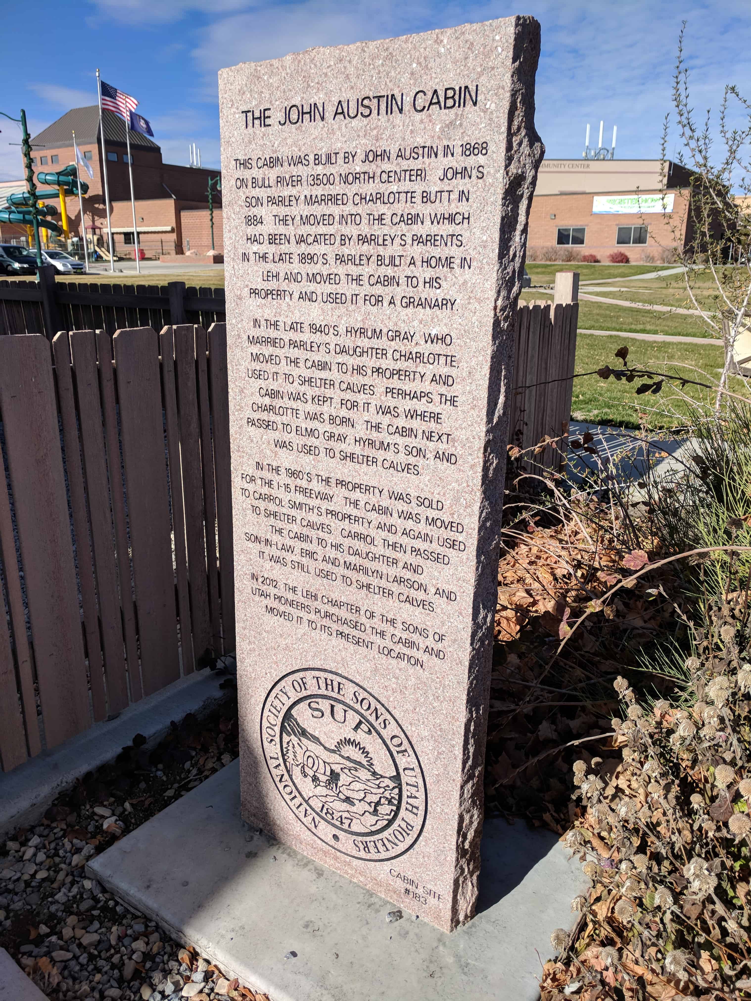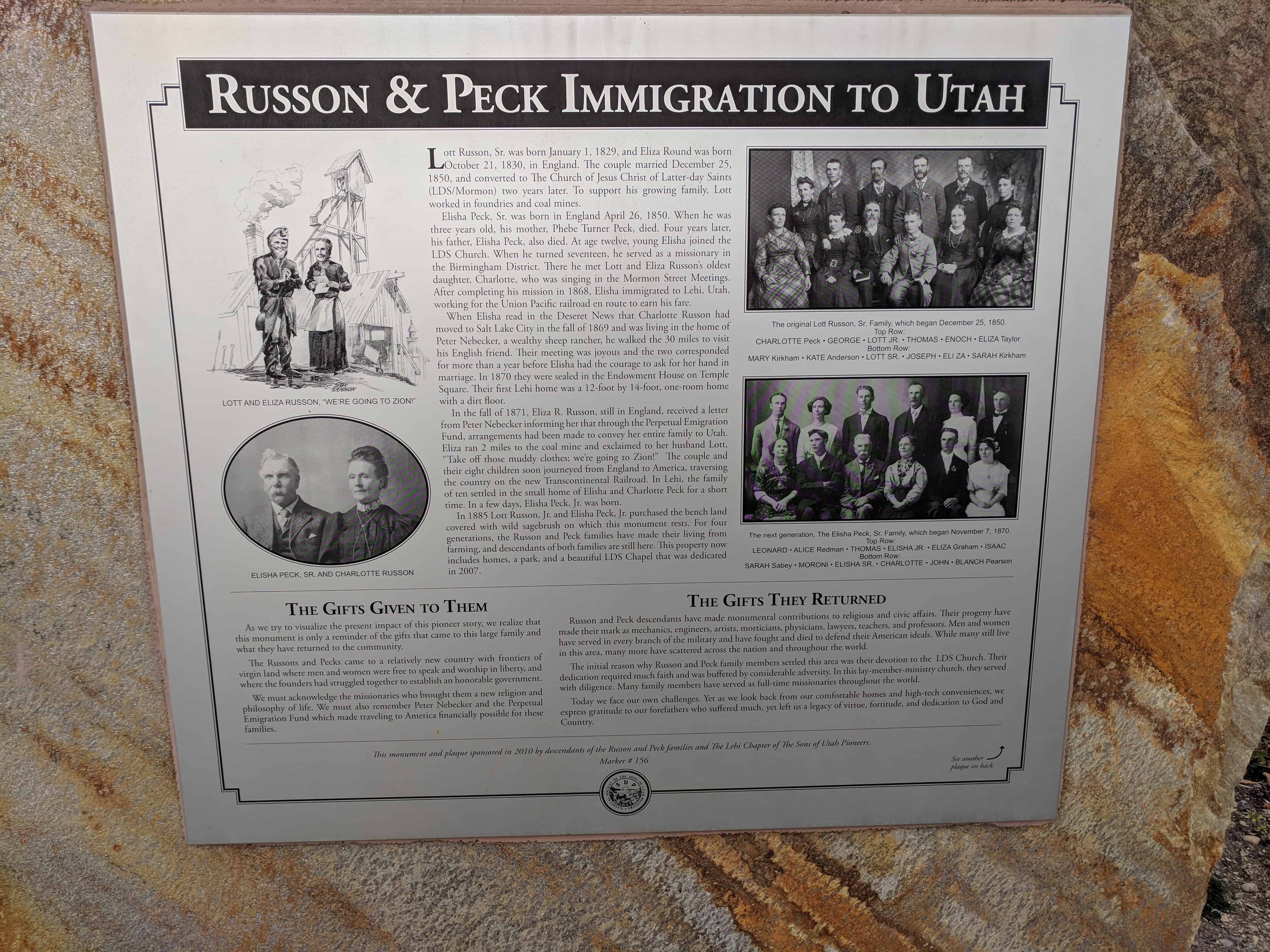 | A & UPTLA 118 | Pioneers of Lehi | Lehi, Utah, Utah | Distant Close up | N 40.37229 W 111.88449 |