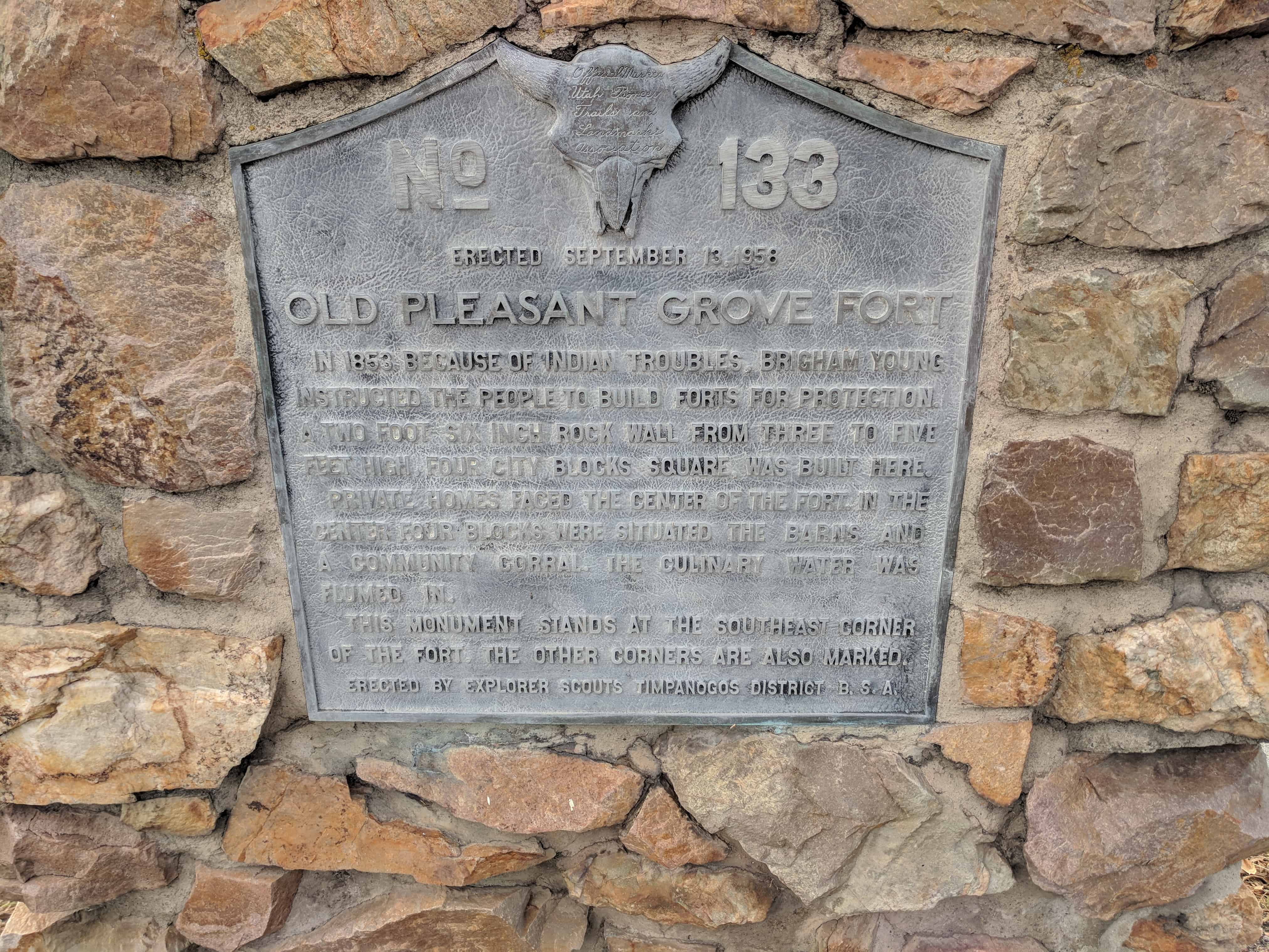 | UPTLA #133 | Old Pleasant Grove Fort | Pleasant Grove, Utah, Utah | Distant Close up | N 40.36017 W 111.73589 |