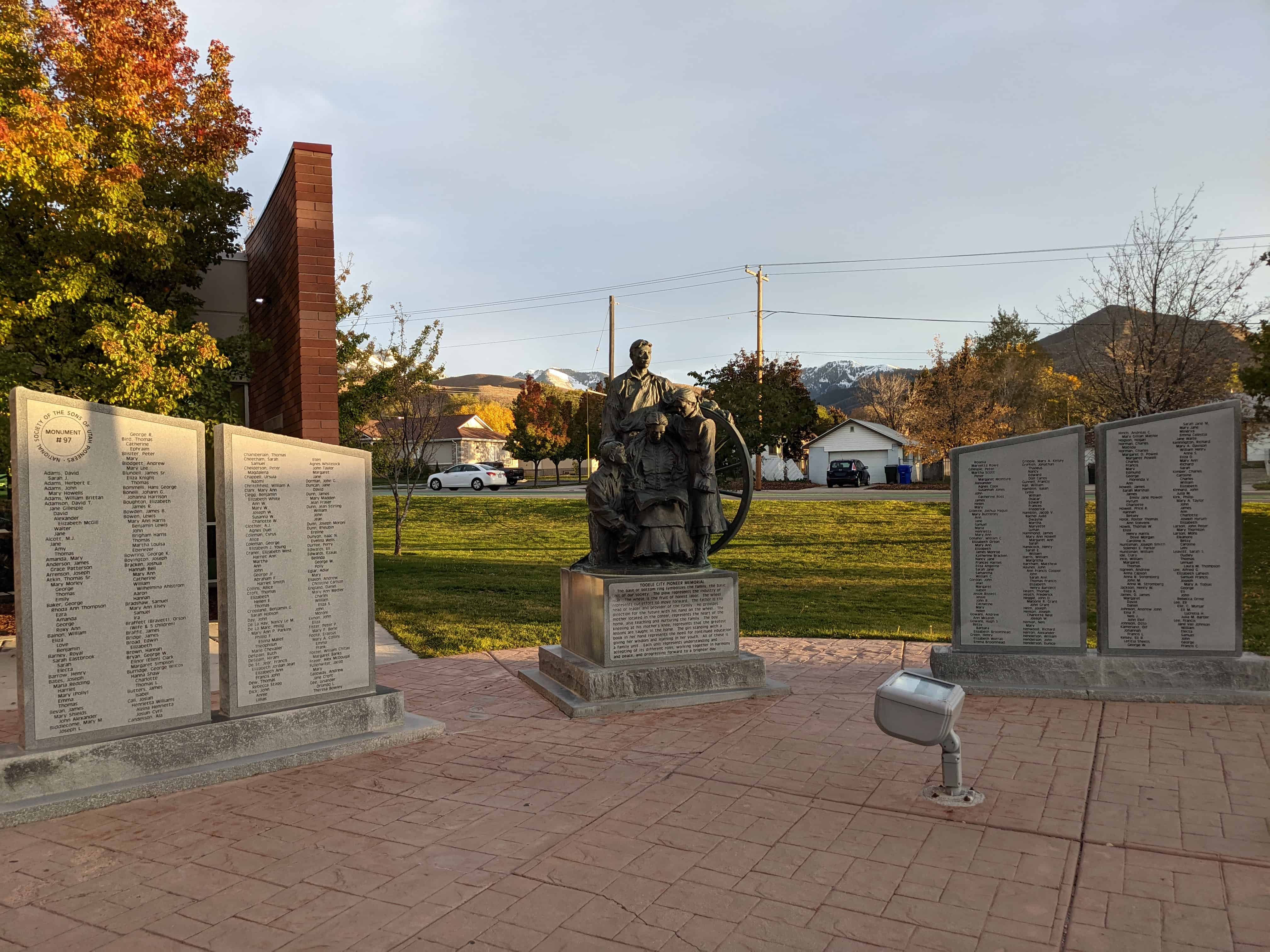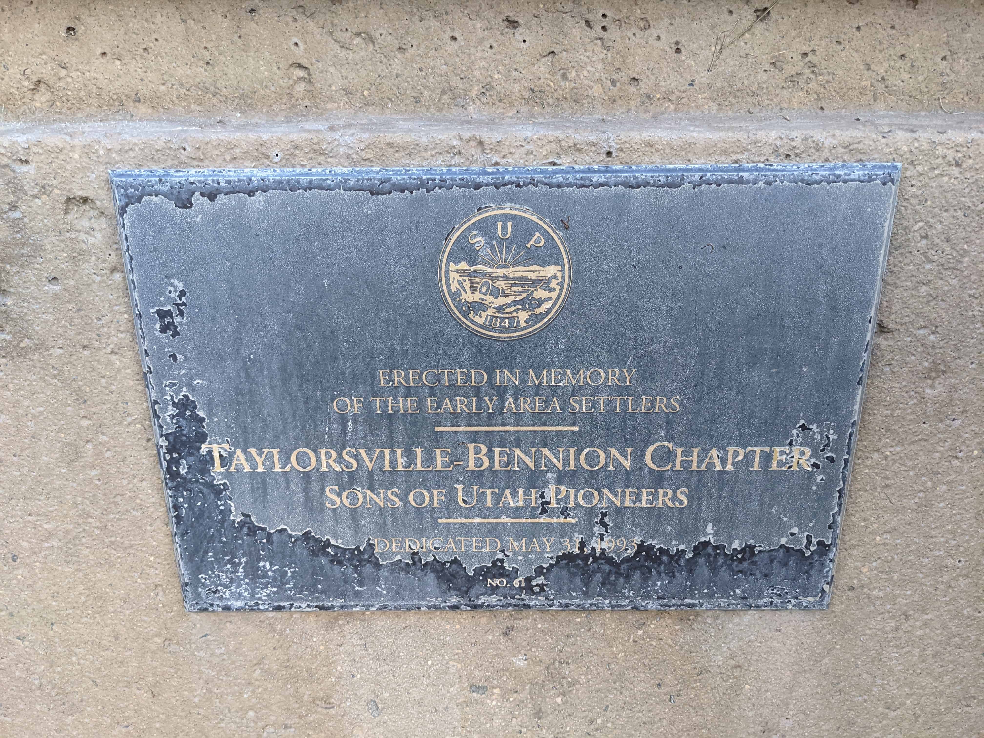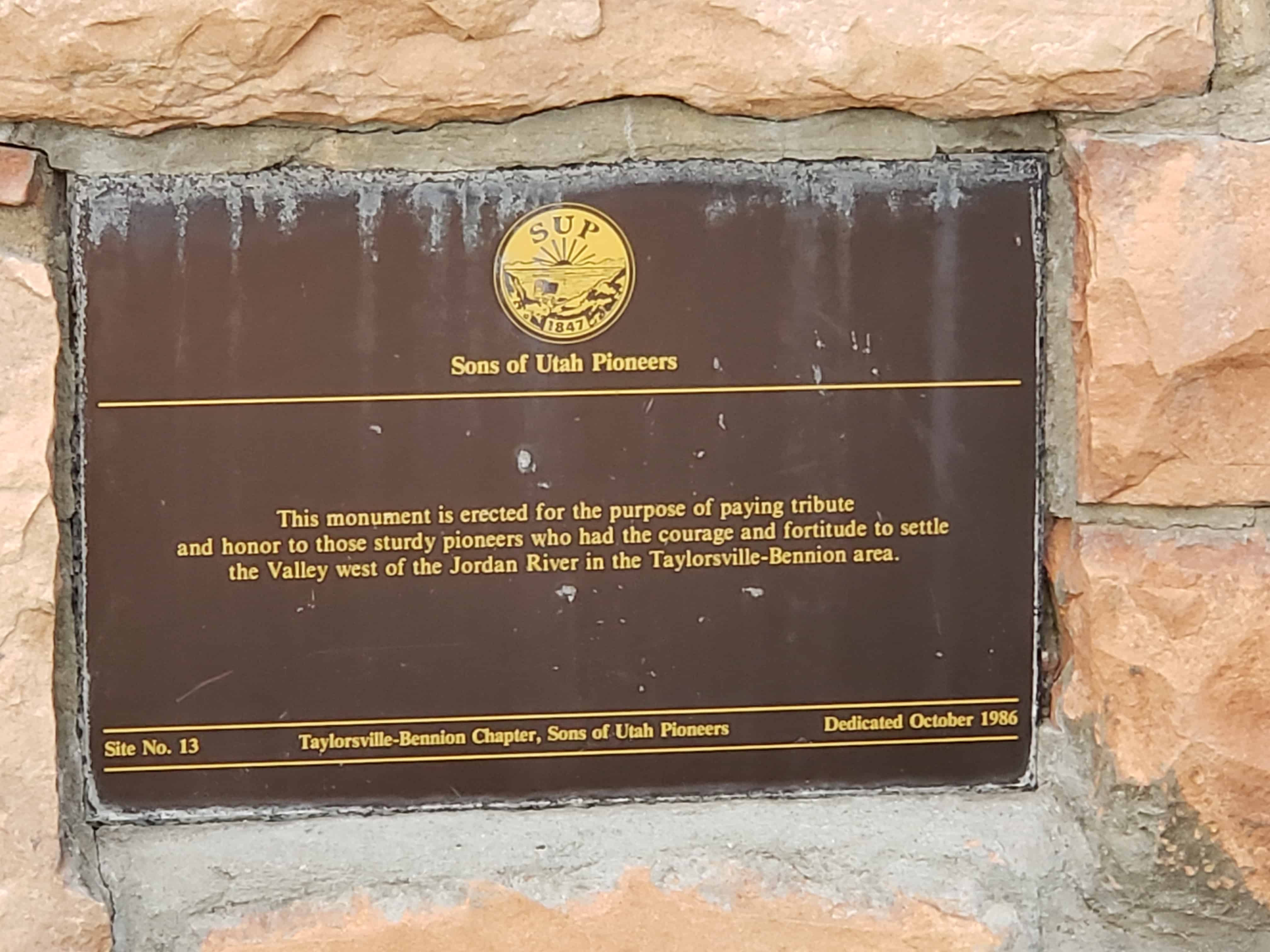 | 13 | Tribute to Taylorsville-Bennion Pioneers | Taylorsville, Salt Lake, Utah | Distant Close up | N 40.66347 W 111.93015 |