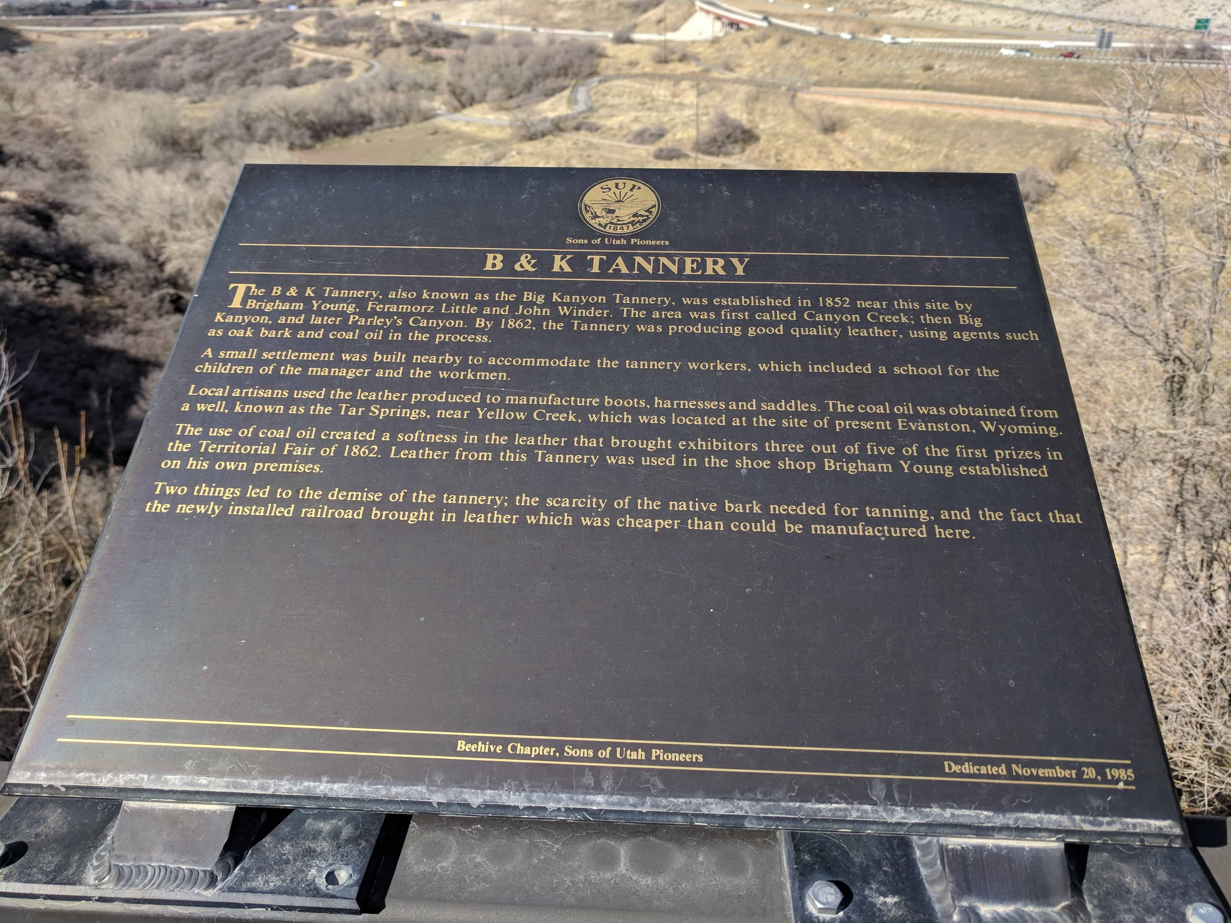 | E-1 | Pioneer Industry in Parleys Canyon | Salt Lake City, Salt Lake, Utah | Distant Close up | N 40.70849 W 111.80177 |