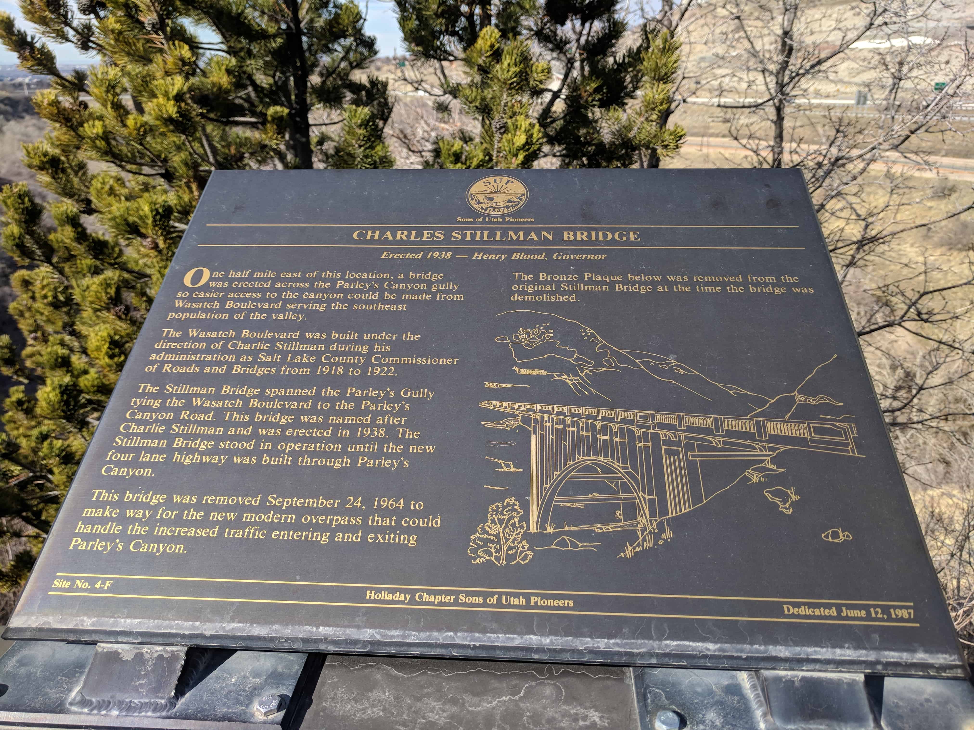 | 4-F | Charles Stillman Bridge | Salt Lake City, Salt Lake, Utah | Distant Close up | N 40.70858 W 111.80190 |