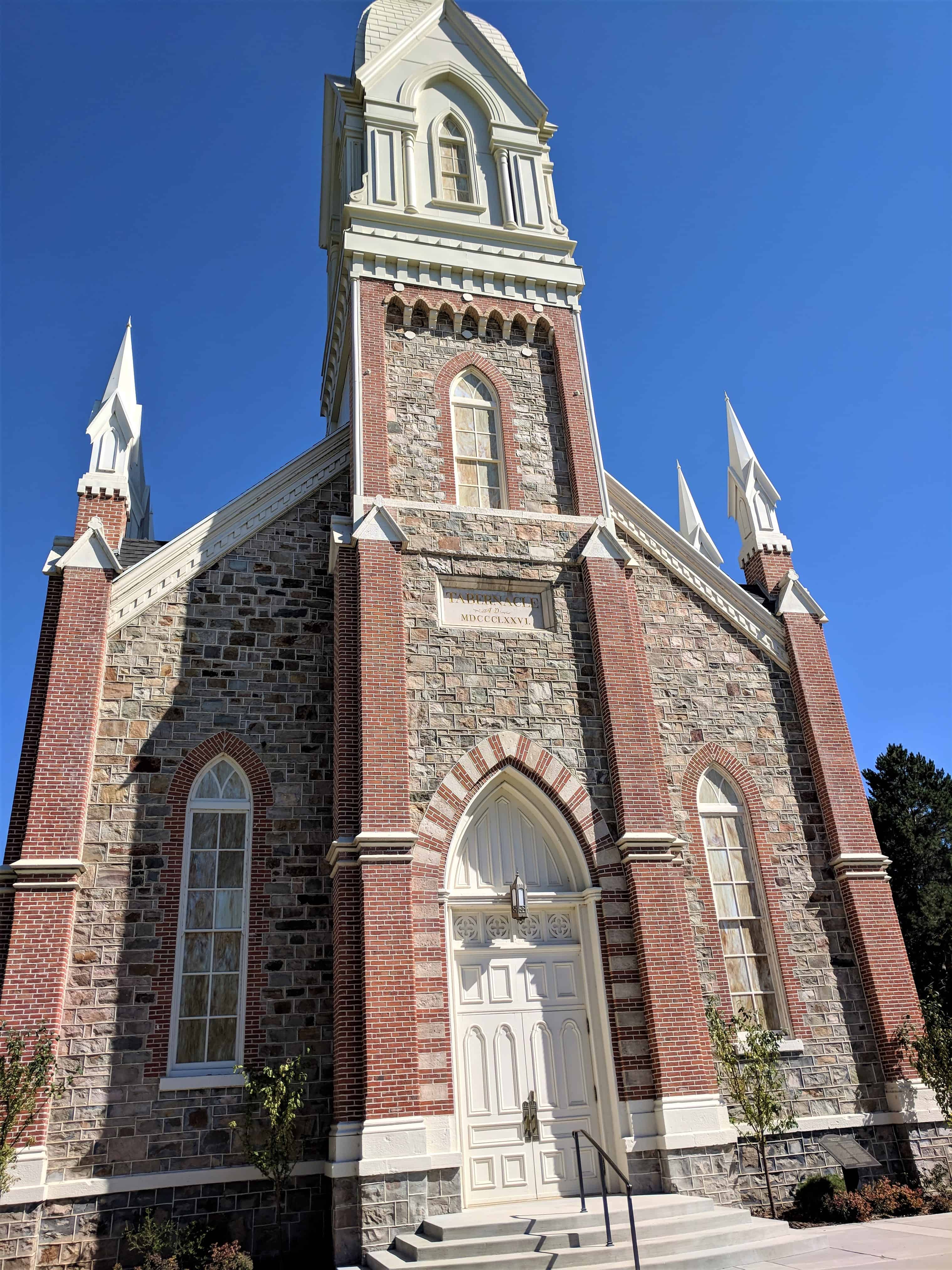 | 18 | Old Tabernacle Lintel Stone | Provo, Utah, Utah | Distant Close up | N 40.23321 W 111.65971 |
