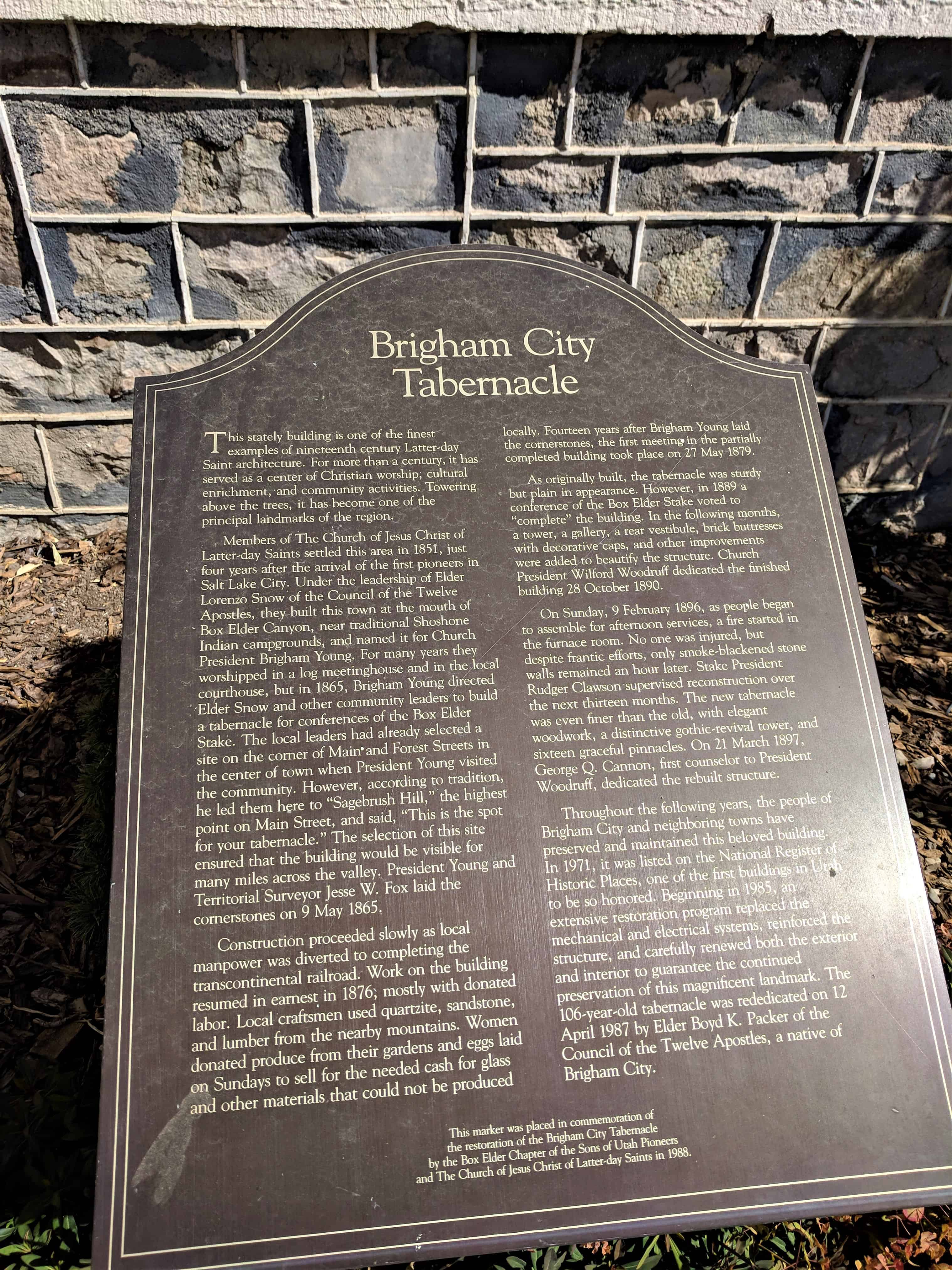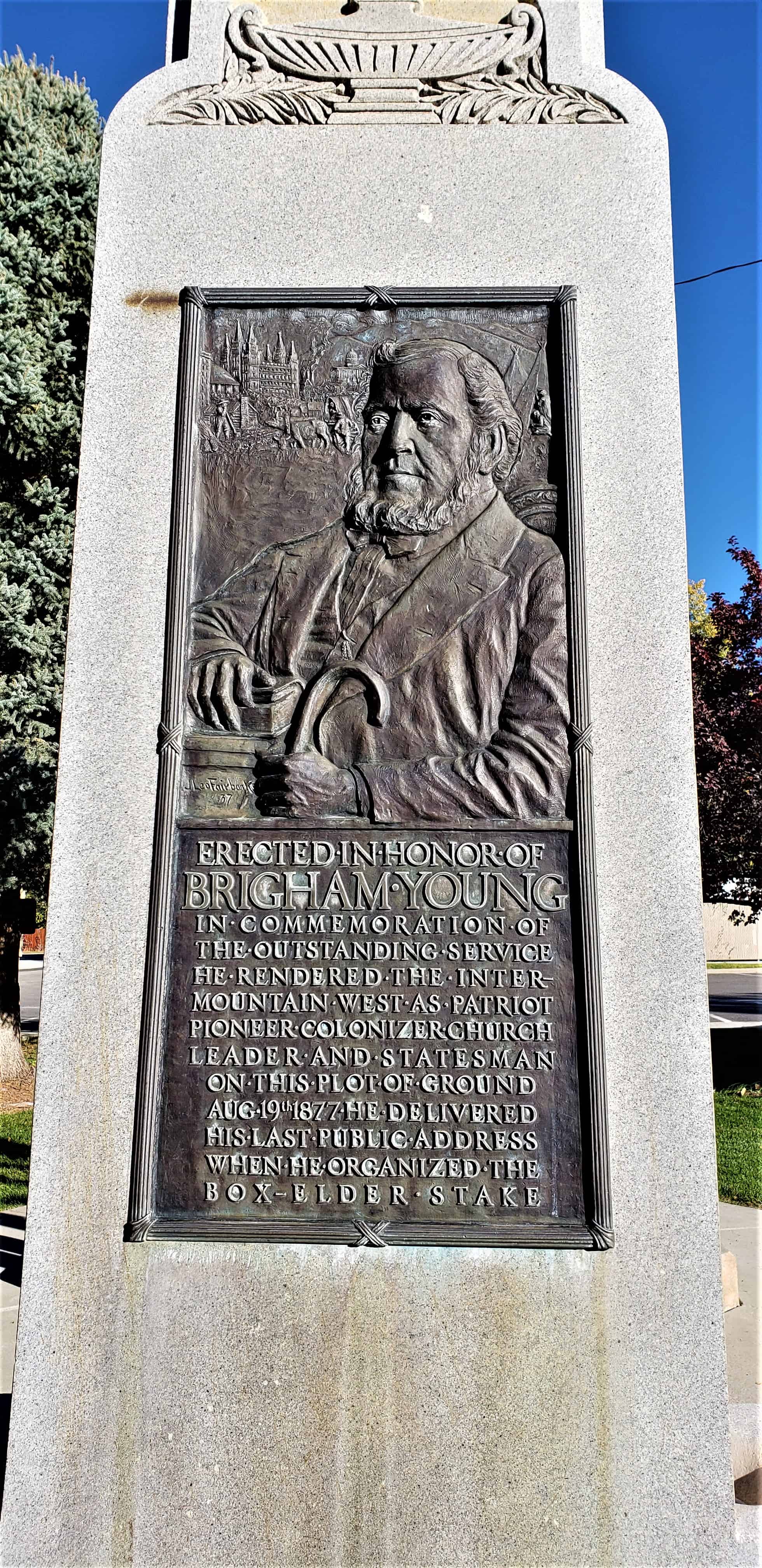 | UPTLA #69 | Brigham Young’s Last Public Address | Brigham City, Box Elder, Utah | Distant Close up | N 41.51082 W 112.01953 |