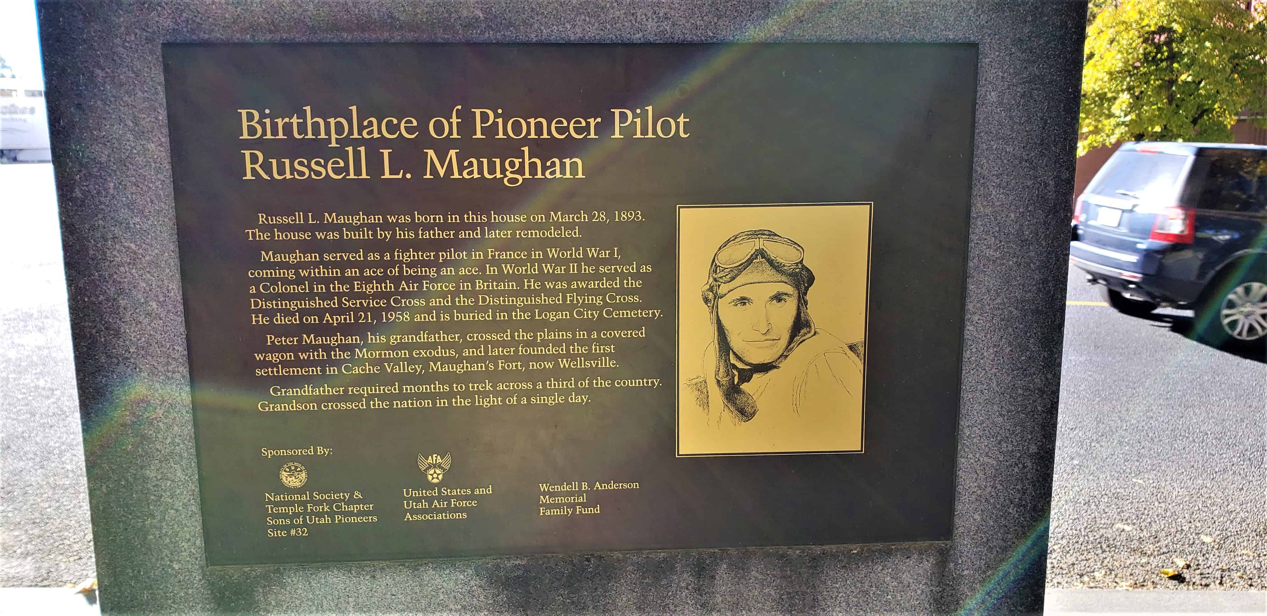 | 32 | Birthplace of Pioneer Pilot Russell L. Maughan | Logan, Cache, Utah | Distant Close up | N 41.73143 W 111.83164 |