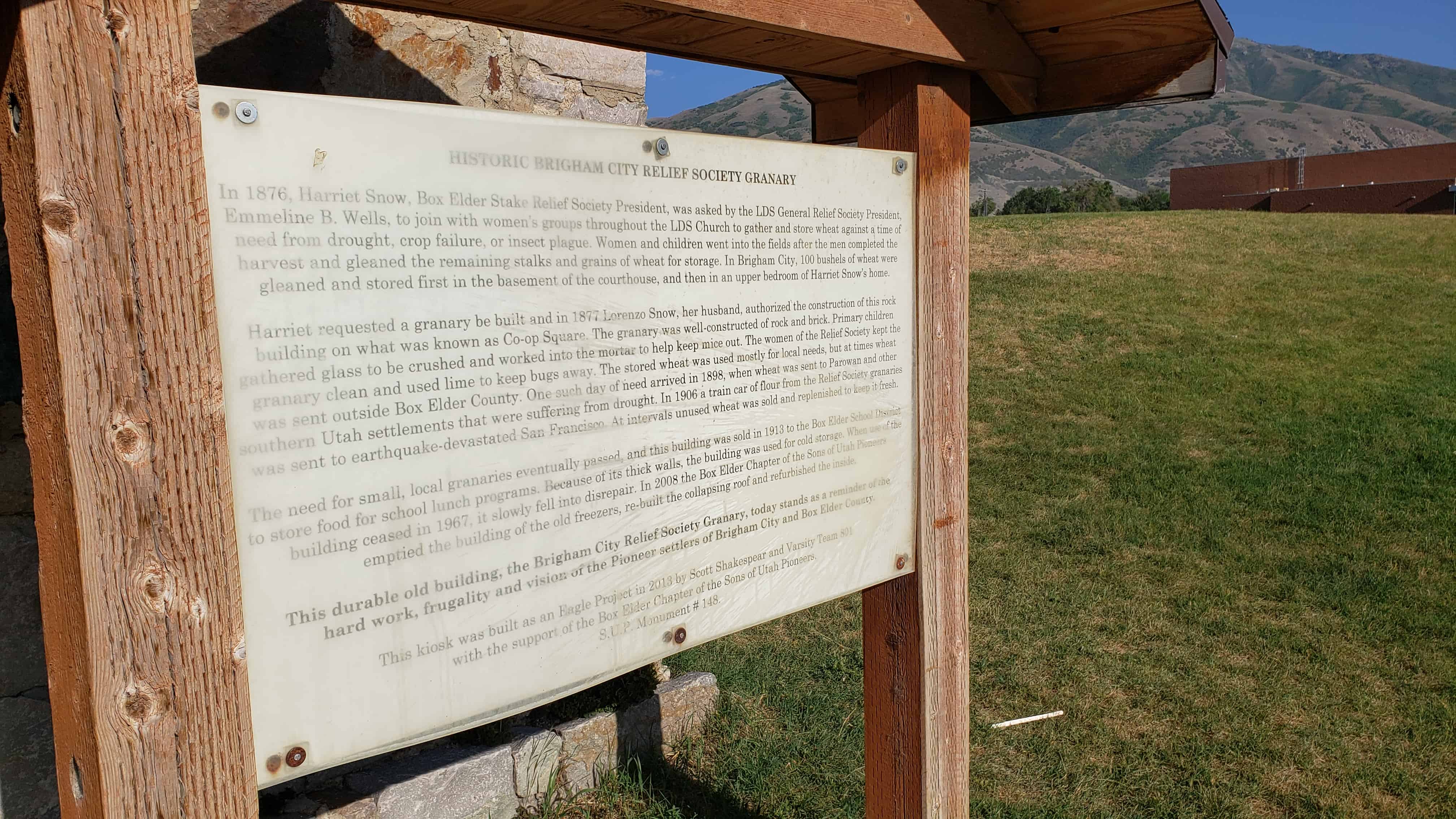 | 25 | Pioneer Care Center | Brigham City, Box Elder, Utah | Distant Close up | N 41.49491 W 112.01902 |