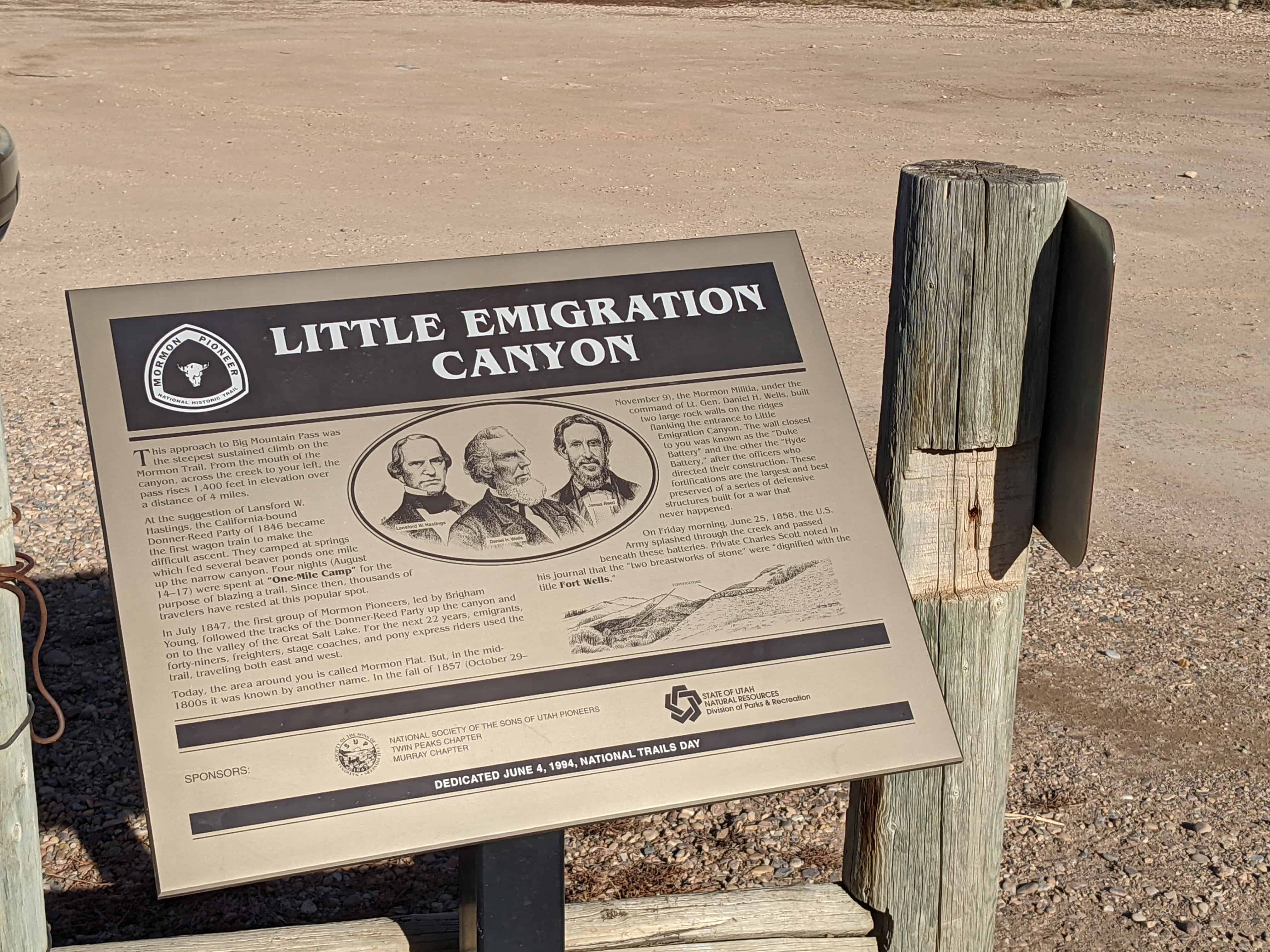 | H-1 | Mormon Flat | Emigration Canyon, Morgan, Utah | N 40.82755 W 111.58335 (missing) |
