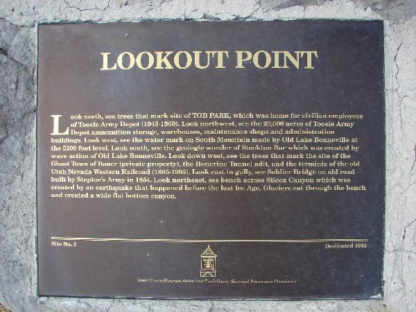 | 47 | Lookout Point | Tooele, Tooele, Utah | Distant Close up | N 40.47705 W 112.34768 |