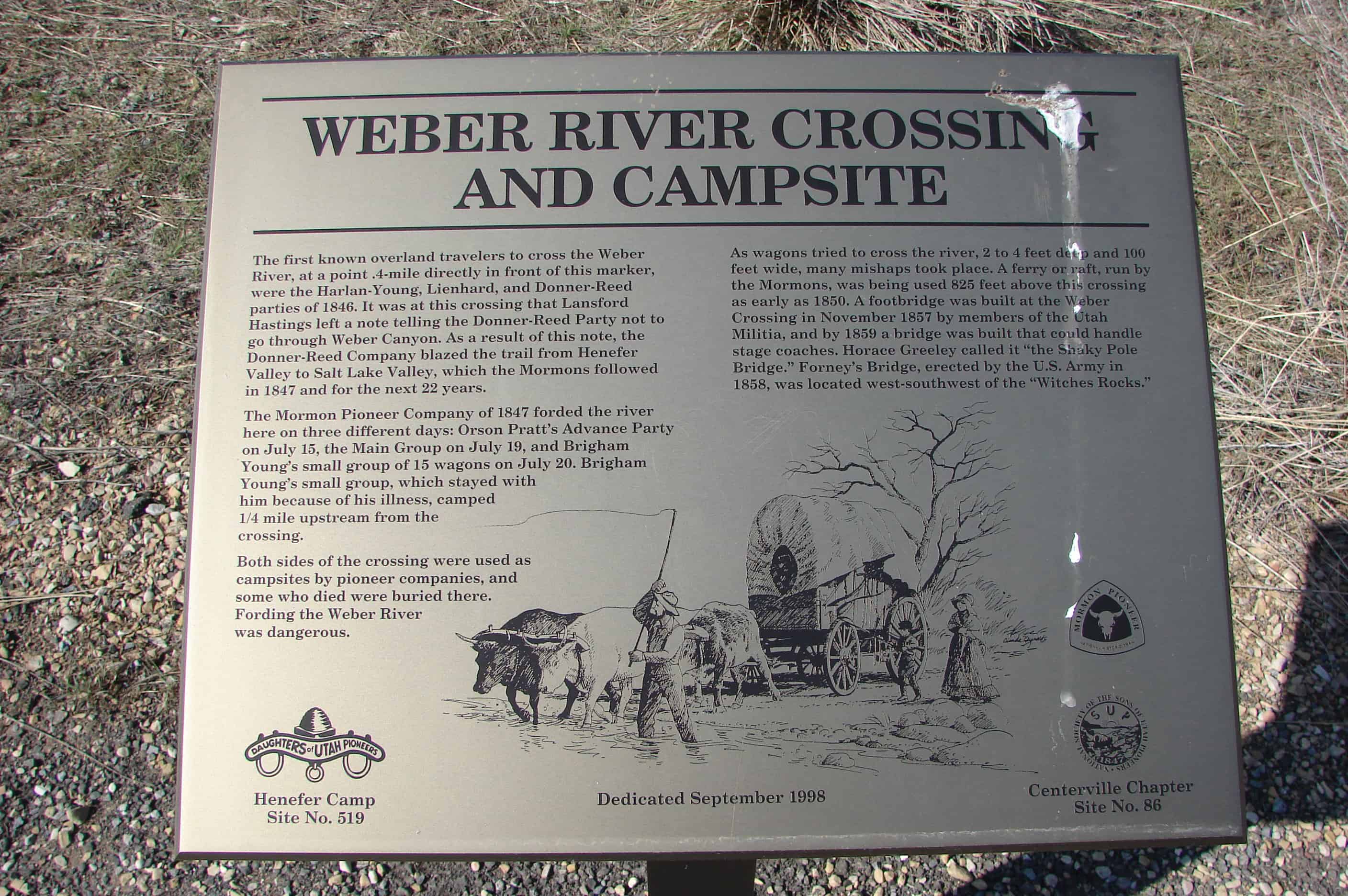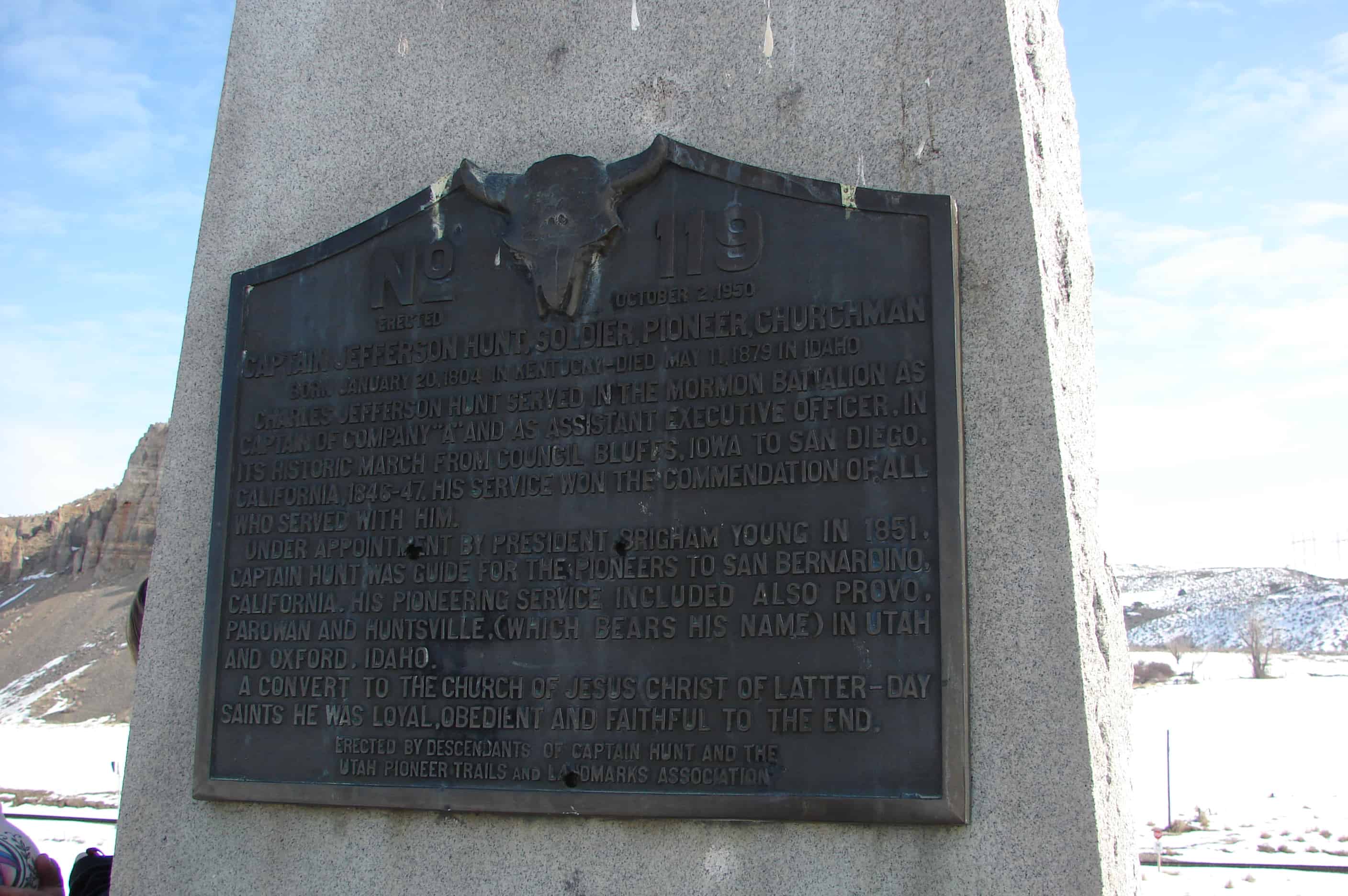 | UPTLA #119 | Captain Jefferson Hunt | Downey, Bannock, Idaho | Distant Close up | N 42.35453 W 112.04905 |