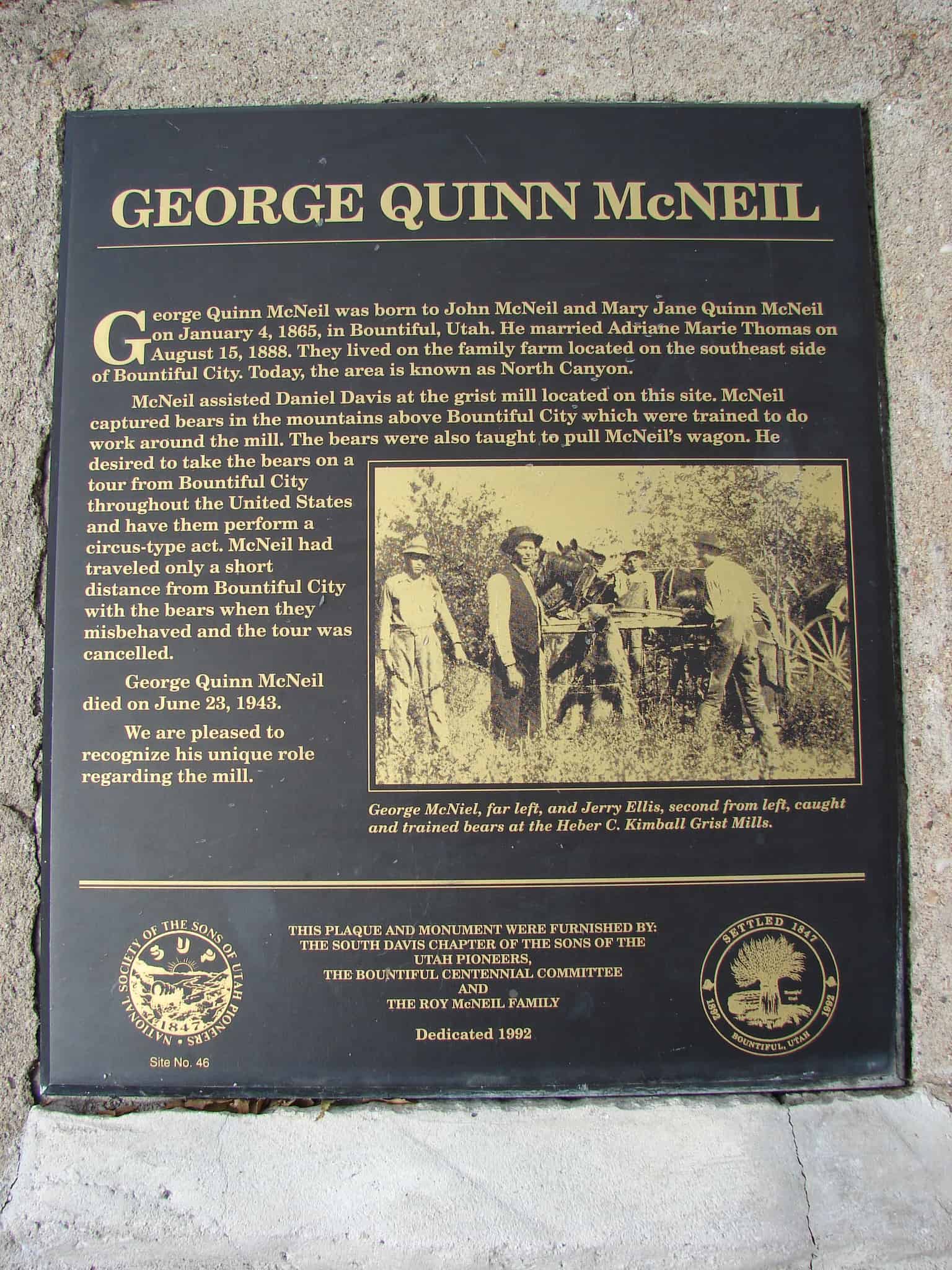| 46 | George Quinn McNeil | Bountiful, Davis, Utah | Distant Close up | N 40.88024 W 111.87282 |