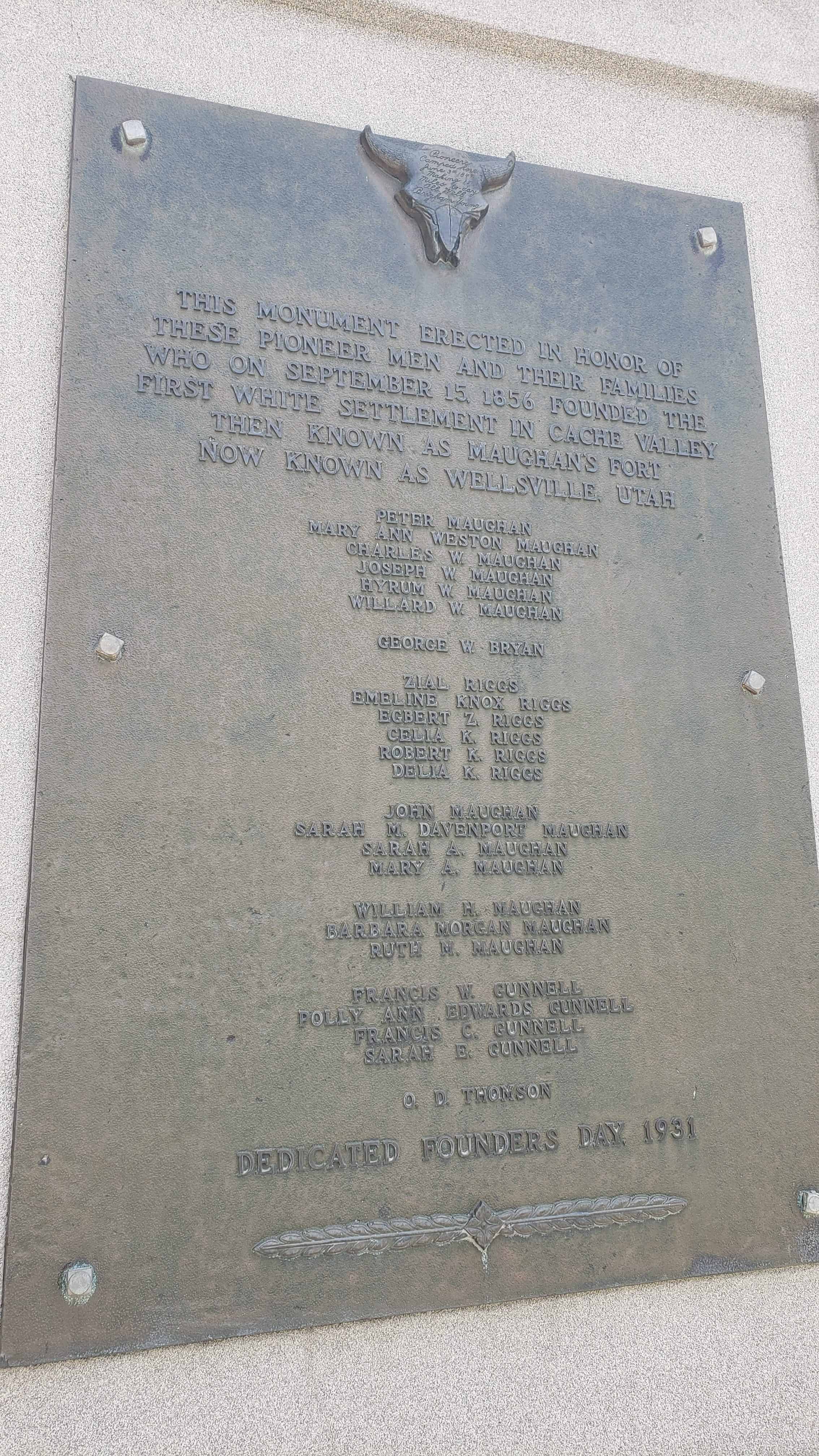 | Wellsville Founders Monument | Wellsville, Cache, Utah | Distant Close up | N 41.63852 W 111.93404 |
