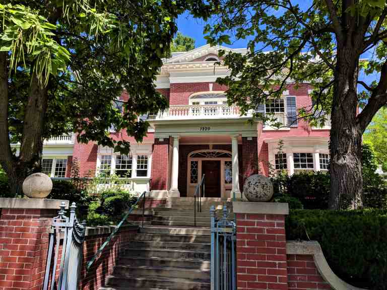The South Temple Historic District includes a significant deviation from the original plat of the city in Haxton Place. Purchased by James T. Keith, a Salt Lake dentist, Haxton Place is reportedly modeled after London’s street of the same name and was laid out by Englishman Thomas G. Griffin. Although a simple cul-de-sac with two pairs of stone and iron pillars at the entrance, Haxton Place is distinguished by the unique variants of various Colonial Revival designs built there.