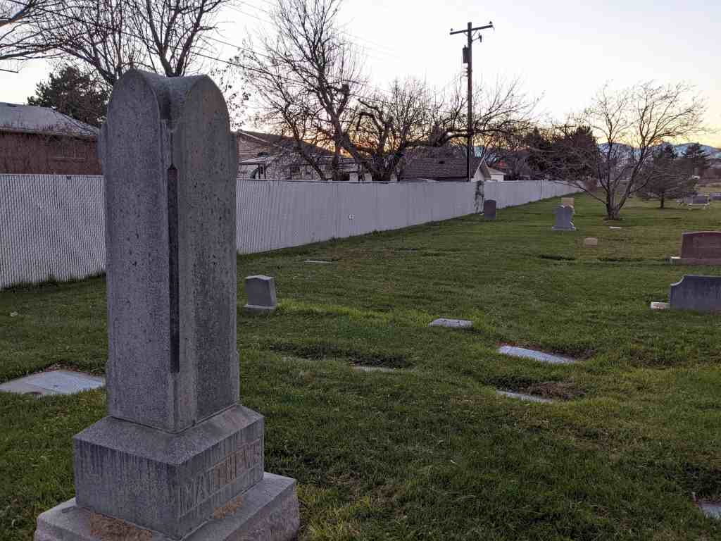 Taylorsville Cemetery 27 Thursday Sep 2018 Posted by Jacob Barlow in Uncategorized ≈ Leave a comment TagsCemeteries, Salt Lake County, Taylorsville, utah The Taylorsville Cemetery. Related posts: English Fort Taylorsville–Bennion Cemetery & Cemetery Flagpole 4567 South Redwood Road in Taylorsville, Utah Share this: Click to share on Facebook (Opens in new window) Facebook Click to share on Pinterest (Opens in new window) Pinterest Click to share on X (Opens in new window) X Click to share on WhatsApp (Opens in new window) WhatsApp Click to print (Opens in new window) Print Click to share on Telegram (Opens in new window) Telegram Click to share on LinkedIn (Opens in new window) LinkedIn Click to share on Reddit (Opens in new window) Reddit Click to share on Tumblr (Opens in new window) Tumblr Click to share on Pocket (Opens in new window) Pocket Click to email a link to a friend (Opens in new window) Email Click to share on Mastodon (Opens in new window) Mastodon Click to share on Nextdoor (Opens in new window) Nextdoor Like this:Like Loading... Related