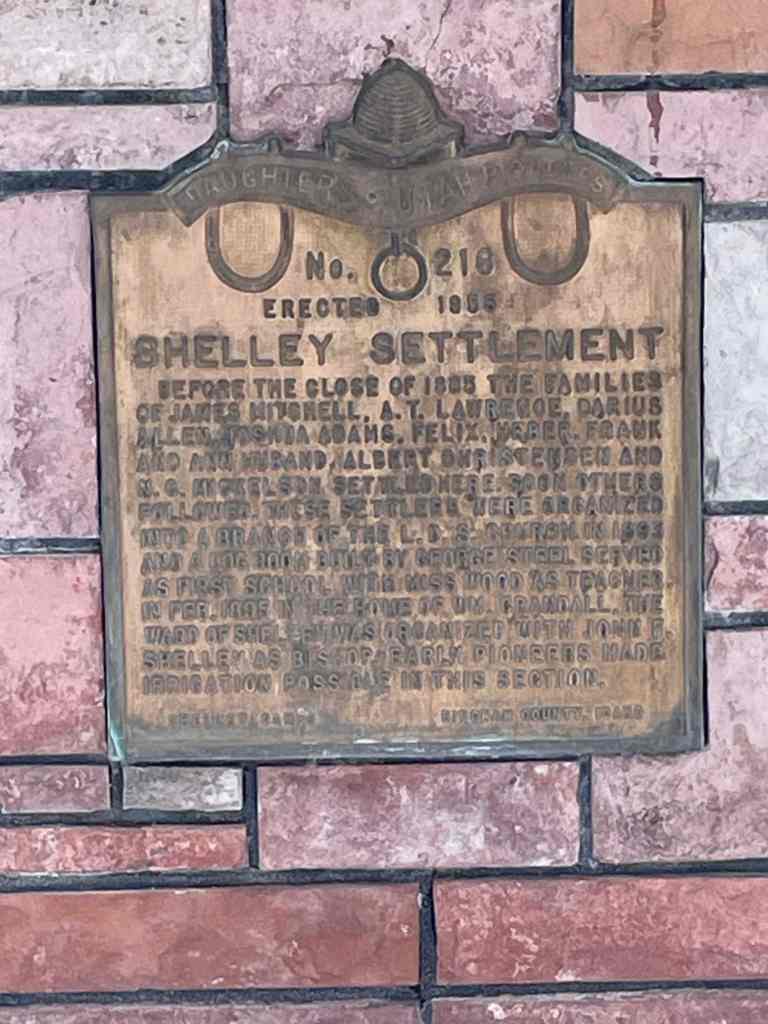 The above text is from the monument (Daughters of Utah Pioneers historic marker #216) located at 219 South Milton Avenue in Shelley, Idaho.