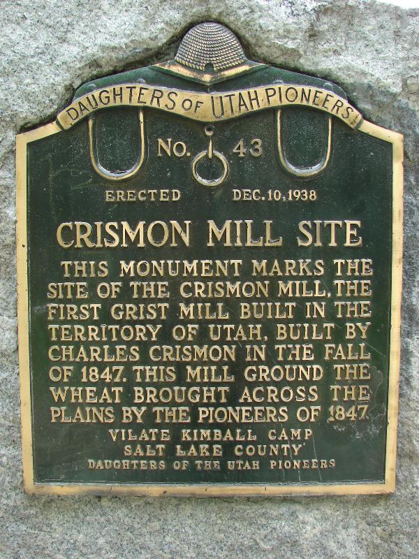 | 43 | Crismon Mill Site | Salt Lake City, Salt Lake, Utah | Distant Close up | N 40.77333 W 111.88634 | ||