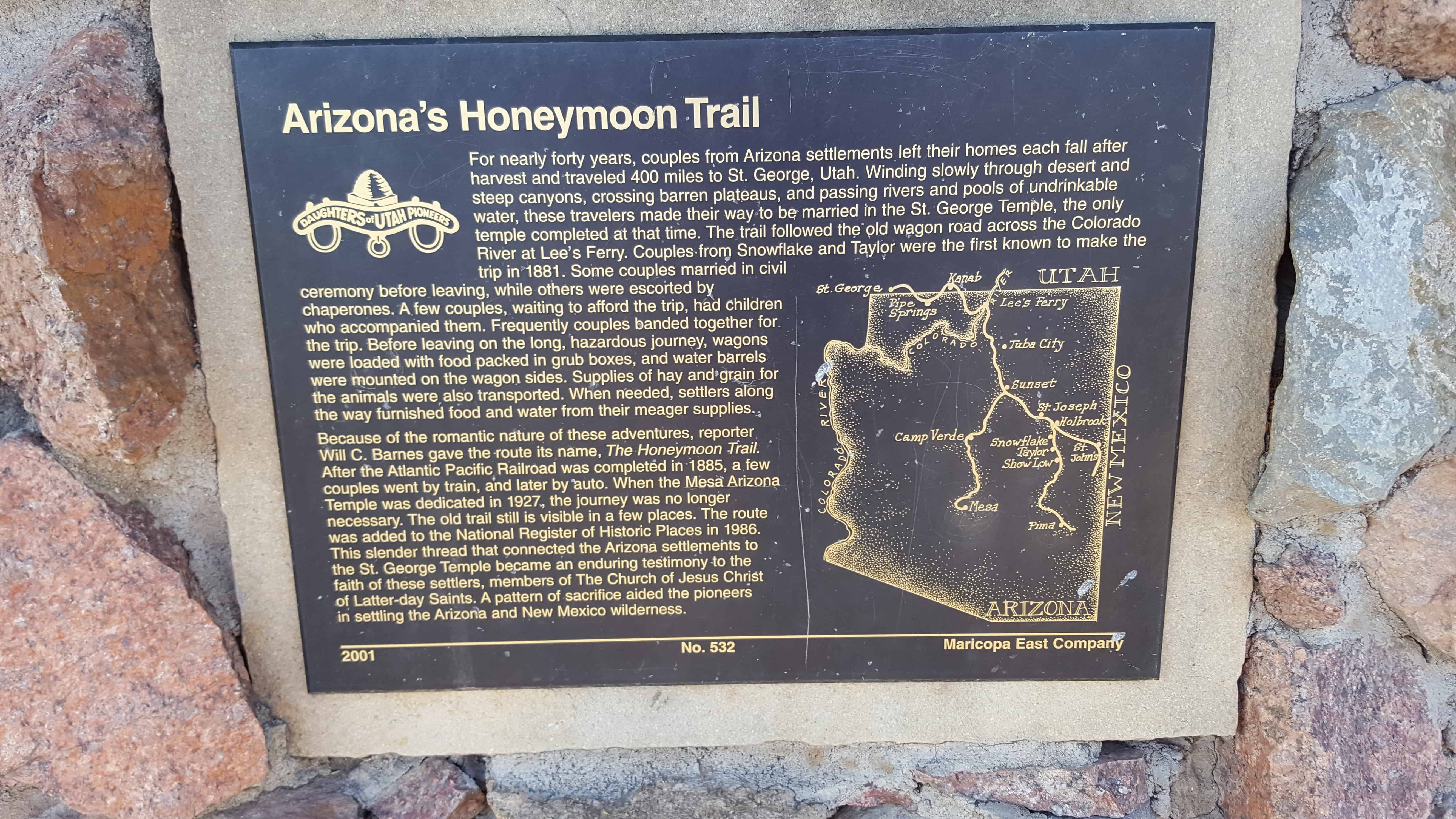 | 532 | Arizona's Honeymoon Trail | Mesa, Maricopa, Arizona | Distant Close up | N 33.41580 W 111.81959 | ||