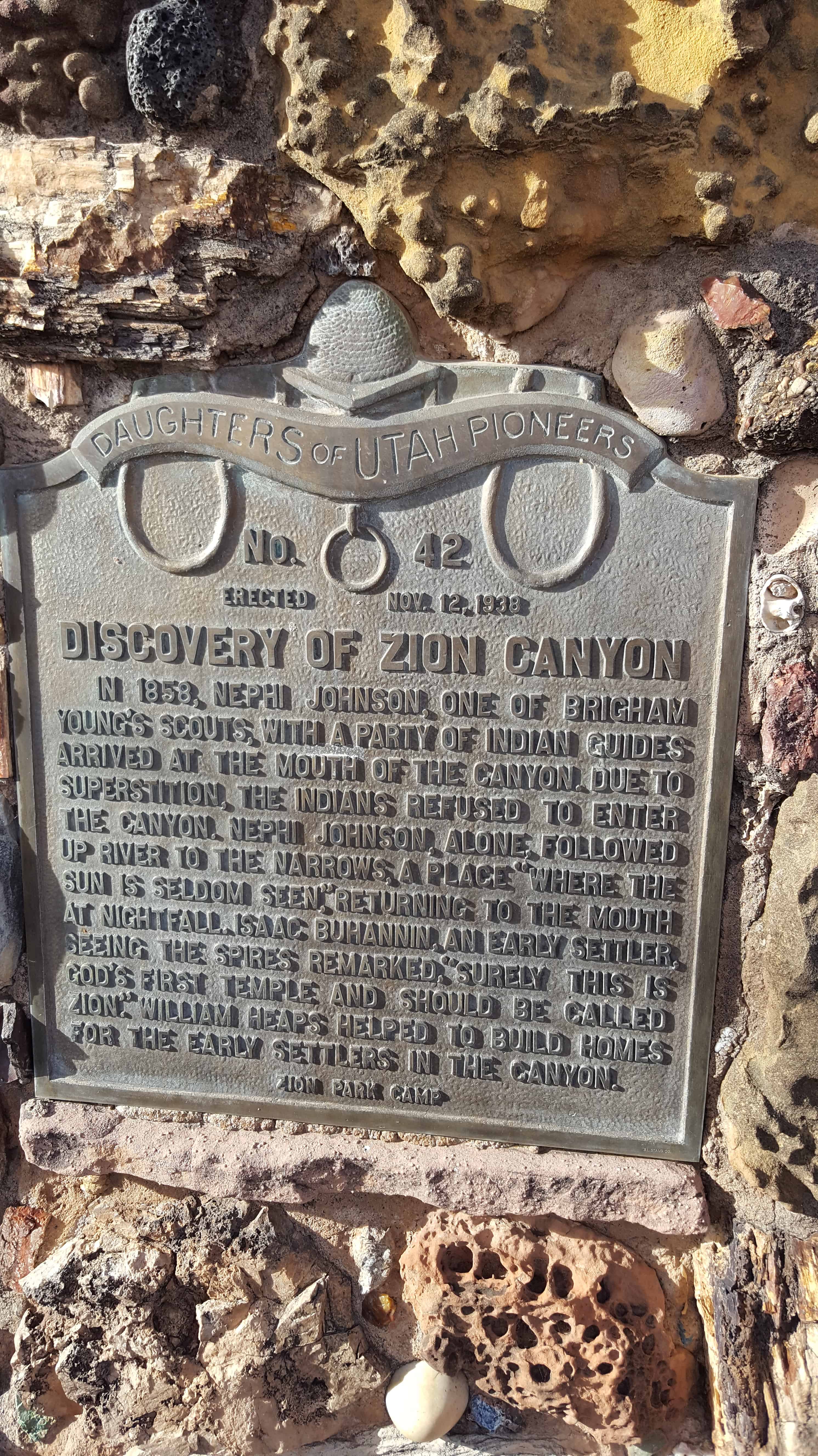 | 42 | Discovery of Zion Canyon | Springdale, Washington, Utah | Distant Close up | N 37.18906 W 112.99819 | ||