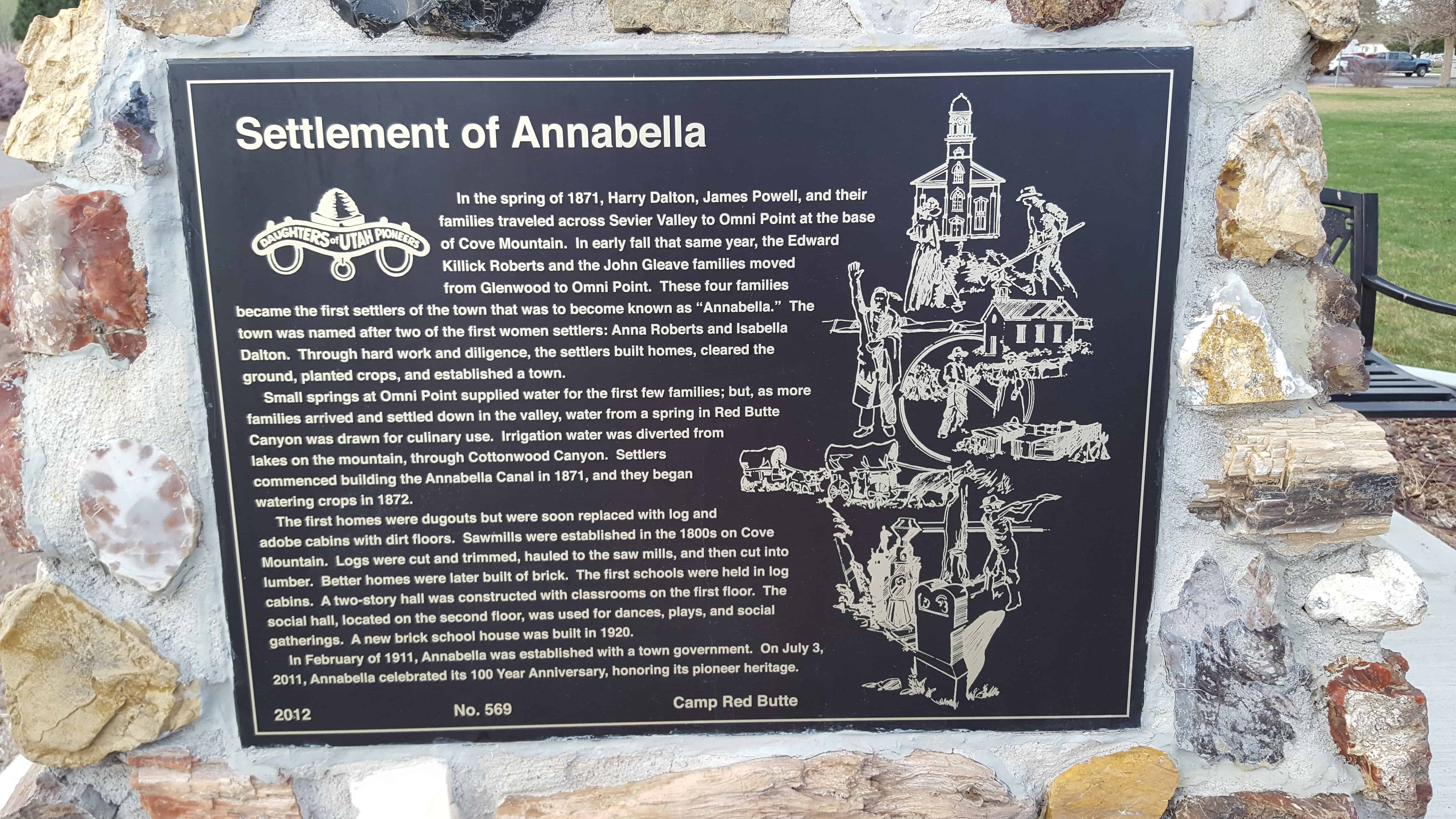 | 569 | Settlement of Annabella | Main and Center | Annabella | Sevier, Utah | Distant Close up | N 38.70699 W 112.06071 |