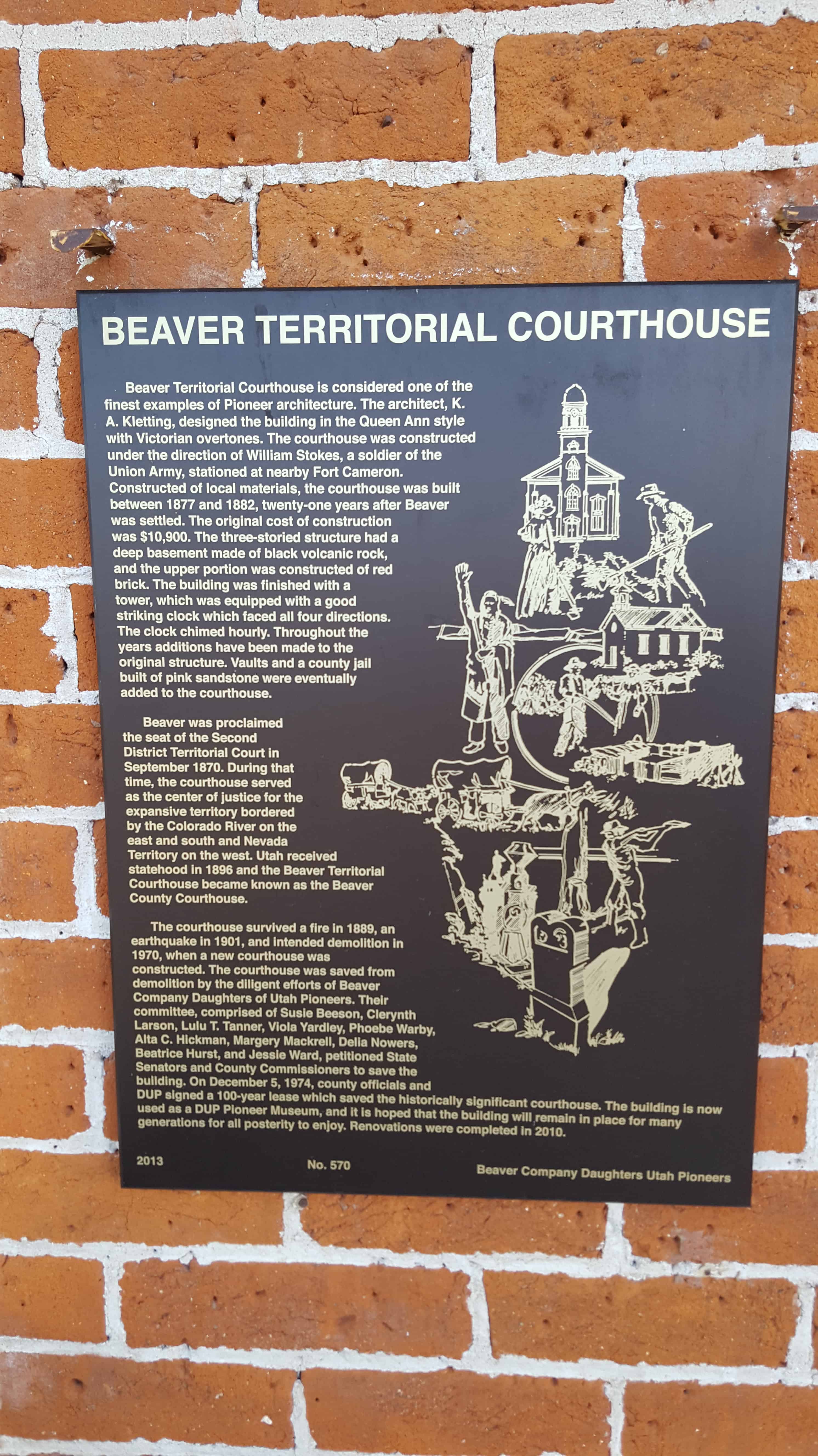 | 570 | Beaver Territorial Courthouse | 90 E Center St | Beaver | Beaver, Utah | Distant Close up | N 38.27392 W 112.64007 |