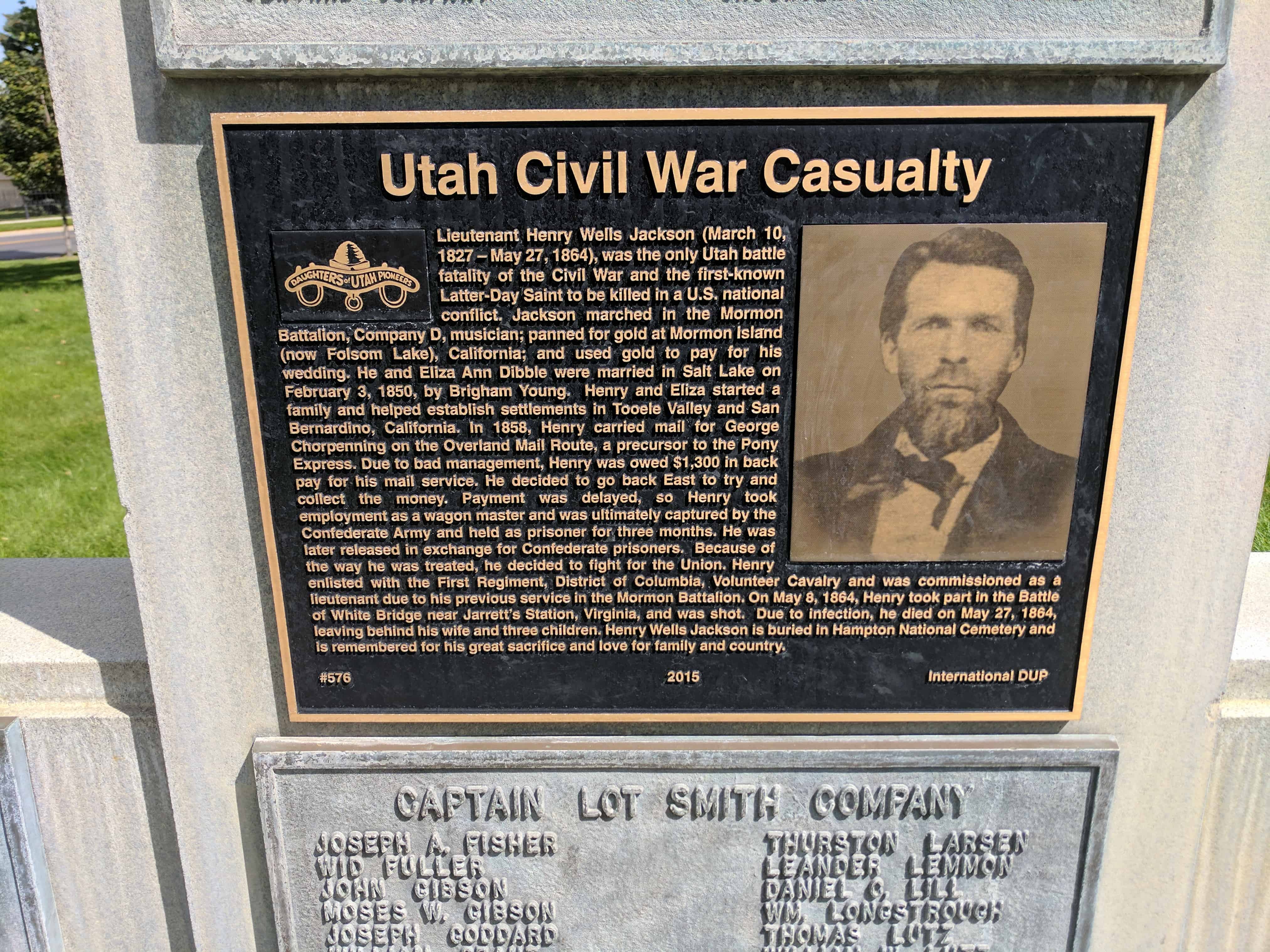 | 576 | Utah Civil War Casualty | 320 N Columbus St | Salt Lake City | Salt Lake, Utah | Distant Close up | N 40.77670 W 111.89044 |