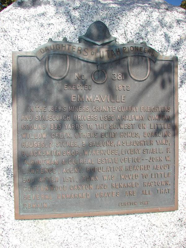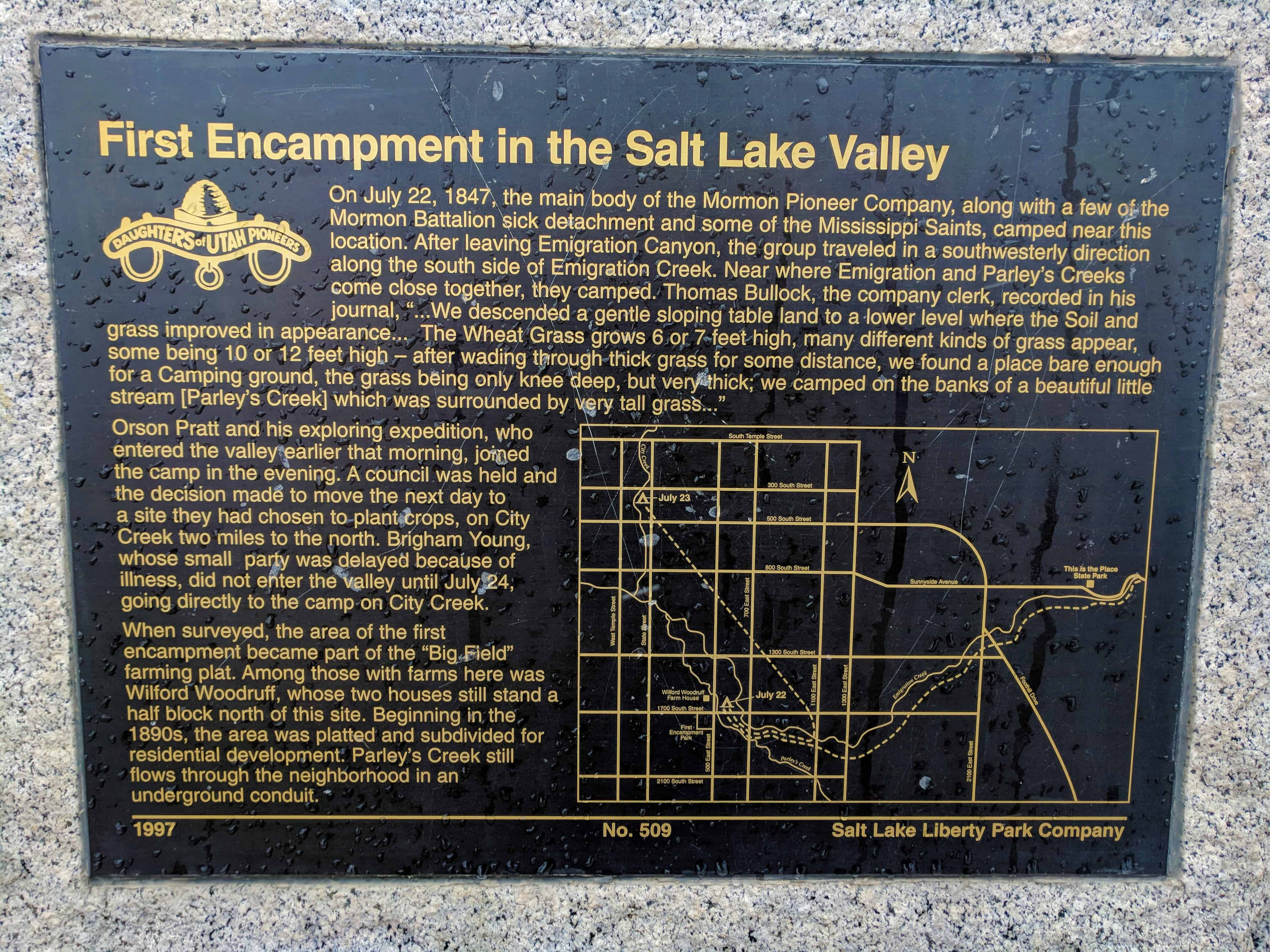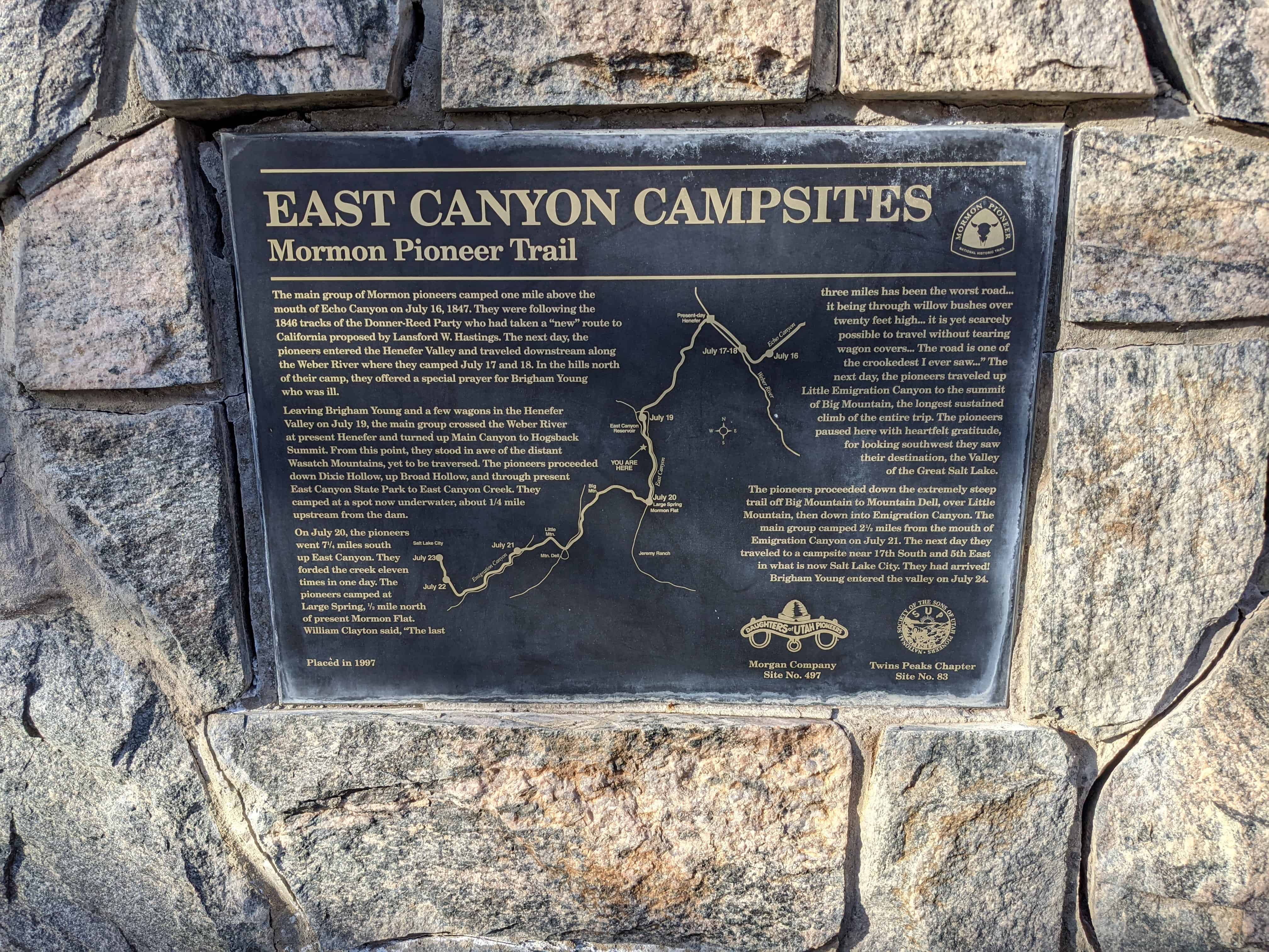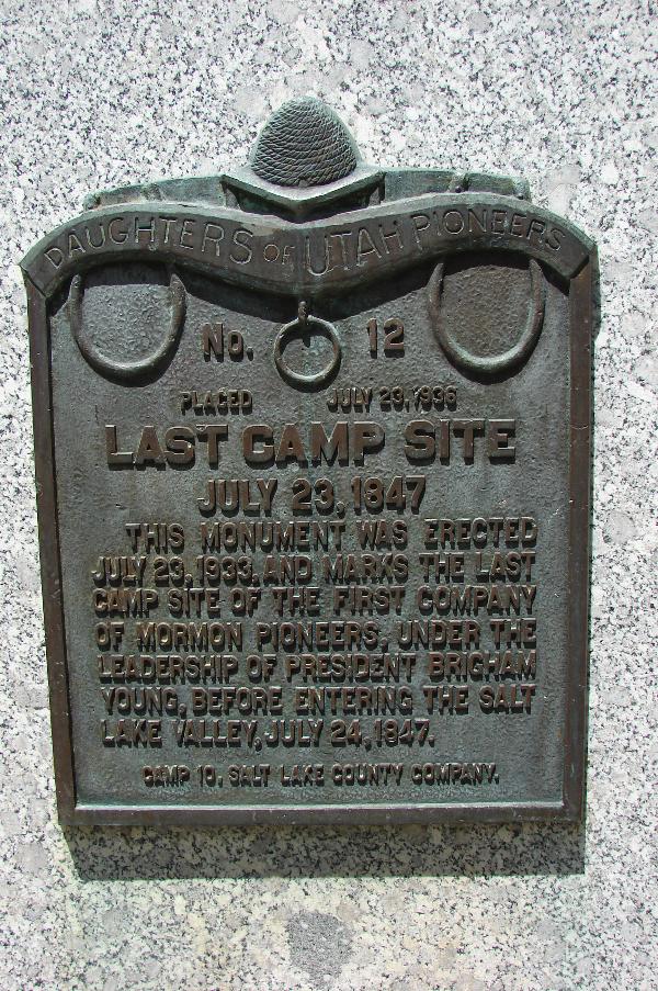 | 12 | Last Camp Site | 6315 Emigration Canyon Rd | Salt Lake City | Salt Lake, Utah | Distant Close up | N 40.77878 W 111.72931 |
