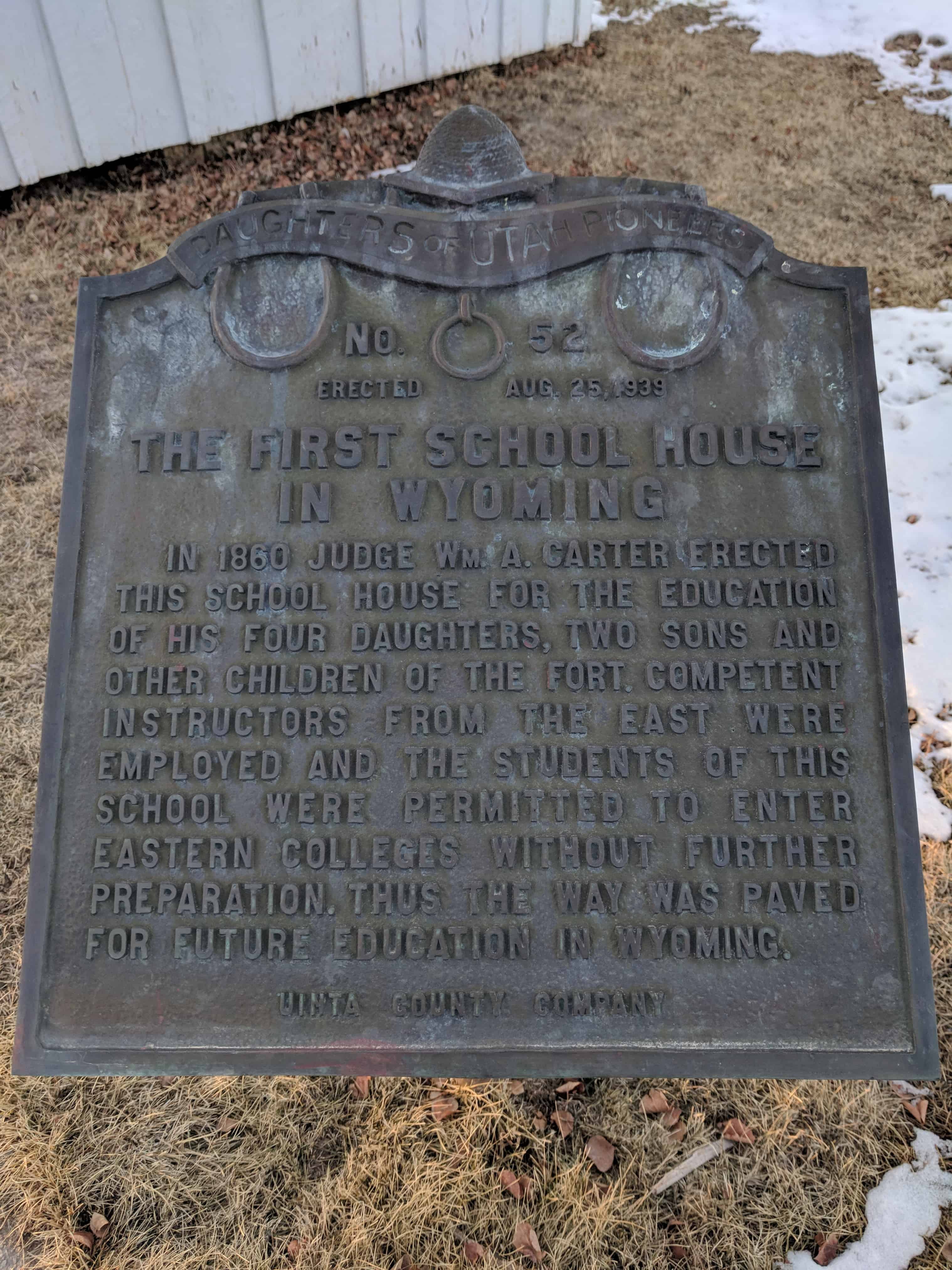 | 52 | First School House in Wyoming | Fort Bridger, Uinta, Wyoming | Distant Close up | N 41.31856 W 110.38997 | ||