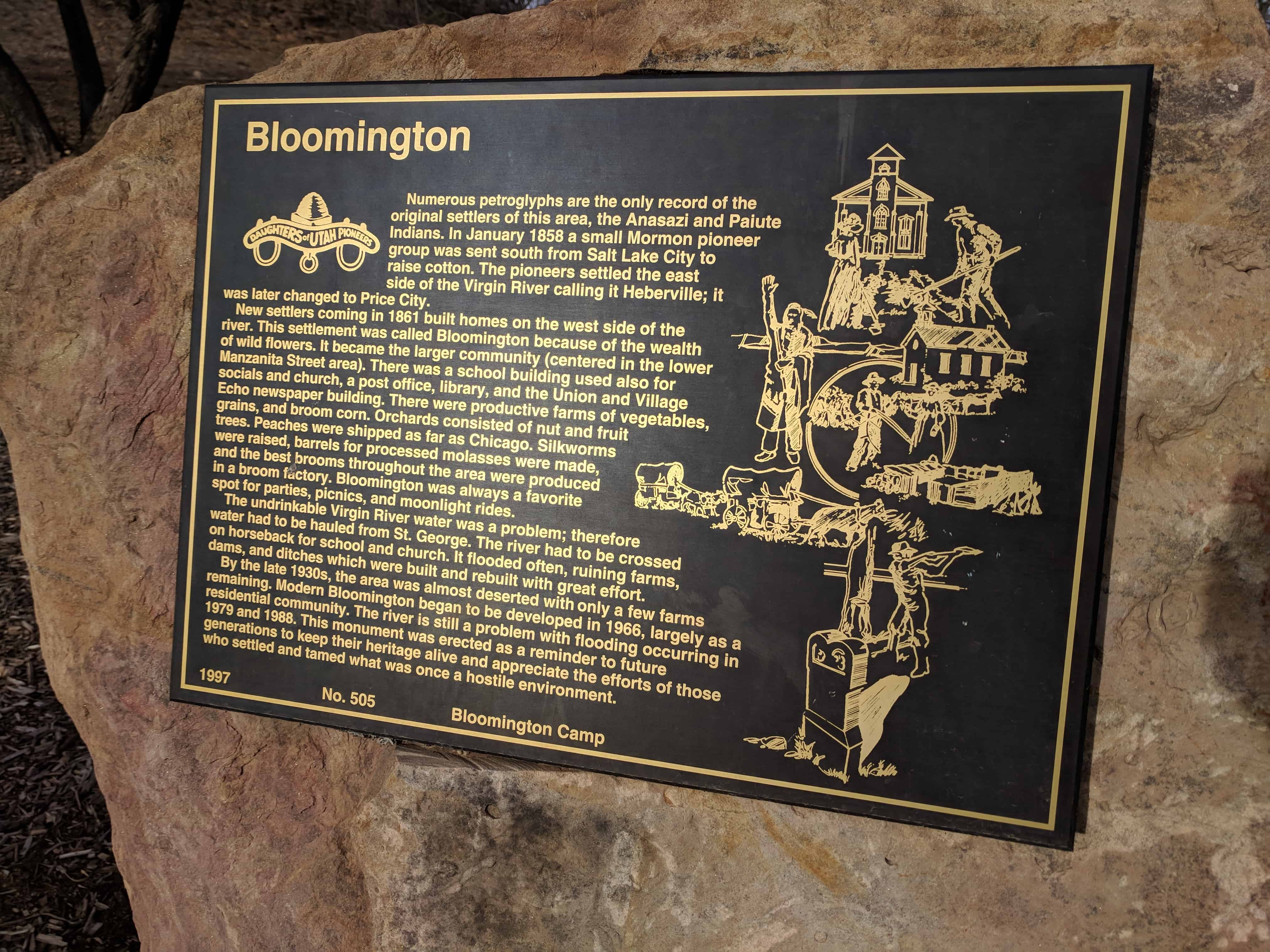 | 14 | The Dixie Pioneers | 97 E St George Blvd | St. George | Washington, Utah | Distant Close up | N 37.11026 W 113.58139 |
