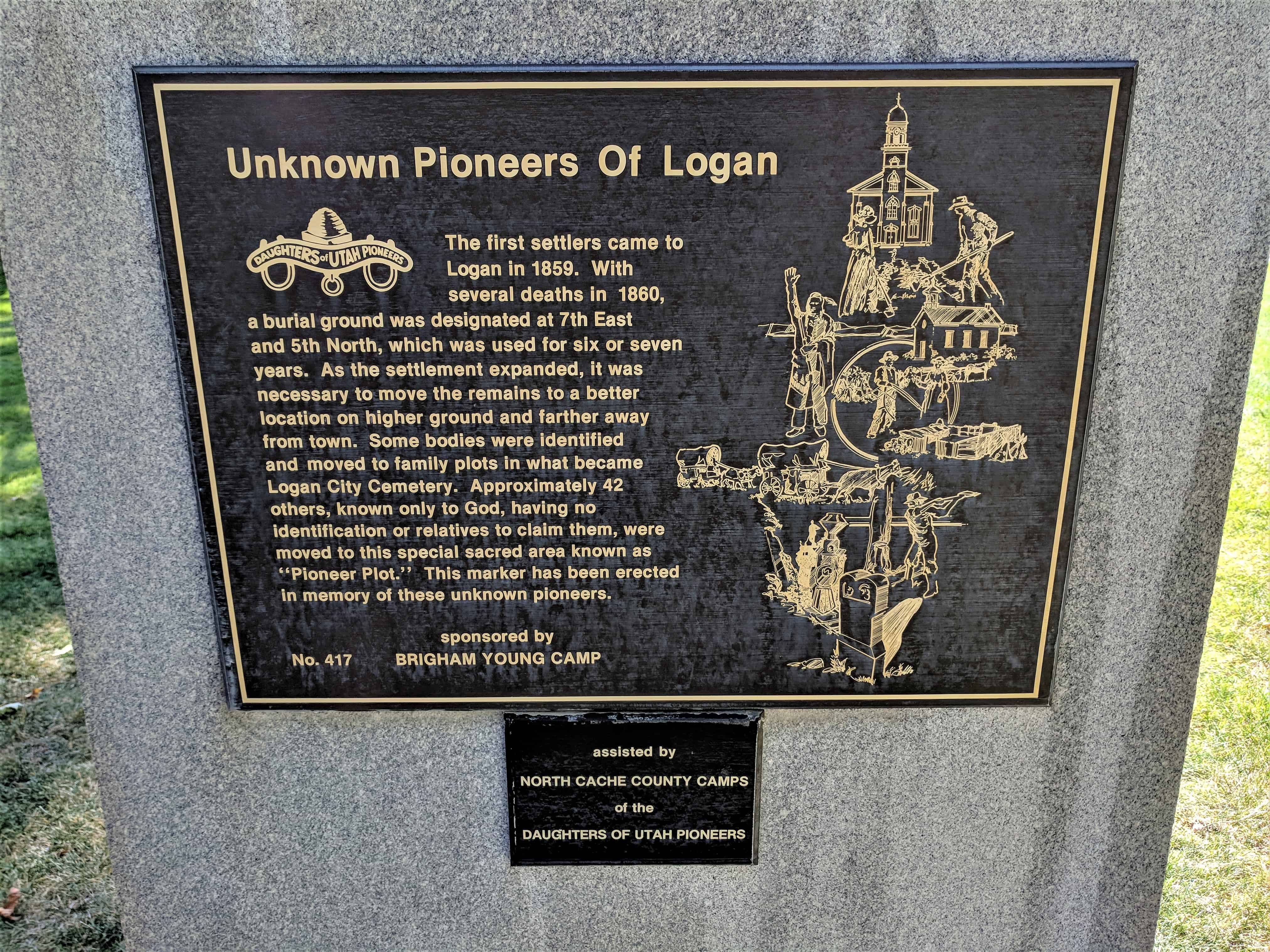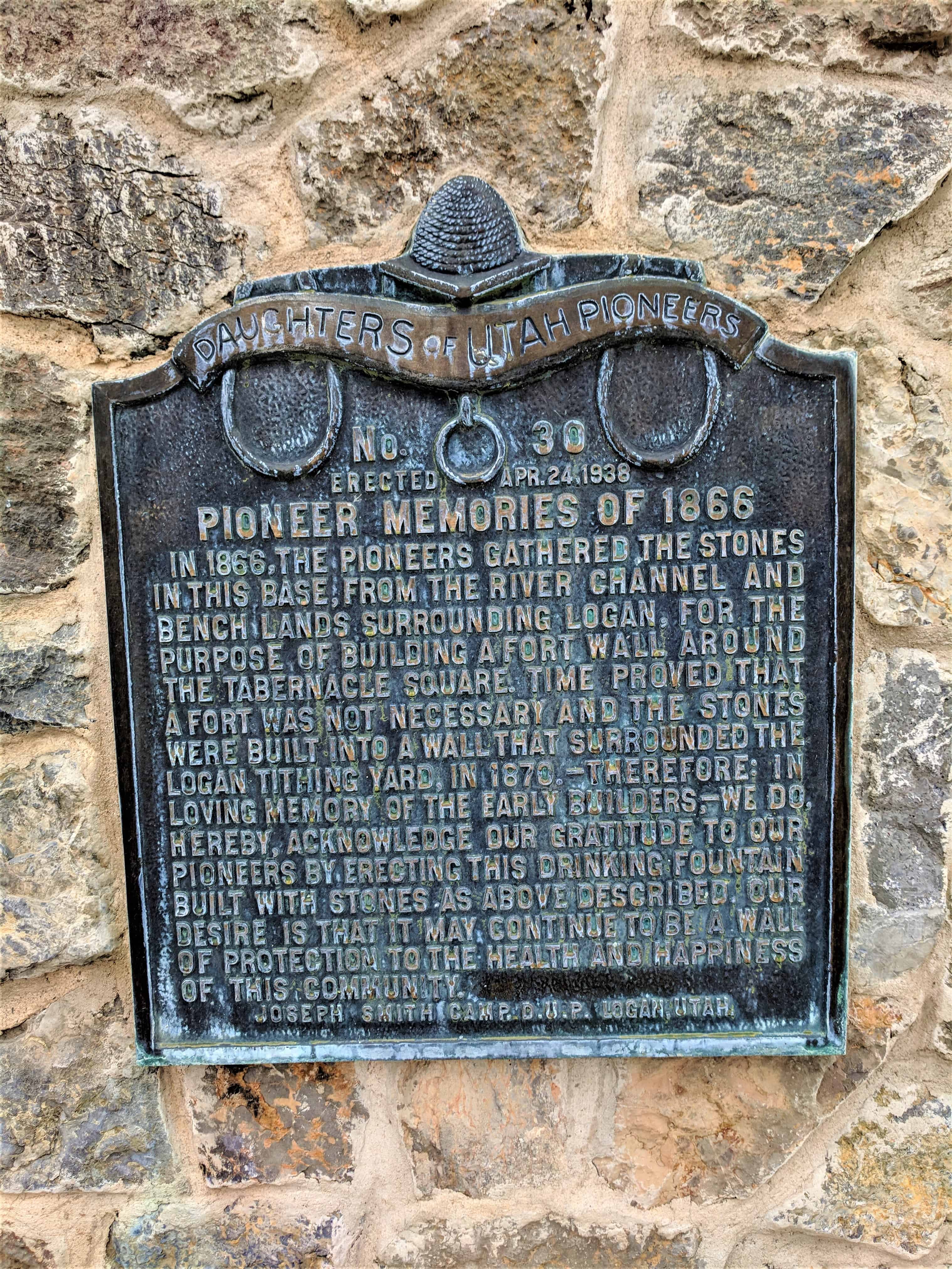 | 30 | Pioneer Memories of 1866 | 50 N Main St | Logan | Cache, Utah | Distant Close up | N 41.73209 W 111.83324 |