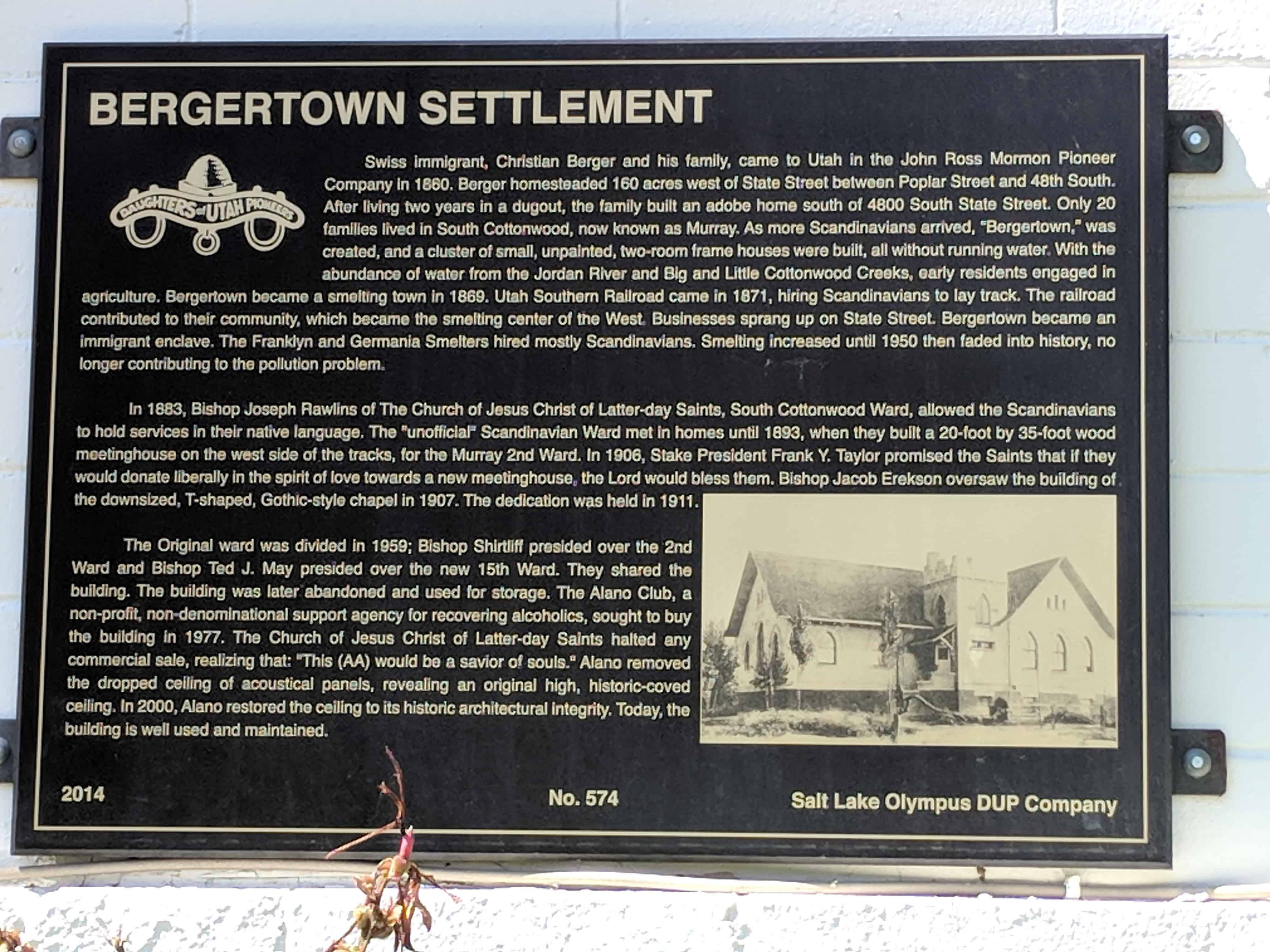 | 574 | Bergertown Settlement | 5056 Commerce Drive | Murray | Salt Lake, Utah | Distant Close up | N 40.66186 W 111.89911 |