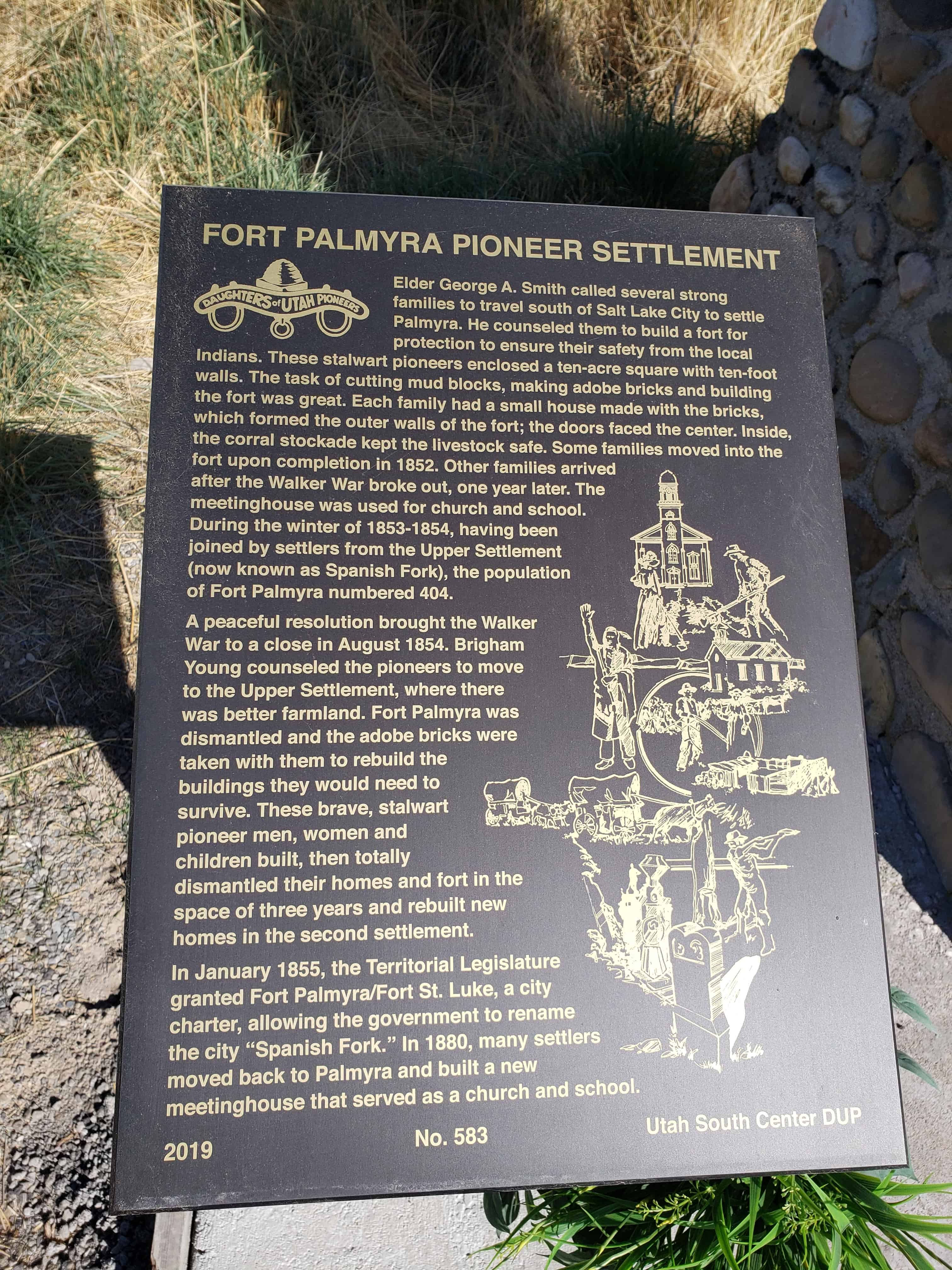 | 583 | Fort Palmyra Pioneer Settlement | 1350 W 6150 S | Palmyra | Utah, Utah | Distant Close up | N 40.11955 W 111.68601 |