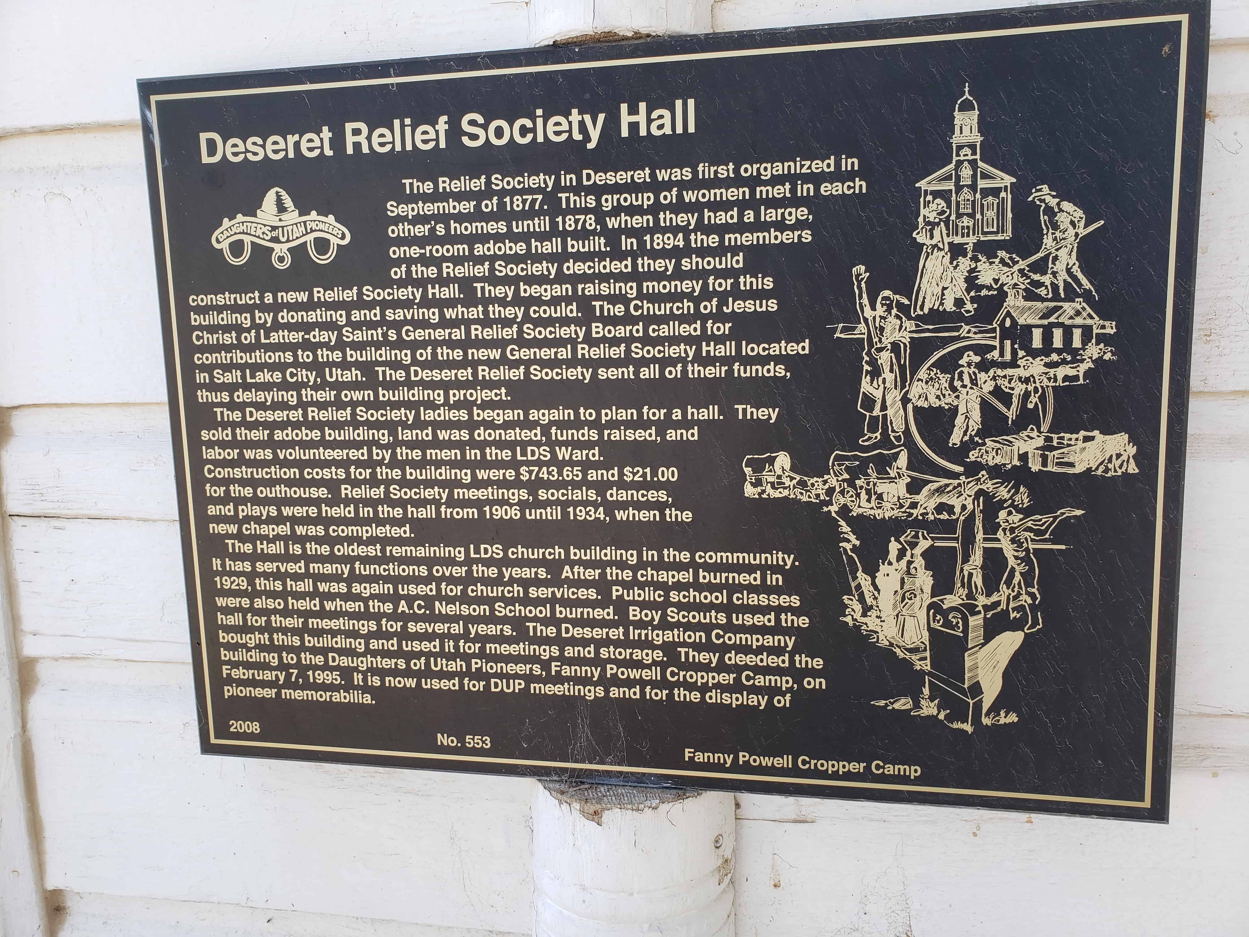 | 553 | Deseret Relief Society Hall | Deseret, Millard, Utah | Distant Close up | N 39.28914 W 112.65252 | ||
