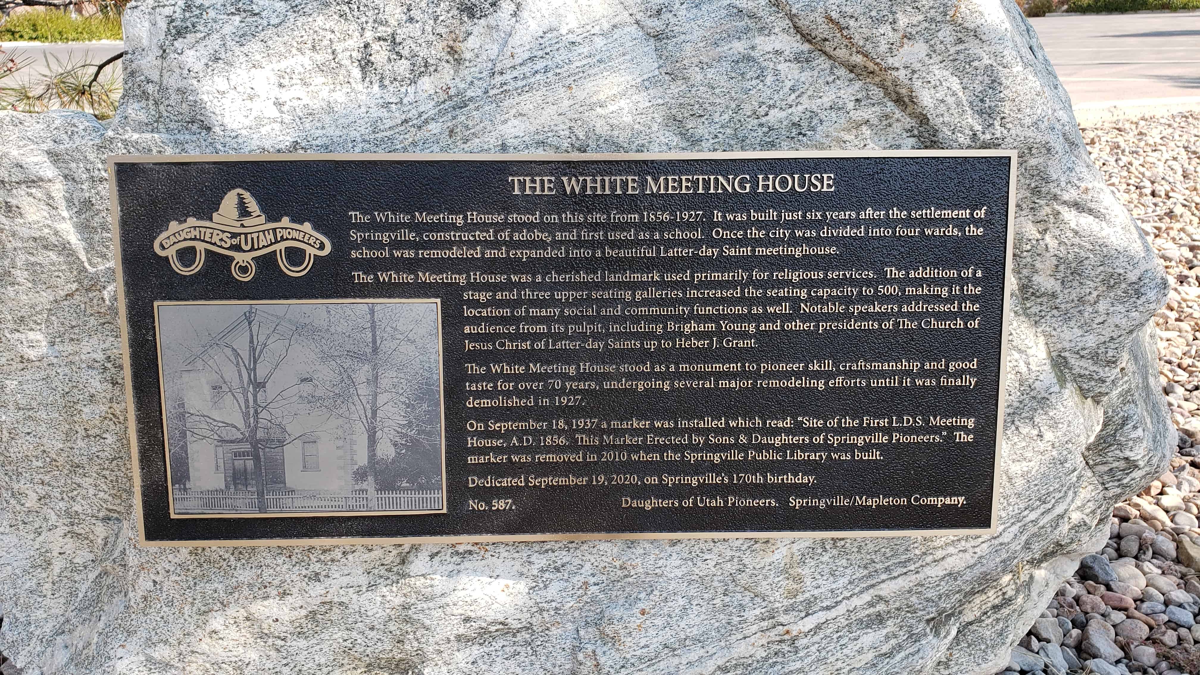 | 587 | The White Meeting House | 85 S Main St | Springville | Utah, Utah | Distant Close up | N 40.16544 W 111.61039 |