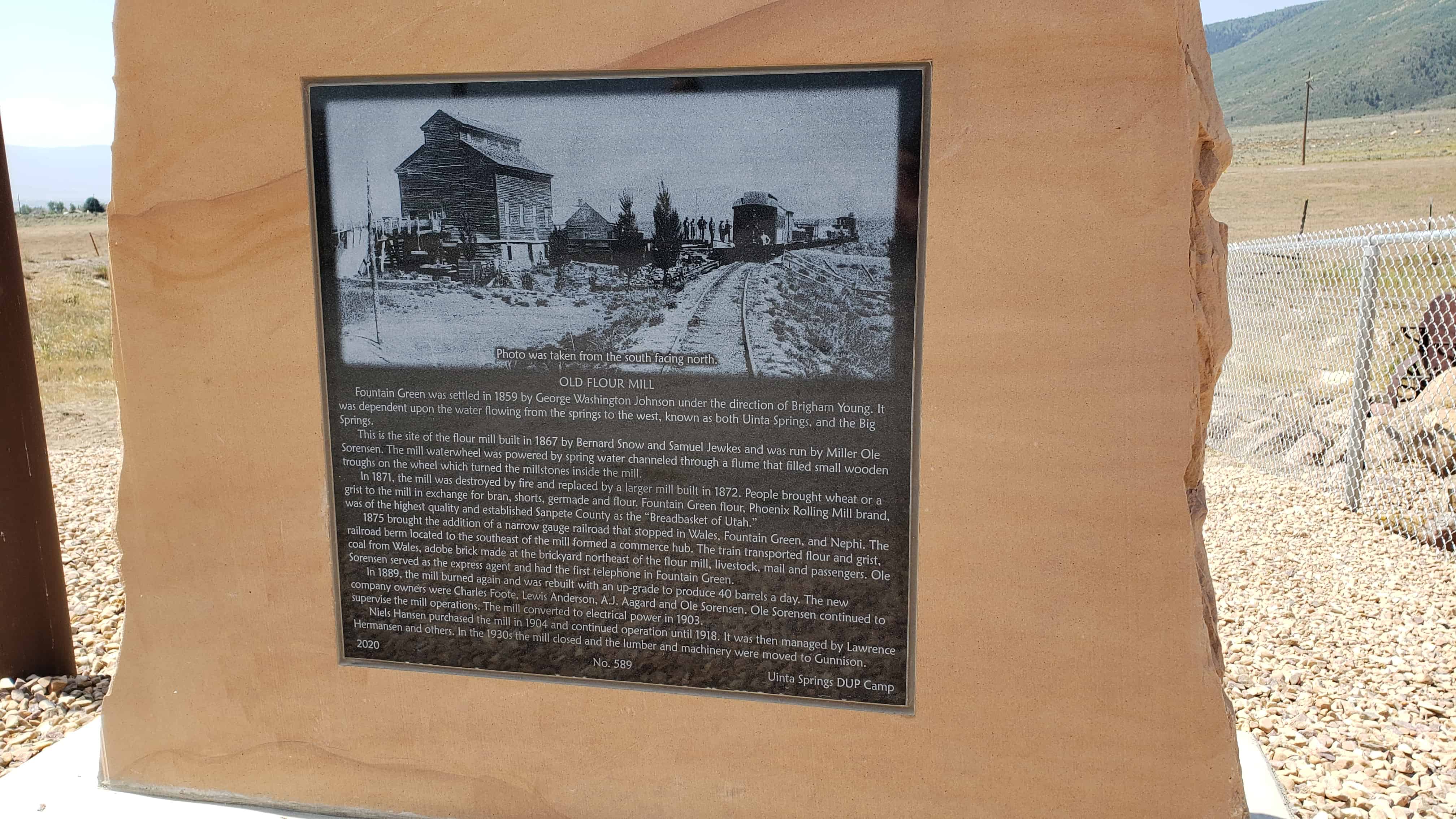 | 589 | Old Flour Mill | Big Spring Road | Fountain Green | Sanpete, Utah | Distant Close up | N 39.64041 W 111.65354 |