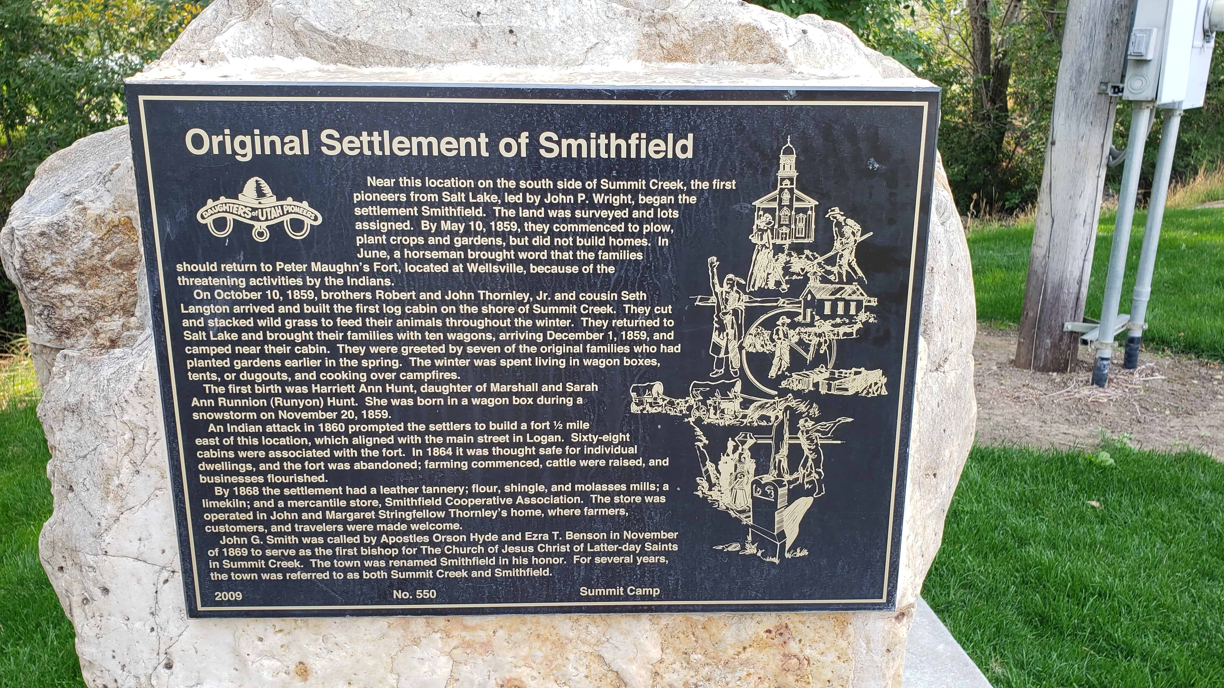 | 550 | Original Settlement of Smithfield | Smithfield, Cache, Utah | Distant Close up | N 41.83636 W 111.84205 | ||