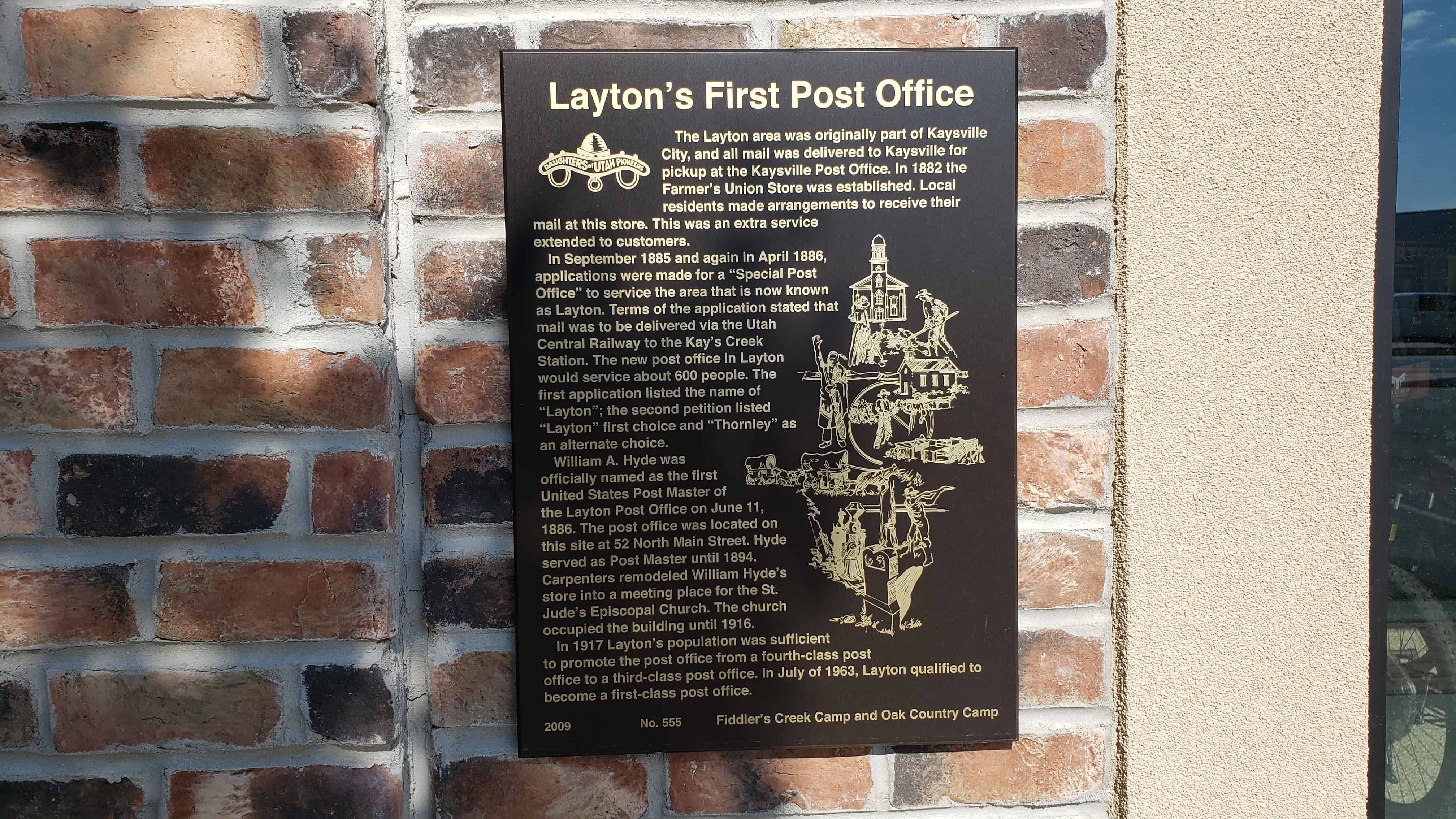| 555 | Layton’s First Post Office | Layton, Davis, Utah | Distant Close up | N 41.06106 W 111.96659 | ||