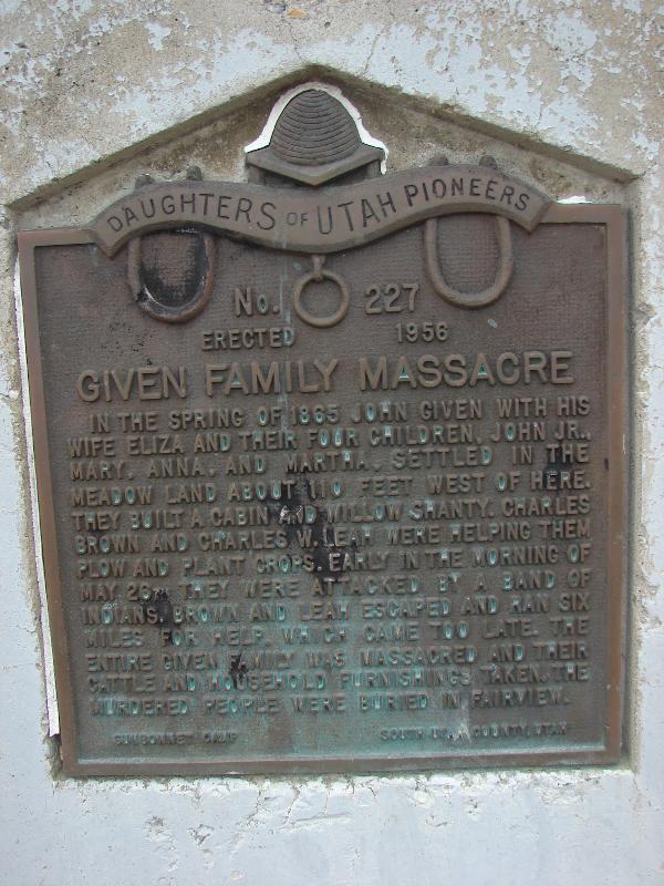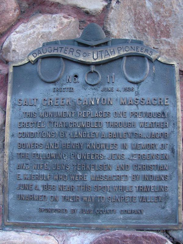 | 11 | Salt Creek Canyon Massacre | Nephi Canyon | Nephi | Juab, Utah | Distant Close up | N 39.70336 W 111.70651 |